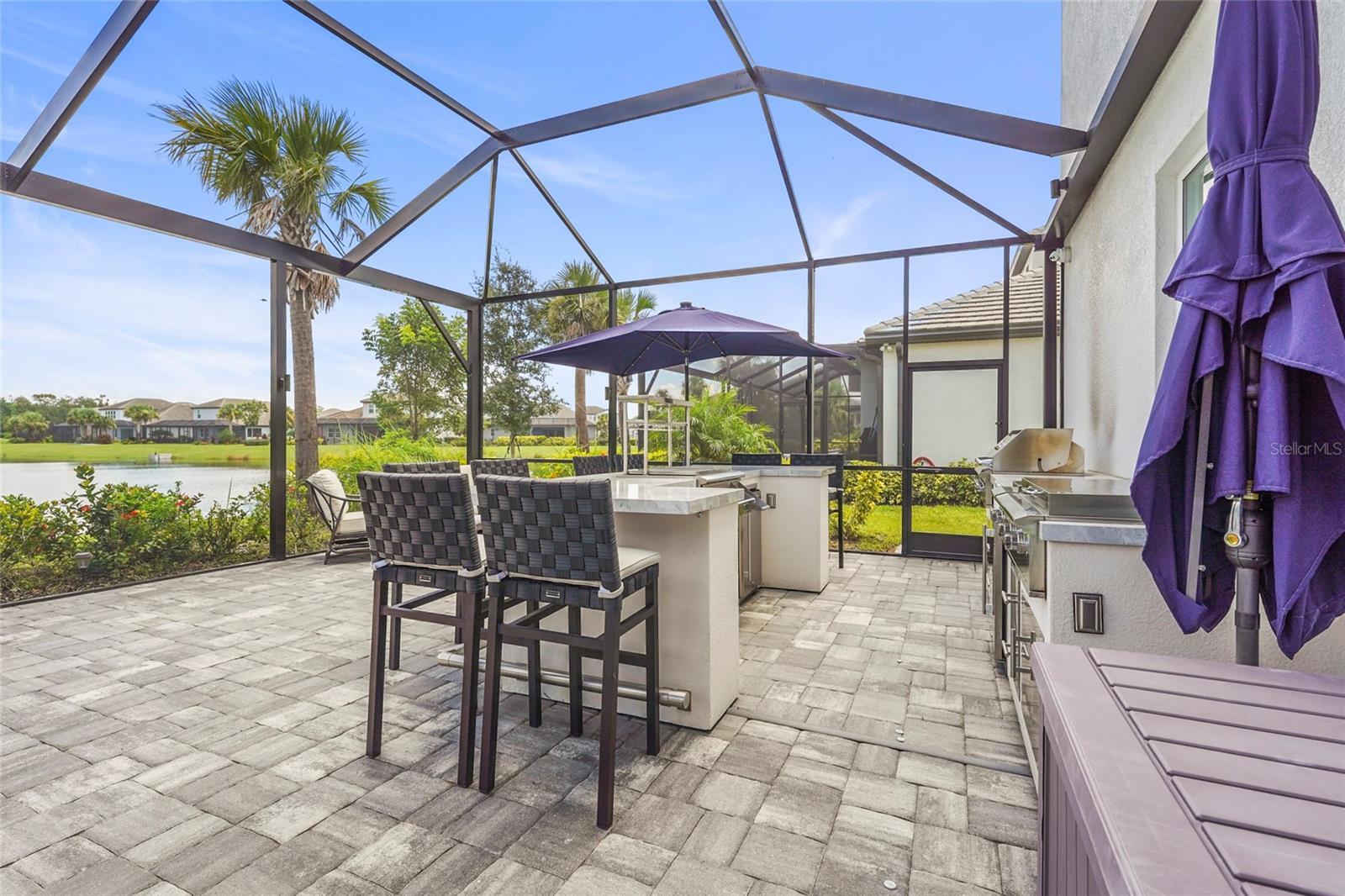 Under contract-accepting backup offers. Luxury Living in Rivo Lakes – Sarasota’s Hidden Gem. Behind the gates of Rivo Lakes, this 2023 custom-built lakefront home offers over 4,000 square feet of well-designed living space with 4 bedrooms, an office, 4 bathrooms, and a 3-car garage, along with more than $150,000 in post-close upgrades. Soaring ceilings, abundant natural light, and upgraded Level 1 flooring guide you throughout the main living area. The kitchen is designed for both everyday use and entertaining, featuring a 12-foot quartz waterfall island, Fulgor Milano 6-burner gas range with upgraded stove and hood vent, GE Café appliances, custom cabinetry, and a walk-in pantry. The open floor plan connects seamlessly to the living and dining areas and is enhanced by integrated speakers and cameras for added convenience and security. The owner’s suite opens directly to the lanai and includes a well-appointed ensuite with dual vanities, a soaking tub, a glass-enclosed shower, and dual custom closets. A main-level guest or next-generation suite offers its own ensuite bath with direct pool access, while the upper level includes an additional bedroom, full bath, and loft space suitable for a media room, gym, or flexible living area. Outdoor living feels like a private oasis, centered around a panoramic screened lanai with peaceful water views and a heated saltwater pool and spa designed for year-round enjoyment. A fully equipped outdoor kitchen features dual grills, upgraded appliances, bar seating for eight, two refrigerators, and a wine fridge, making it ideal for both relaxing evenings and effortless entertaining. Thoughtfully added outdoor lighting enhances the ambiance after sunset, and Sonos multi-zone audio flows seamlessly throughout the indoor and outdoor spaces, completing the retreat-like setting. Major upgrades include a whole-home Generac generator, impact windows and doors, smart lighting, app-controlled pool and spa, upgraded office doors, custom back slider molding and trim, and a brand new 2026 air conditioning system with all new ductwork. With no CDD fees low quarterly HOA fees, this home offers a strong combination of quality, efficiency, and long-term value for years to come. Ideally located about 8 miles from Siesta Key Beach and minutes from University Town Center, St. Armands Circle, Myakka River State Park, and Twin Lakes Park, this property is conveniently positioned near beaches, shopping, dining, and outdoor recreation. With an asking price below total invested value, this is a move-in-ready opportunity in a gated waterfront community, you don’t want to miss. Schedule your showing today!