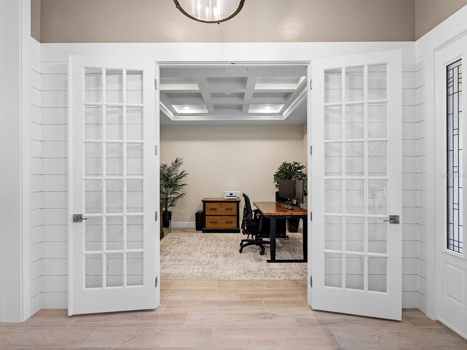 Set on a tranquil lakefront homesite in Shoreview at Lakewood Ranch Waterside, this newly built 2024 Pulte residence offers refined indoor–outdoor living with thoughtful upgrades throughout. The open-concept design features three bedrooms, three full bathrooms, high ceilings, custom lighting, feature walls, and elevated finishes. Wood-look tile flooring flows through the main living areas, while PGT top-level impact glass enhances peace of mind. Thoughtful upgrades include custom Hunter Douglas electronic blinds and a newly installed whole-house generator, providing seamless backup power and peace of mind. The great room showcases a coffered ceiling, statement linear fireplace, and zero-corner pocketing sliders that open seamlessly to the lanai. The gourmet kitchen centers the home with an oversized island, built-in beverage station with wine rack and under-counter refrigerator, KitchenAid stainless appliances, five-burner gas cooktop, walk-in pantry, and elegant pendant lighting. The dining area enjoys lake and pool views with clerestory windows for abundant natural light. The private primary suite features a tray ceiling, custom accent wall, spacious walk-in closet, and a spa-inspired bath with soaking tub, frameless glass shower, double quartz vanities, and designer finishes. Two additional bathrooms include a second full tub in the third bath, offering flexibility for families or guests. Two guest suites and a dedicated office with glass French doors provide versatile living spaces. A well-appointed laundry room offers generous cabinetry and quartz countertops. Outdoor living is elevated on the fully screened lanai with travertine pavers, outdoor kitchen, recessed lighting, and panoramic lake views. The heated saltwater pool with water feature creates a true resort-style setting. Completing the home is a climate-controlled three-car garage with epoxy floors, built-in storage, and utility sink. Shoreview at Lakewood Ranch Waterside offers an exceptional amenity lifestyle, including a beautifully designed clubhouse, resort-style pool and spa, lakefront deck, fitness center, tennis and pickleball courts, walking trails, fishing pier, beach area, and outdoor social spaces with grills and bar seating. Just a short five-minute walk to Waterside Place, enjoy award-winning year-round farmers markets, waterfront dining, boutique shopping, live music, and community events. With convenient access to UTC, I-75, and Gulf beaches, this lakefront home delivers comfort, style, and the very best of the Waterside lifestyle.