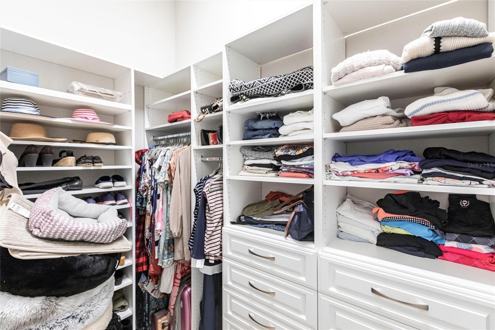 - Ceiling Fans(s), Coffered Ceiling(s), Eat-in Kitchen, High Ceilings, L Dining, Open Floorplan, Primary Bedroom Main Floor, Split Bedroom, Thermostat, Walk-In Closet(s)