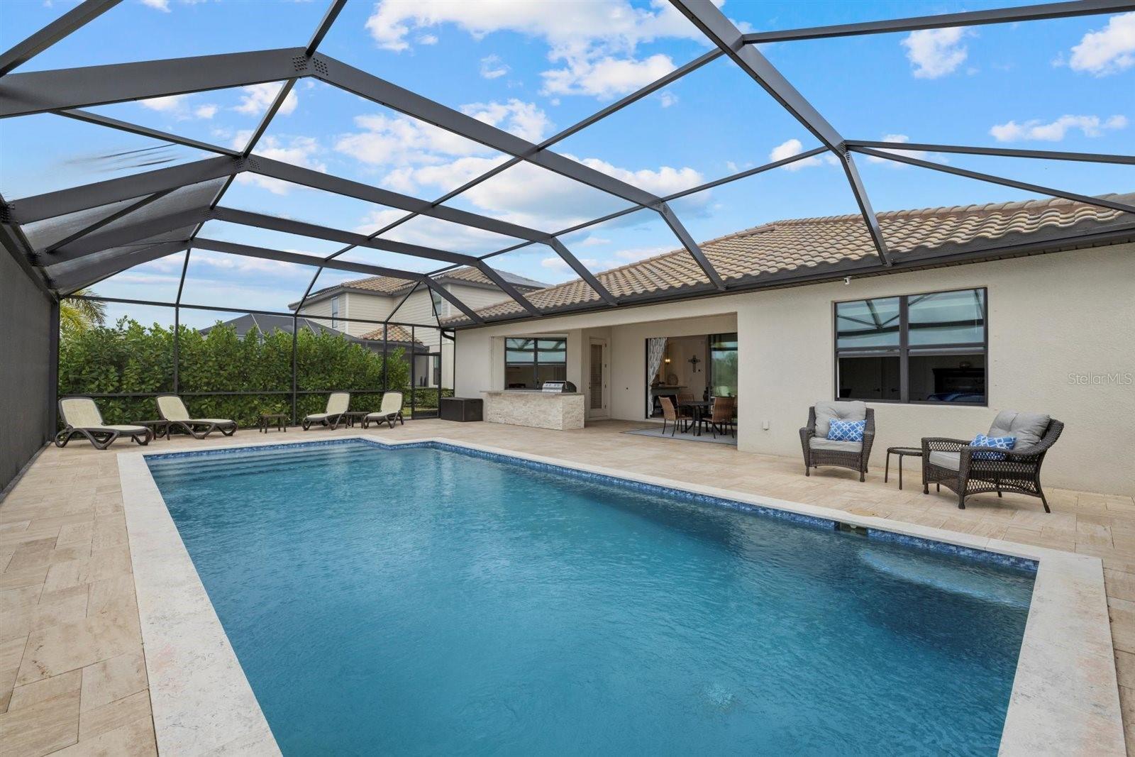 4-bedroom, 2-bath 3 car garage pool home in Polo Run, Lakewood Ranch’s only solar-powered gated community, offering 2,268 sq. ft., no front neighbors, and exceptional privacy. Enjoy a private outdoor oasis featuring a custom saltwater pool, expansive travertine lanai, and fully equipped outdoor kitchen, all overlooking one of the largest ponds in Lakewood Ranch. The sunsets from this home are truly stunning, with wide open pond views that are hard to match. Inside, the open-concept layout includes a gourmet gas kitchen with granite countertops and a large center island, flowing into spacious living and dining areas. The primary suite offers a walk-in closet and an en-suite bath. Polo Run amenities include a resort-style heated pool, fitness center, tennis, pickleball, basketball, playground, clubhouse, and dog park. Conveniently located near Waterside Place, UTC, golf courses, and area beaches. Schedule your private showing today.