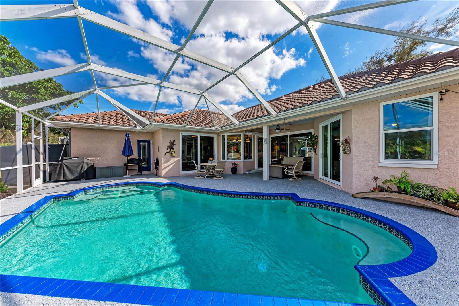 Welcome to an exceptional four bedroom, three bath plus an office POOL home. Located in an "A rated" school district this home offers an ideal layout for entertaining and family living. Two guestrooms share a well appointed bathroom with a pocket door for added privacy. The primary suite features direct access to the pool and a spa-like, en-suite bath with dual sinks, a walk in shower and a garden tub. The updated kitchen features a large breakfast bar, granite counter tops, solid wood cabinetry and a dining nook overlooking the sparkling pool. This home also features a newer tile roof from 2016, impact windows, doors and sliders! Additional features include a private office with French doors, a two car garage with a work bench, a laundry room with a sink and a window and a large screened lanai enclosing your heated pool. McIntosh Lake is a well maintained community with low HOA dues and friendly neighbors. Make an appointment today!