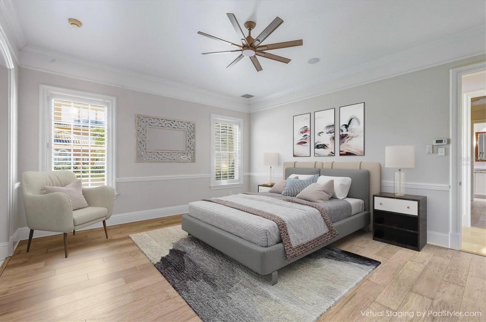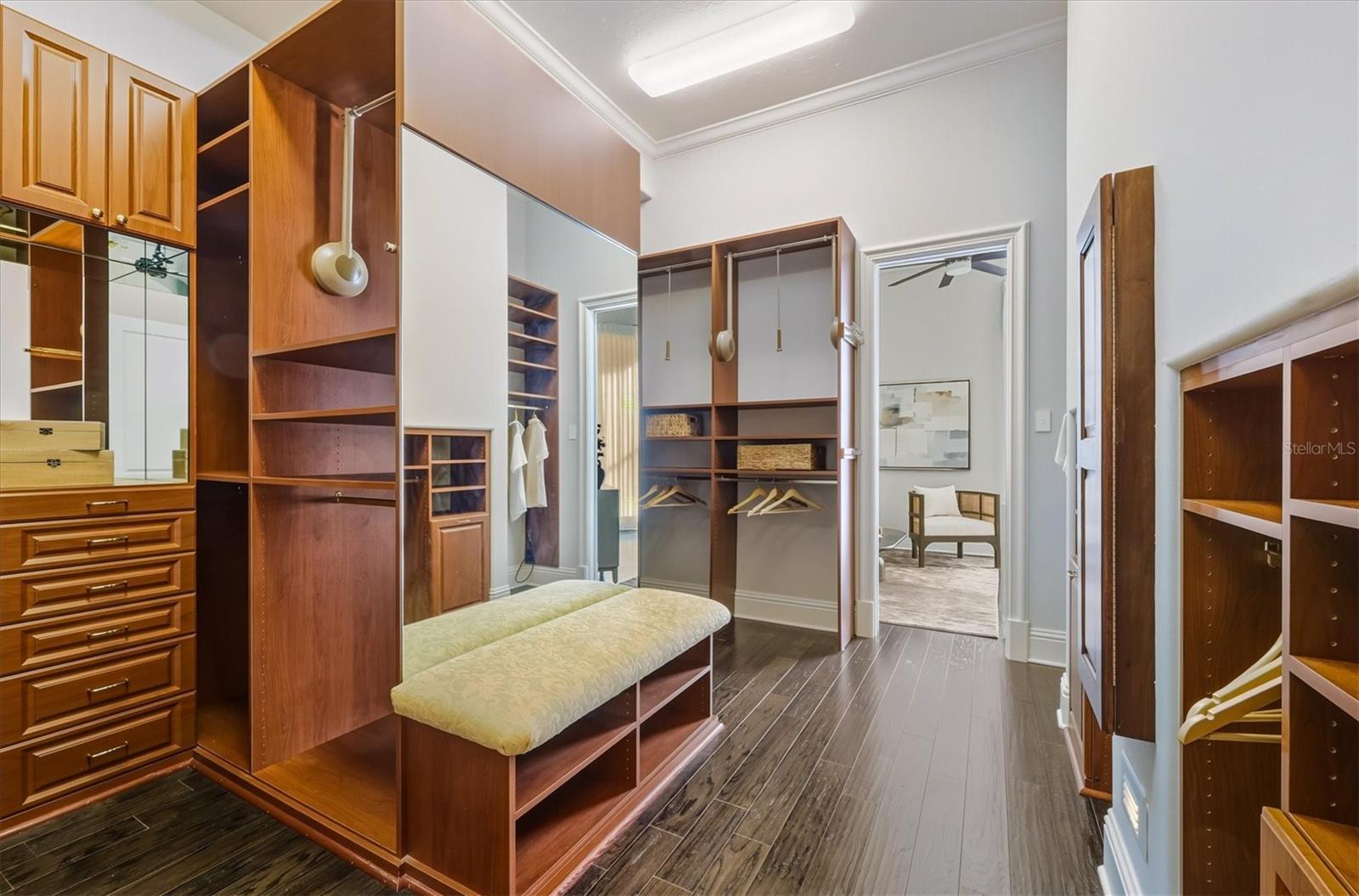 - Built-in Features, Ceiling Fans(s), Crown Molding, Eat-in Kitchen, Elevator, High Ceilings, Primary Bedroom Main Floor, Walk-In Closet(s), Wet Bar, Window Treatments
