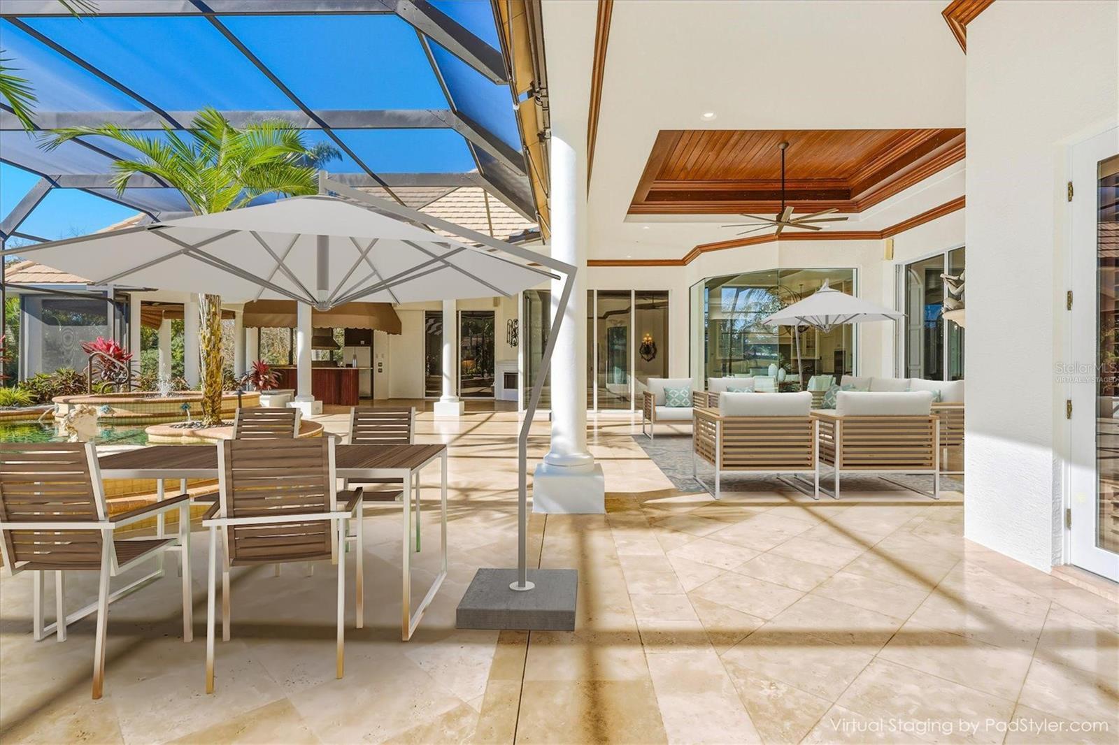 One or more photo(s) has been virtually staged. Discover an exceptional opportunity to own one of the most distinguished estates in the gated, exquisite community of Lakewood Ranch Country Club. Perfectly positioned on an expansive .94-acre double lot, this rare residence offers unmatched privacy, generous outdoor living with fenced in backyard, and a sense of scale that is impossible to replicate within the community. Elegance unfolds from the moment you arrive. A stately residence, framed by mature landscaping and sweeping lawn, creates a grand entrance worthy of the home’s impressive setting. Inside, refined architectural details, soaring ceilings, and sun-filled living spaces blend seamlessly to create an atmosphere of timeless sophistication and effortless livability. Designed for both intimate relaxation and stylish entertaining, the home’s open layout flows beautifully from formal living and dining areas to the spacious family room and gourmet kitchen. Large picture windows and multiple sets of glass doors draw in natural light while offering tranquil views of the estate-sized grounds, ensuring every room feels connected to the outdoors. The primary suite is a serene escape, generously proportioned and thoughtfully designed with a spa-inspired bathroom, separate sitting area for exercise or relaxation, expansive closet with custom built-ins, and private access to the lanai. Four additional ensuite guest rooms provide comfort and privacy for visitors, while a dedicated office or den offers the perfect space for work or quiet retreat. Outdoors, the true uniqueness of this property comes to life. The nearly one-acre homesite offers an extraordinary sense of openness rarely found in Lakewood Ranch Country Club. The expansive lanai and screened pool area overlook lush, beautifully manicured grounds—ideal for hosting gatherings, creating a private garden oasis, or simply enjoying the tranquility of your own oversized retreat. In one of the most desirable gated golf communities, residents of Lakewood Ranch Country Club have the opportunity to enjoy 72 holes of challenging golf, tennis, pickleball, swimming, a state-of-the-art fitness center, and three elegant clubhouse options with dining and social events. The location offers unbeatable convenience, just minutes from University Town Center, world-class shopping and dining, I-75, and the Gulf Coast’s celebrated beaches.With its rare double lot, impressive footprint, and timeless architectural appeal, 7028 Portmarnock Place presents a singular opportunity to own a private estate that stands apart from the rest. This is more than a home—it is a legacy property, offering space, elegance, and the freedom to live exceptionally in the heart of Lakewood Ranch, the most desirable master planned community in the country.