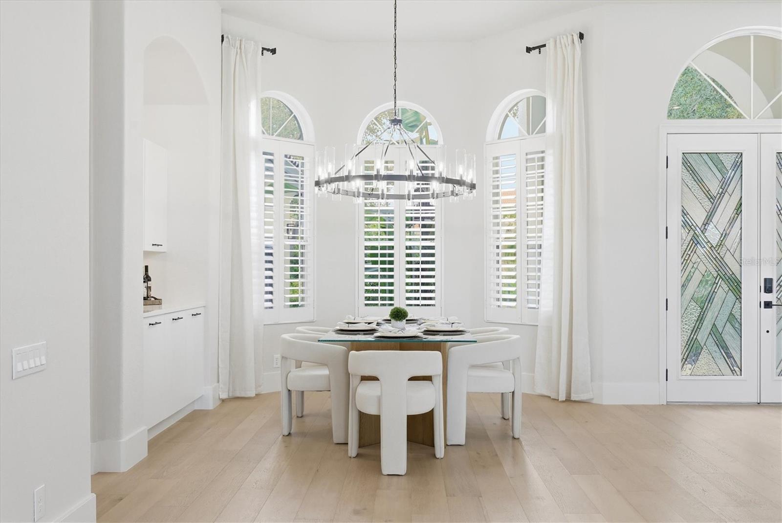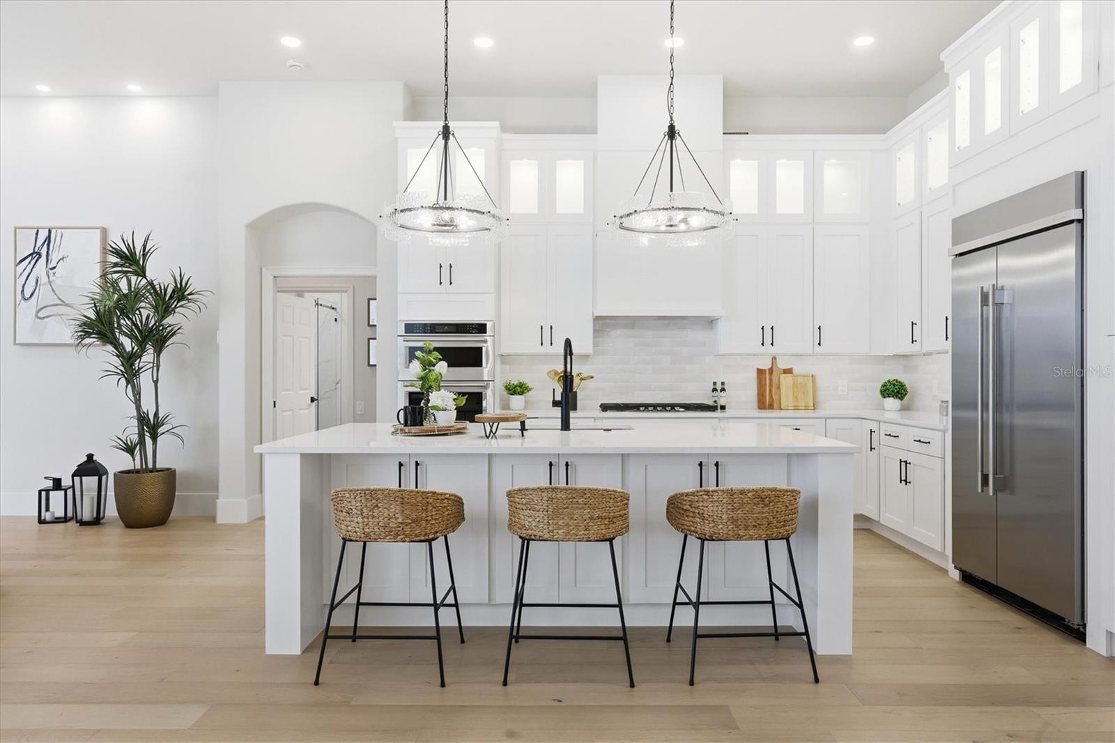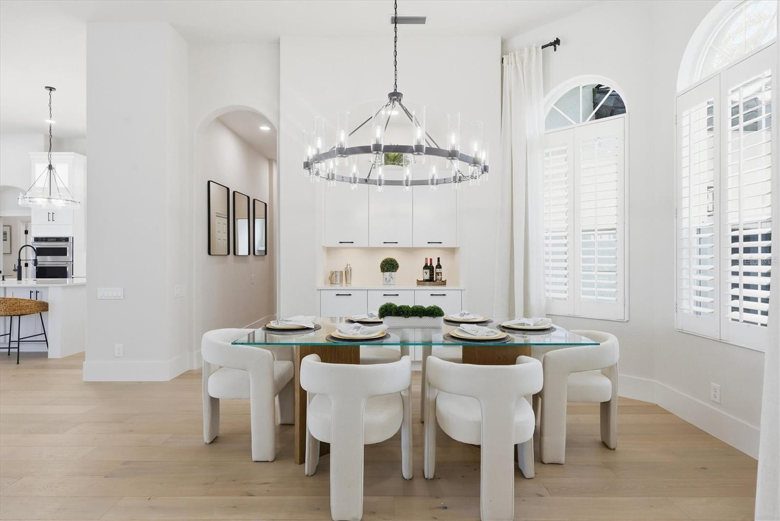 Welcome to an extraordinary, fully remodeled residence in the sought after, gated community of University Park Country Club—an enclave celebrated for its lush landscapes, championship golf, and timeless architectural elegance. This impeccably redesigned home blends glamorous style with modern comfort, offering a level of quality and craftsmanship rarely found in today’s market. From the moment you arrive, the property makes a striking impression with its brand-new roof, fresh exterior finishes, and manicured surroundings that set the tone for the refined living experience that awaits inside. Step through the front door and immediately feel the quiet luxury that defines this home. The interiors have been completely transformed with wide-plank European oak engineered wood flooring that runs throughout, creating a seamless sense of flow and warmth. High ceilings, generous natural light, and an open layout elevate every space, while new impact windows and sliders not only enhance energy efficiency and storm protection but also frame serene views of the surrounding greenery.The heart of the home is an exquisitely redesigned chef’s kitchen, thoughtfully planned for both style and functionality. Custom cabinetry, premium hardware, and sleek quartz countertops pair beautifully with professional-grade appliances, offering an inspiring setting for everyday meals and elevated entertaining. A spacious island anchors the room, providing the perfect gathering place for friends and family. Nearby, the adjoining living and dining areas create an effortless indoor-outdoor connection, enhanced by retractable sliders that open to the expansive lanai.The primary suite is a sanctuary unto itself, reimagined with tranquil design elements and private access to the outdoor living space. The spa-inspired primary bath features a walk-in shower, freestanding soaking tub, dual vanities, and curated tilework that infuses a sense of resort-level luxury. Generously sized guest suites ensure comfort and privacy for visitors, while the redesigned guest bathrooms mirror the same elevated finishes found throughout the home.Outdoor living is a hallmark of life in University Park, and this property embraces it beautifully. The covered lanai provides an inviting spot for lounging, dining, or enjoying the peaceful views that define the community. With ample room for outdoor enhancements, this space becomes an extension of the home’s interior elegance—perfect for Florida’s year-round lifestyle.Every detail has been intentionally selected to deliver convenience, long-term peace of mind, and timeless appeal.Situated minutes from world-class golf, tennis, and fitness amenities, as well as fine dining, shopping, and the cultural offerings of downtown Sarasota, this remodeled masterpiece blends luxury living with unbeatable convenience. Move-in ready and finished to the highest standards, this home offers an exceptional opportunity to own a refined, contemporary retreat in one of the region’s most desirabe communities.