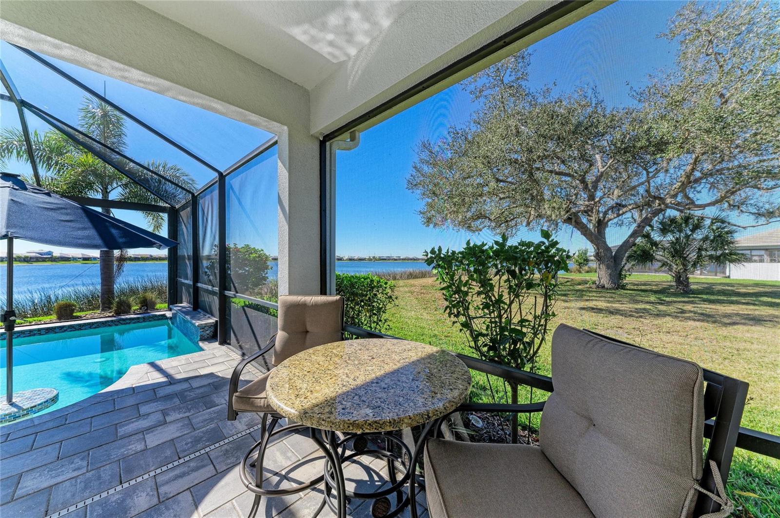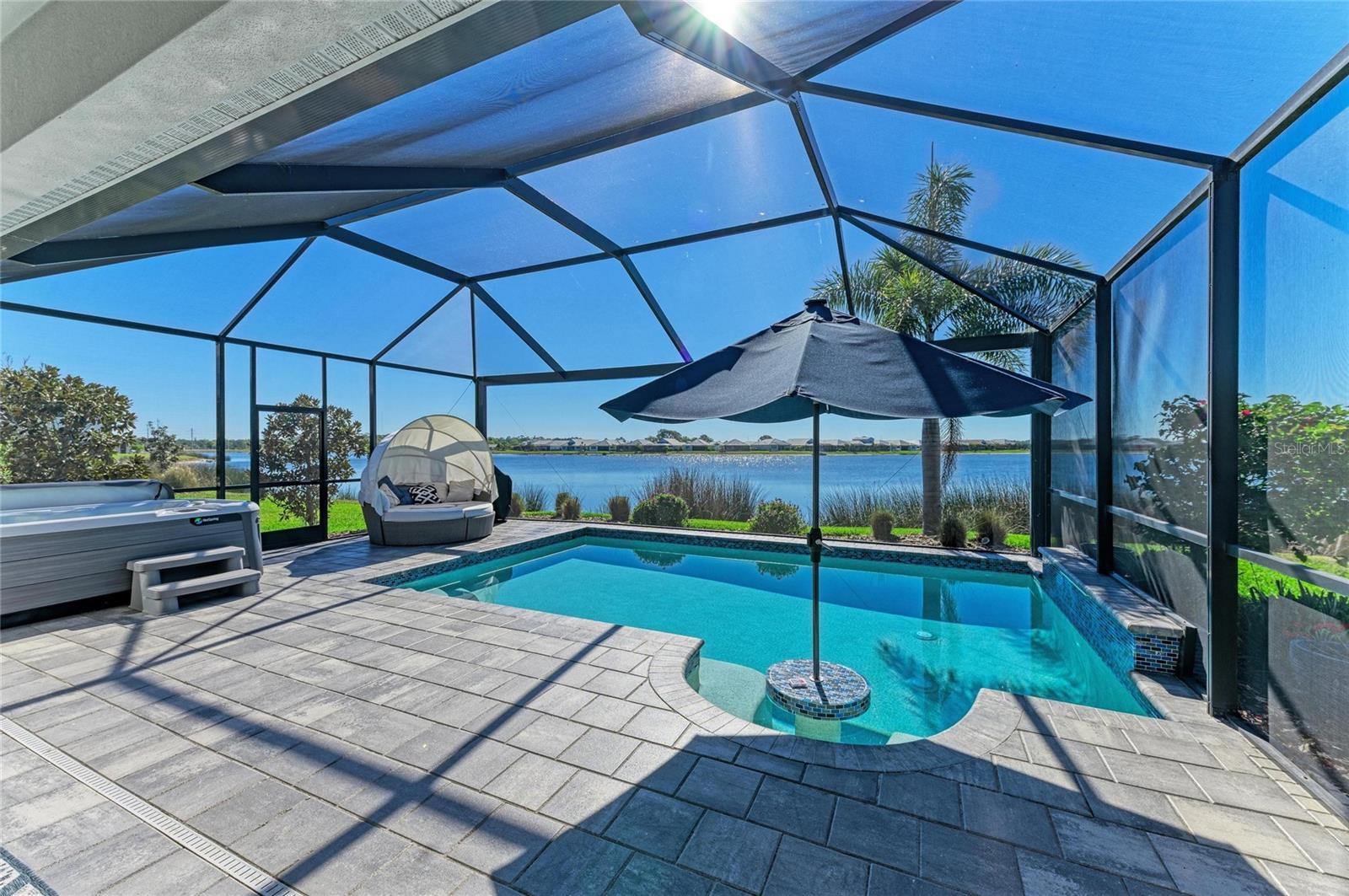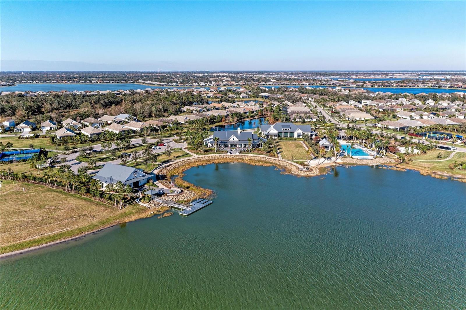 Set along the tranquil shores of Lake Ibis, this exceptional lakefront residence showcases spectacular, long, uninterrupted water views and breathtaking sunset vistas that define true Florida living. Built in 2022 by Homes by Towne, the Skiff floor plan offers thoughtful design, quality construction, and an enviable waterfront setting. Spanning 2,158 square feet, the home features three bedrooms, two full baths, a dedicated office/den, and an open-concept layout designed to maximize natural light while framing the stunning lake views from multiple living areas. The kitchen is both stylish and functional, featuring quartz countertops, custom cabinetry with soft-close drawers and pull-out shelving, under-cabinet lighting, stylish backsplash, and a layout ideal for everyday living or elaborate entertaining. The great room opens seamlessly to an extended lanai with a full-view screen enclosure, preserving clear sightlines across the water and front-row views of vibrant sunsets. The outdoor living area is a true highlight, offering a pool, separate standalone spa, generous covered seating area, an ideal setting for morning coffee overlooking the lake or evening gatherings as the sun sets aglow with color over the water. The owner’s suite is positioned to capture serene water views and glowing sunsets, creating a peaceful retreat complemented by a spa-inspired bath with dual quartz vanities, and upgraded finishes. Two additional bedrooms and full bath on the other side of the home provide private flexibility for guests or family, while a light-filled office offers a quiet space for work or hobbies. Additional features include a large laundry room and a two-car garage with epoxy flooring and storage. Residents of LakeHouse Cove enjoy resort-style amenities, including a pool and spa, state of the art fitness center, clubhouse with catering kitchen, boathouse with kayak launches, pickleball courts, fire pits, dog parks, and a full calendar of social activities. Be as social as you want within this community. Conveniently located just minutes from Waterside Place, Lakewood Ranch Main Street, University Town Center, and downtown Sarasota, this exceptional residence offers effortless access to world-renowned beaches, celebrated cultural attractions, and Sarasota-Bradenton International Airport. A short journey opens the door to Florida’s iconic theme parks, adding yet another dimension to the lifestyle. This is a rare opportunity to enjoy spectacular lake views, unforgettable sunset vistas, and the peace of mind that comes with newer construction, all within one of Lakewood Ranch’s most sought-after communities.