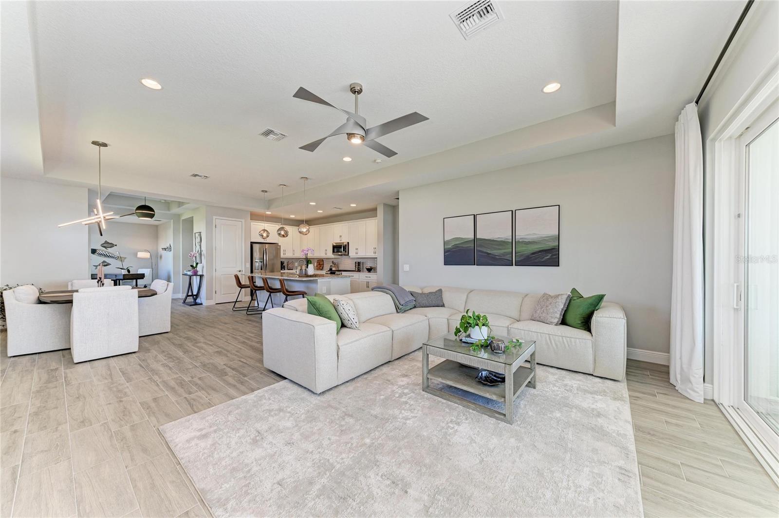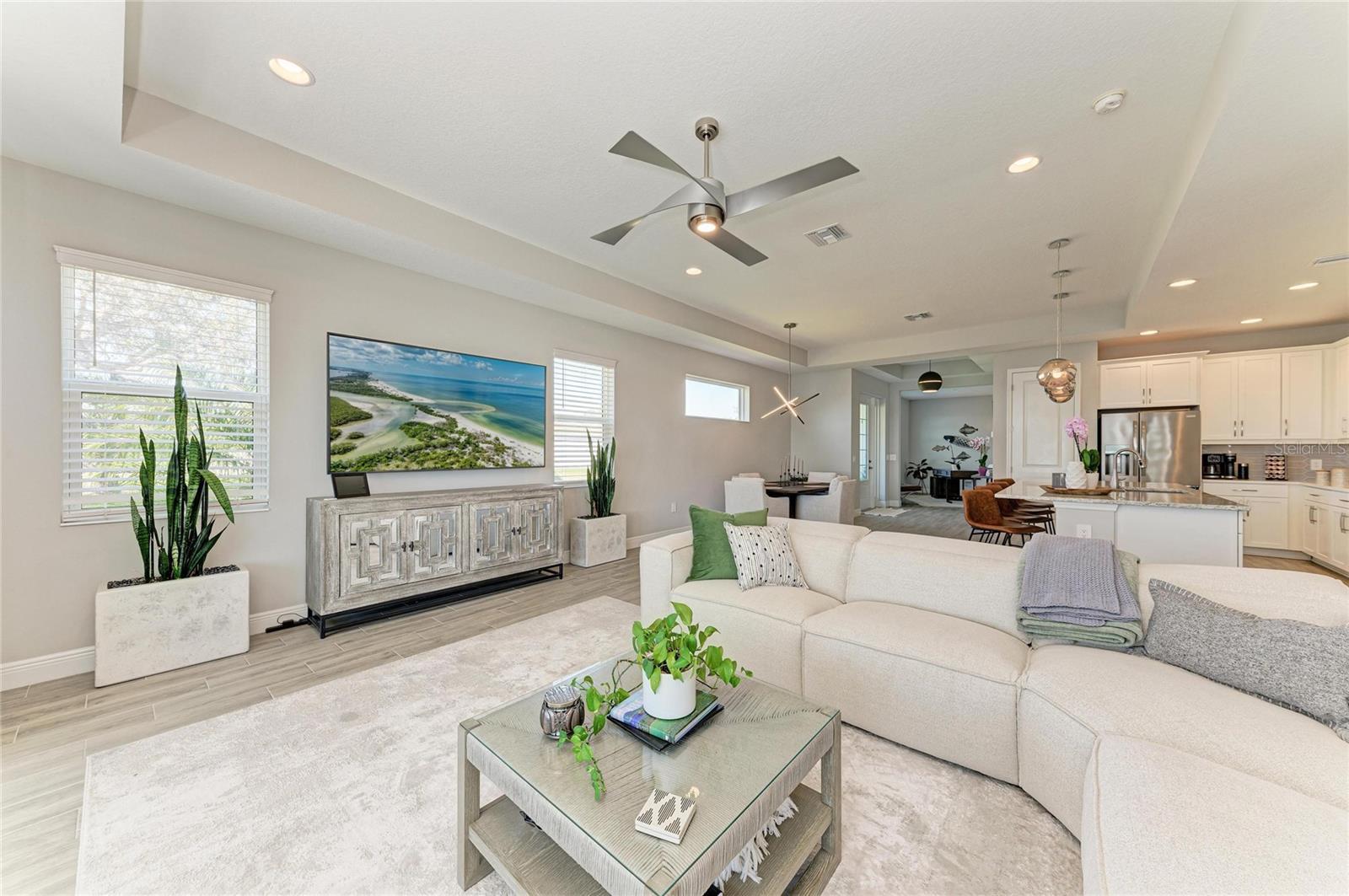- Ceiling Fans(s), In Wall Pest System, Kitchen/Family Room Combo, Open Floorplan, Tray Ceiling(s), Walk-In Closet(s), Window Treatments