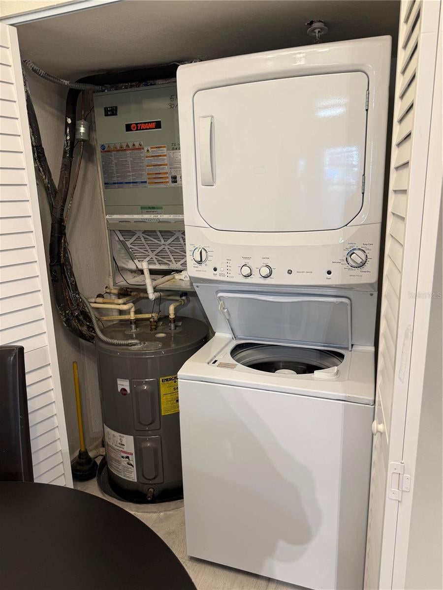 - Dishwasher, Disposal, Dryer, Electric Water Heater, Ice Maker, Microwave, Range, Refrigerator, Washer