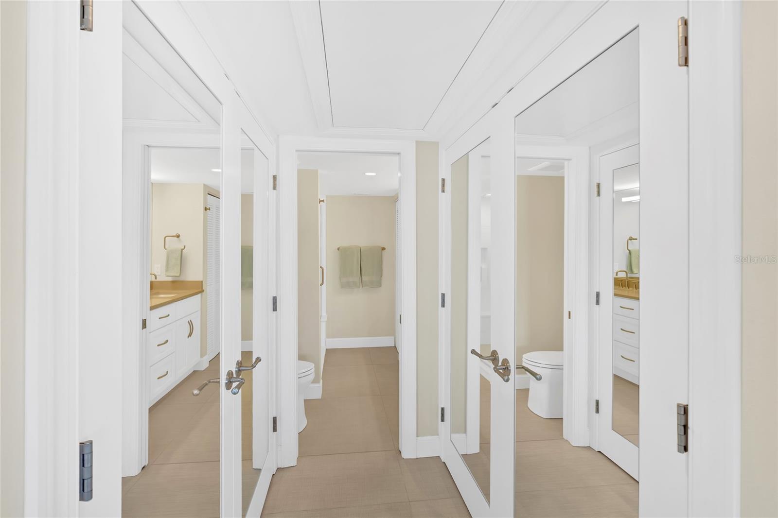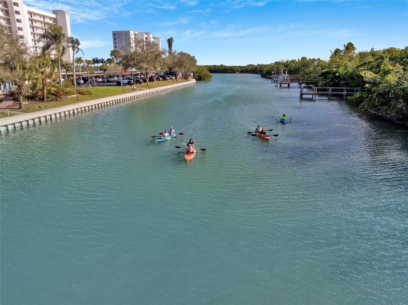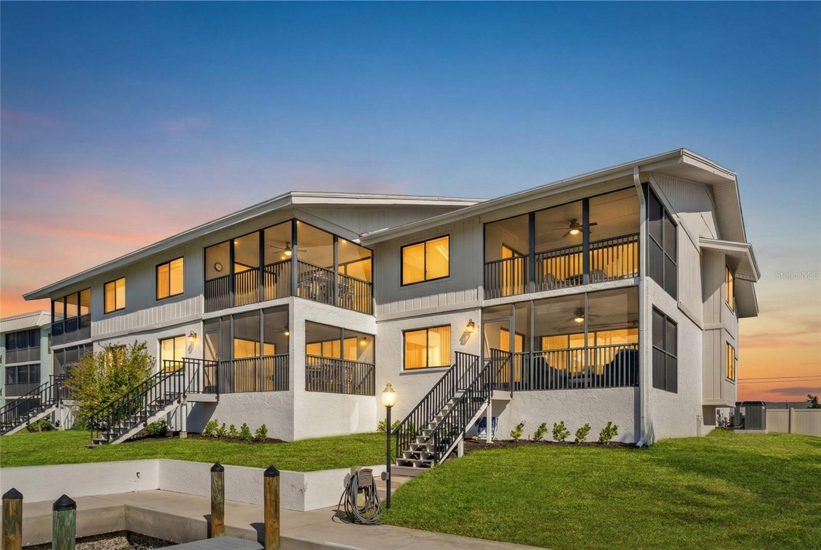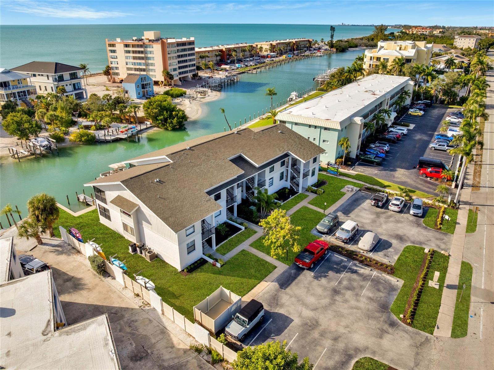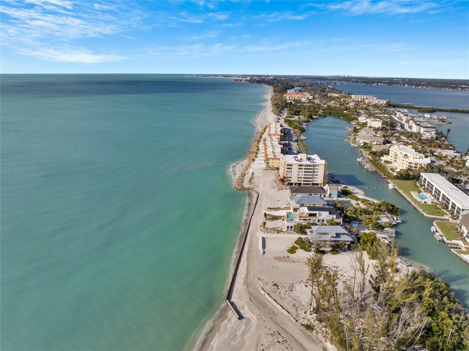 It’s time to SIMPLIFY! Sun. Sand. Surf. Welcome to this completely renovated residence at Castaway Cove, a boutique waterfront condominium community tucked away on the quiet south end of Siesta Key, just a short walk to Turtle Beach. This second-floor unit offers a rare coastal vantage point with sweeping views of Blind Pass Lagoon, the Intracoastal Waterway, and the Gulf of Mexico, delivering a rarely found three-water perspective. Morning light reflects across the lagoon, afternoons might feature manatees or dolphins, and evenings are reserved for unforgettable sunsets over the Gulf. Dock space is available for boating enthusiasts, and the calm lagoon waters provide ideal conditions for kayaking and paddleboarding from Castaway’s private launch toward the newly-opened Midnight Pass. The residence has been remodeled wall to wall and floor to ceiling since 2020, with thoughtful attention to both design and infrastructure. The open floor plan blends the kitchen, dining, and living areas seamlessly, allowing water views to take center stage from nearly every angle. Porcelain tile flooring runs throughout the entire unit, creating a clean, cohesive look that complements the seaside setting. The kitchen features shaker-style Providence White cabinetry with glass-front display cabinets and interior lighting, a pantry with pull-out shelving, Pompeii Quartz countertops, a Glazzio tile backsplash, and updated appliances including refrigerator, range, dishwasher, built-in microwave, washer, dryer, and HVAC system. The primary suite, perched above Blind Pass, is a serene retreat with crown molding, solid core doors, and custom closet systems with mirrored panels. The ensuite bath offers dual vanities topped with Pompeii Quartz, a walk-in shower with glass enclosure, tiled bench, multiple body jets, subway tile walls, and subtle motion-sensor lighting. The guest suite, with views of the ICW, features a barn door entry and a bath with cast-iron tub and quartz-topped vanity. A screened lanai extends the living space outdoors with porcelain tile flooring, a tongue-and-groove ceiling, new screens and railings, and tranquil water views that invite morning coffee or evening relaxation. Additional features include recessed lighting throughout, ceiling fans, a woven dining area chandelier, sheer and room-darkening solar shades, Schlage door lock, Ring doorbell, and Nest thermostat. Castaway Cove is a low-density community of just eight residences offering ample parking, professional management, and exceptionally low association fees. Recent community improvements include a new seawall, refreshed landscaping, updated exterior lighting and irrigation system, and a freshly painted building. The two-story structure is NOT subject to a Milestone Inspection. Furnishings may be available for a truly turnkey opportunity.