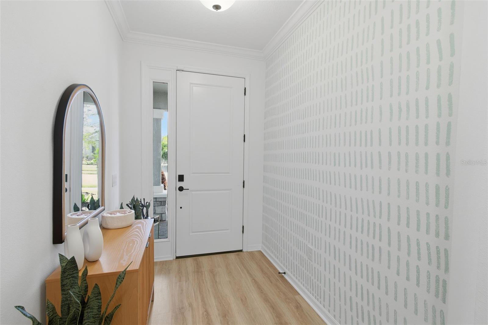 Luxury, space, and privacy converge in this exceptional lakefront residence, thoughtfully designed to balance refined elegance with everyday livability. Offering over 3,100 square feet and the largest floor plan currently available, this flexible two-story home is complemented by resort-style outdoor living and tranquil water views. Situated on a premium private lake-view lot within a gated enclave of Wellen Park, the residence features four bedrooms, four full baths, and a three-car garage, with a layout ideal for both elevated entertaining and comfortable daily living. The main level includes three bedrooms, three full baths, and a dedicated office, all centered around an open-concept living, dining, and kitchen space filled with natural light. At the heart of the home, the chef’s kitchen is appointed with Cambria quartz countertops, a generous center island, a walk-in pantry, and a GE Café smart appliance suite, including a built-in Keurig coffee system. Seamless flow into the living and dining areas creates an inviting setting for gatherings of any scale. The upper level offers a huge bonus room and a private bedroom with a full bath, providing exceptional versatility for guests, multigenerational living, or a game room with a guest suite. The primary suite is a serene retreat, featuring peaceful lake views, a private morning kitchen, an expansive walk-in closet, and a spa-inspired bath highlighted by a dramatic walk-in shower. Outdoor living is equally compelling, with a spacious screened lanai designed for true Florida enjoyment. The setting includes a saltwater pool with sun shelf and spa, ample covered entertaining space, and uninterrupted lake views—creating a private, resort-like atmosphere. Additional features include hurricane-impact windows and doors rated up to Cat 4, advanced smart home technology, and a fully owned solar panel system providing meaningful long-term energy efficiency. Residents enjoy access to a private clubhouse, resort-style pool, and pickleball courts, all just a short golf cart ride to the dining, shopping, and lifestyle offerings of Wellen Park, one of the nation’s most dynamic master-planned communities. Private showings available by appointment only.