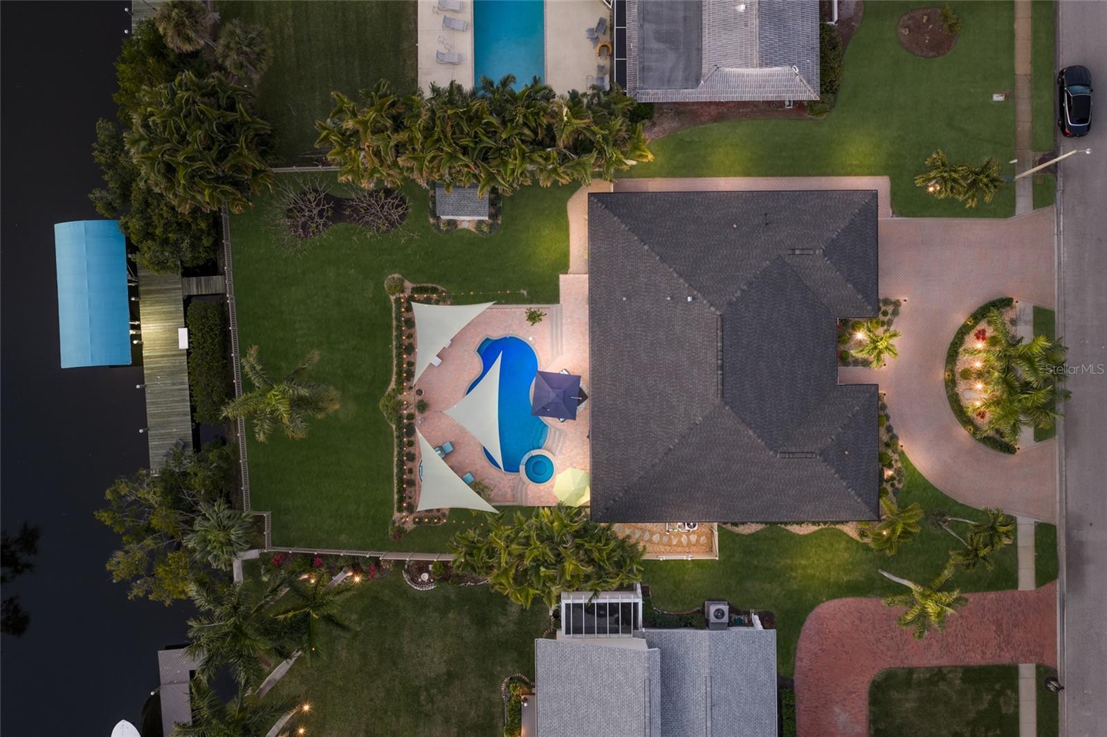 ABSOLUTELY STUNNING 4 BEDROOM WATERFRONT POOL HOME ON BELAIR BAYOU! Completely redone by Cahill Homes in 2024, this NW Bradenton residence has been renovated to exceptional standards and offers a level of quality rarely found at this price point. NOTHING LEFT TO DO BUT MOVE IN!!! NEW ROOF, IMPACT WINDOWS AND DOORS, NEW A/C & DUCTWORK, NEW PROFESSIONAL LANDSCAPING, NEW KICHEN, NEW BATHROOMS, NEW FLOORING, NEW TANKLESS WATER HEATER, RENOVATED POOL AND EQUIPMENT, NEW FENCING, NEW IRRIGATION, NEW STORAGE SHED, NEW BOAT LIFT MOTOR & CANOPY, AND THE LIST GOES ON AND ON!!! The home makes an immediate impression with its expansive circular paved driveway, framed by tropical landscaping and mature palms. A coastal inspired exterior, modern lighting, double door entry, and two car garage create impressive curb appeal. Positioned on an elevated bluff and not located in a flood zone, this property provides added protection and peace of mind. Inside, the open floor plan features vaulted ceilings, designer fans, recessed lighting, and nearly 3,000 square feet of living space, offering 4 bedrooms plus an office and 2 bathrooms. Walls of sliding glass doors connect the main living areas to the outdoor space, while custom built ins, plantation shutters, and tile flooring enhance the overall design. The kitchen is a true showpiece, highlighted by custom wood cabinetry with contrasting lower cabinets, oil-rubbed bronze hardware, and premium stainless steel appliances, including a french door oven and 6-burner Fulgor gas range with statement hood. Granite countertops, an oversized island with seating, workstation sink, herringbone backsplash, under cabinet lighting, glass-front display cabinetry, and a walk in pantry complete this well designed space for everyday living and entertaining. The primary suite offers a private retreat with tray ceilings, updated lighting, and ample space for a king sized bed and sitting area, along with convenient access to the office. The ensuite bath features dual vanities with granite countertops, custom cabinetry, designer fixtures, and a large walk in shower with glass enclosure. Two walk in closets provide abundant storage. On the opposite side of the home are two additional bedrooms and a fully renovated bathroom that also serves as a pool bath. The fourth bedroom is currently used as an office and can easily function as a bedroom with a closet already in place. The laundry room includes custom cabinetry, granite counters with an undermount sink, and a tile backsplash with under cabinet lighting. The backyard is a private tropical escape featuring a heated pool and elevated spa surrounded by paver decking, manicured landscaping, sail shades, string lighting, and multiple seating areas. The fully fenced yard offers generous green space and water views, along with a custom shed for storage. The property extends to a private 50+ foot dock with a covered boat lift on Belair Bayou, providing direct access to Warner’s Bayou, the Manatee River, and the Gulf—ideal for boating, fishing, and waterfront living! Warner’s West Bayou is one of Manatee County’s most desirable waterways, known for protected waters and high bridge clearance suitable for larger boats. Conveniently located minutes from the beaches of Anna Maria Island and a short drive to downtown St. Petersburg and Sarasota, with easy access to IMG Academy, St. Stephen’s Episcopal School, Bradenton Christian School, and Robinson Preserve. TRULY A RARE OPPORTUNITY!