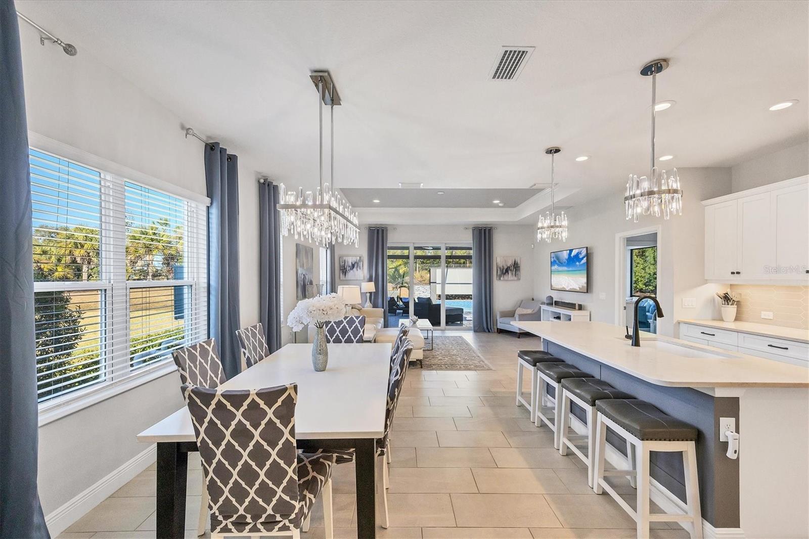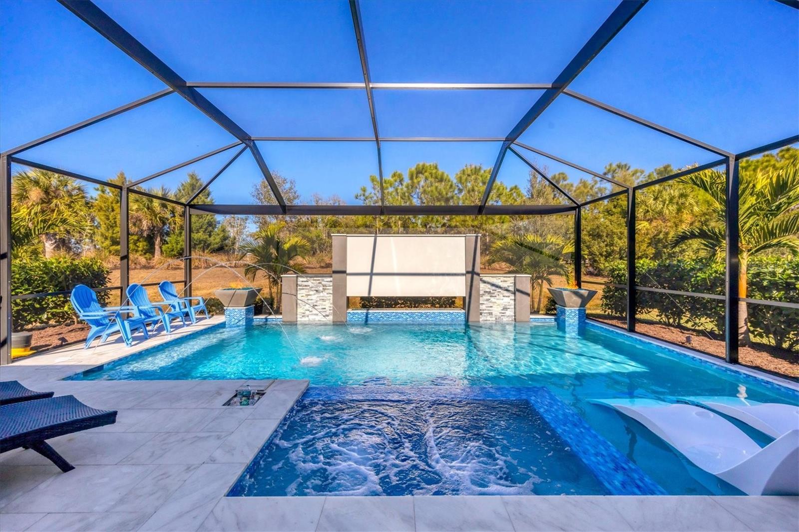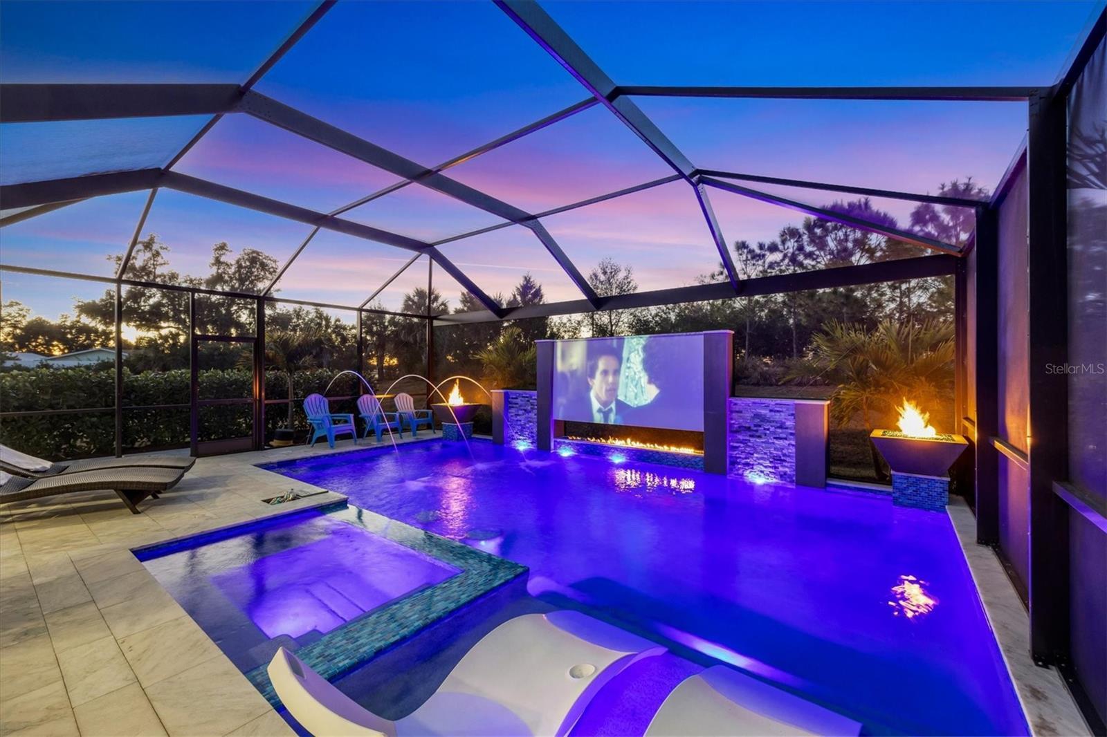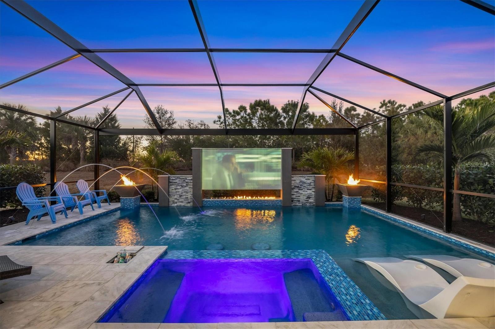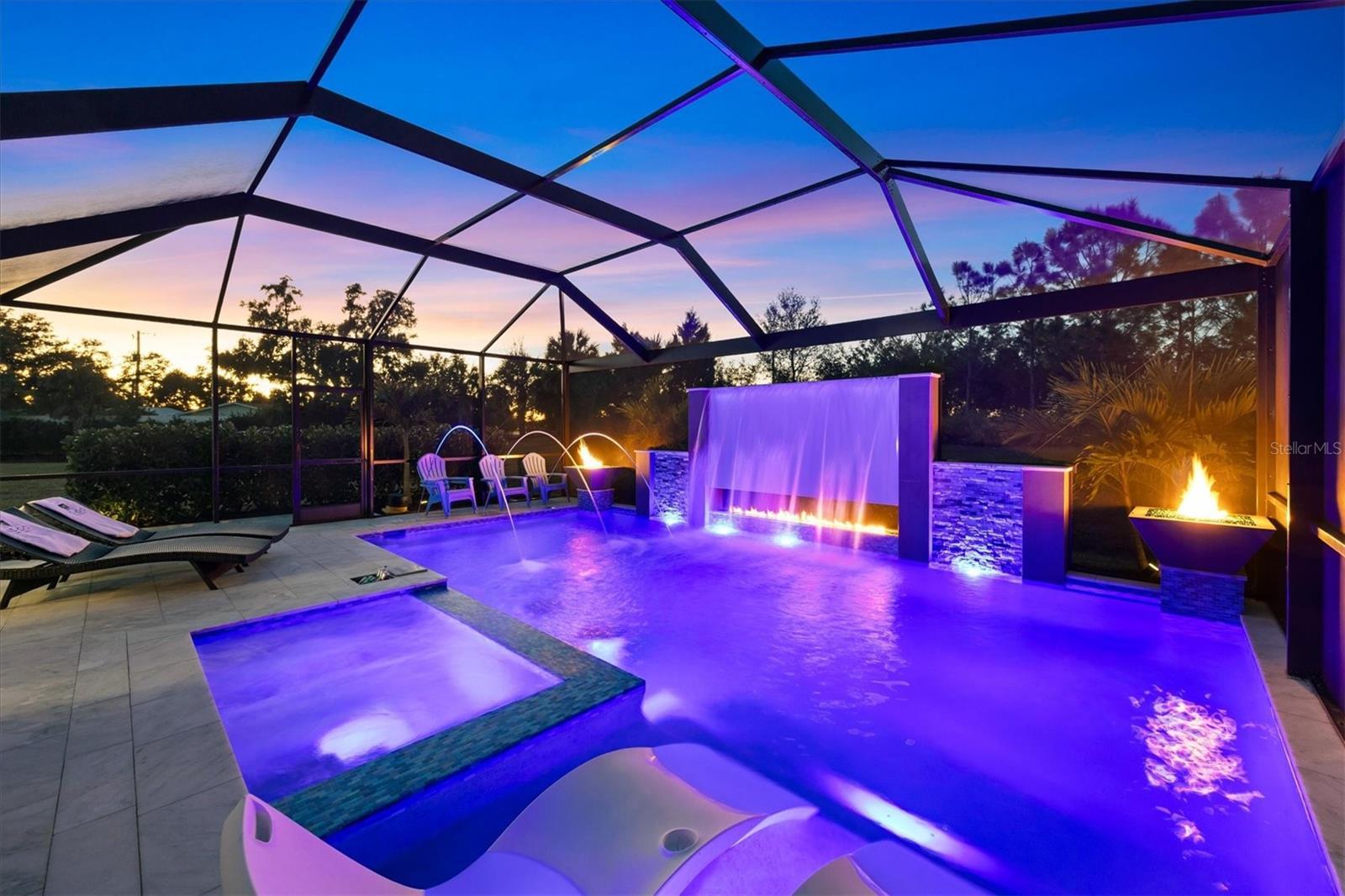 Wait till you see this "Heritage" floorplan with its modern features, impeccable condition AND private pie shaped lot on a cul-de-sac road! This expansive home boasts 4 bedrooms, a LARGE loft area, 3 bathrooms, 2-car garage and a breathtaking covered lanai space with a one off ultra premium saltwater pool spa! Rest assured your new home is built strong and safe with its HURRICANE IMPACT rated glass throughout, cinder block construction, concrete tile roof, ''Guardian'' home alarm system and is located in the highly desirable X floodzone. Throughout the interior you will find 5 1/4" deco baseboards, multiple trey ceilings, LED recessed lighting, high level quartz countertops throughout, custom cabinetry in closets and much more! This home will continue to surprise you with it's private pet room located under the staircase, with its easy access and private location, your beloved pet (s) will be overjoyed to have their own space to relax. The great room with its expansive tray ceiling showcases a spacious environment with more than enough room to entertain guests. For all you kitchen enthusiasts, you will surely gravitate to this custom kitchen featuring a large Island with breakfast bar, upgraded porcelain backsplash, shaker cabinetry with LED undermount lighting that complements the high-level quartz countertops, and an oversized walk-in pantry. The exterior of this home sits very well with its larger than normal lot size, super private rear setting, and brand-new professionally installed landscaping throughout which further sets this home apart from the others! Open up the three paneled HURRICANE IMPACT rated POCKET sliders and prepare to be absolutely amazed! As you walk on the premium marble flooring upon entering the lanai, you'll be in absolute awe of the custom built-in kitchenette with "Bull" stainless steel gas grill with a matching fridge AND one of the most desirable pools seen in a residential home. This expansive fully optioned pool has: numerous water features, movie wall with "Sonos" outdoor sound system with underground subwoofer, TWO fire bowls with a fire trey under movie wall, multi-color LED lighting for pool/spa/barstoools with vertically mounted wall lights, "PebbleTec' with luminous glass blend and shimmering seas abalone, gas and electric heating, salt chlorinator w/Ph monitoring AND integrated dosing system, sunshelf w/umbrella sleeve, built-in deck drink cooler right next to your LARGE SIX person spa with DUAL QUAD therapeutic jet system all ran off its own dedicated jet pump. ALL of this can be operated from your smart device! WOW is right..Indigo is an active community that features a full time on-site manager as well as a full time activities director that manages an extensive calendar of activities for all ages. A-Rated Gullett Elementary AND Mona Jain Middle school are right outside our gates too! You can also expect sidewalks on both sides of the street, ''Oasis'' pool/spa, resort style heated community pool/spa at the main clubhouse where you will find 5 cabanas with an abundance of seating, 4 pickleball courts, 2 bocce ball courts, 24-hour exercise gym, meeting room/banquet room and playground. Indigo is not only a community that takes care of all ground maintenance to include mowing, fertilizing, irrigation, shrubs and mulch but is right around the corner to a plethora of dining, banking, entertainment, public transportation and MORE!
