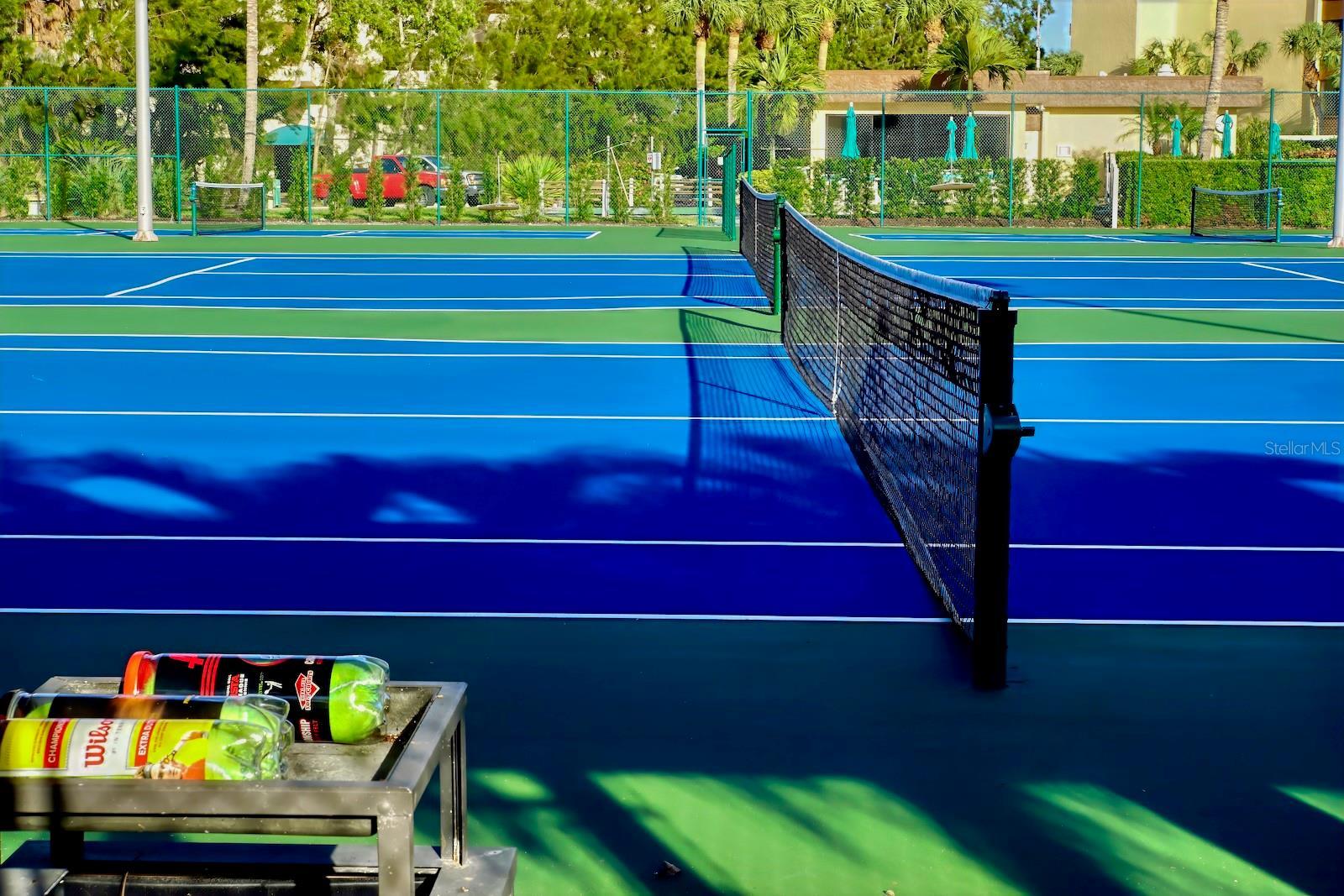 - Balcony, Lighting, Outdoor Grill, Outdoor Shower, Private Mailbox, Rain Gutters, Sliding Doors, Tennis Court(s)