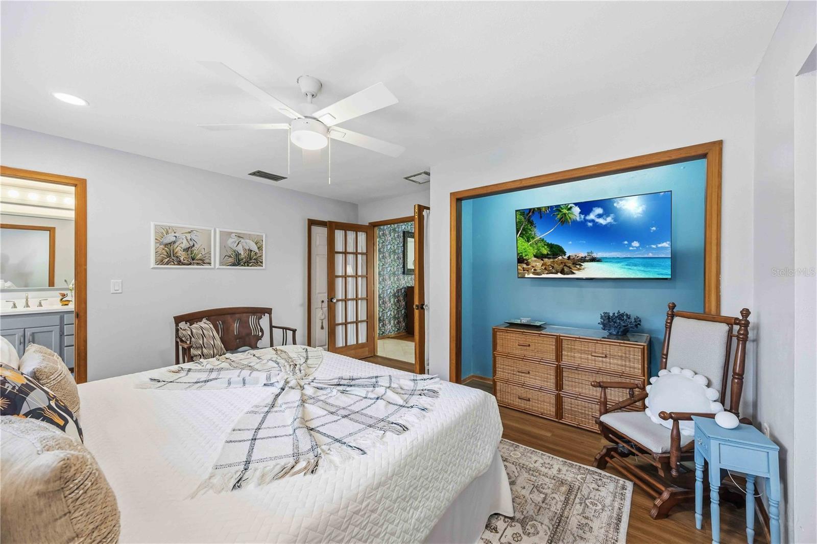 - Cathedral Ceiling(s), Ceiling Fans(s), Crown Molding, Primary Bedroom Main Floor, Solid Wood Cabinets, Split Bedroom, Thermostat, Walk-In Closet(s), Wet Bar, Window Treatments