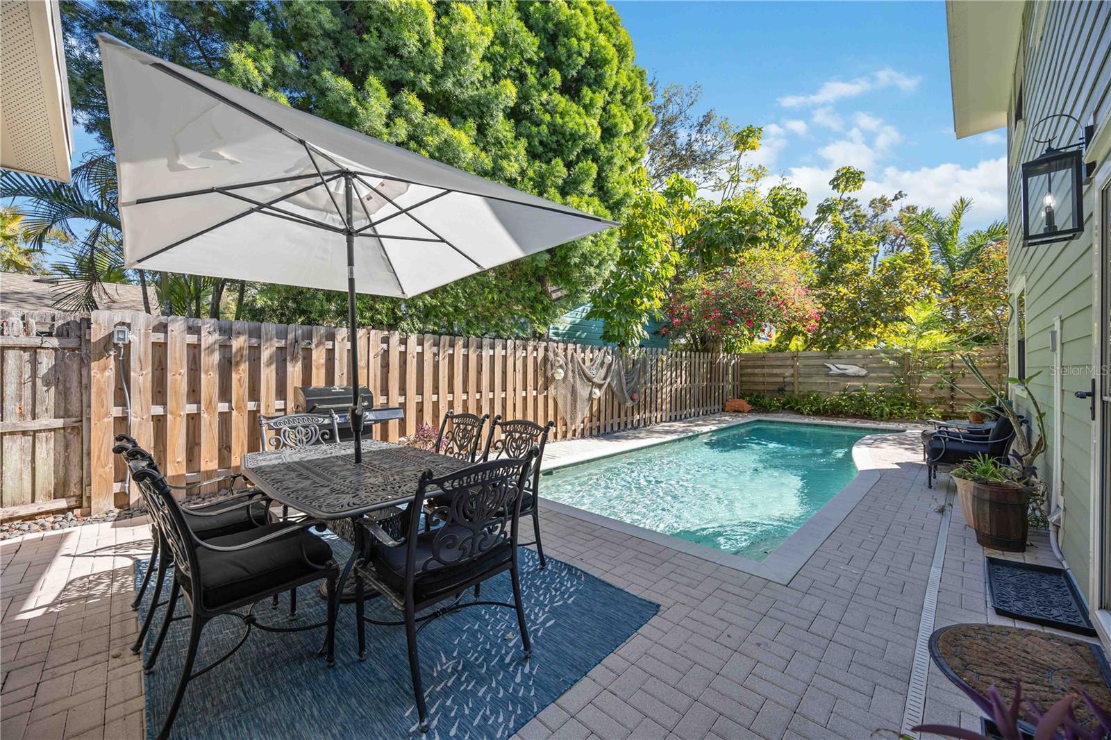 - Courtyard, Fire Pit, Garden, Lighting, Outdoor Grill, Private Entrance, Private Mailbox, Private Yard, Rain Gutters, Sidewalk, Sliding Doors