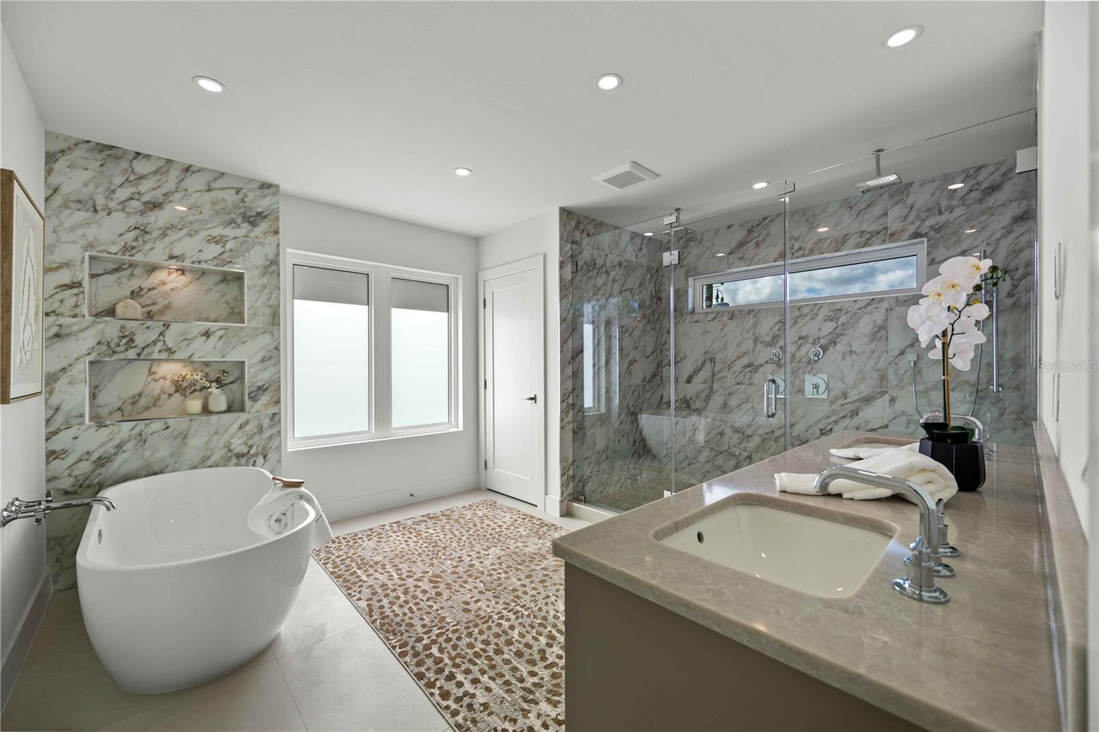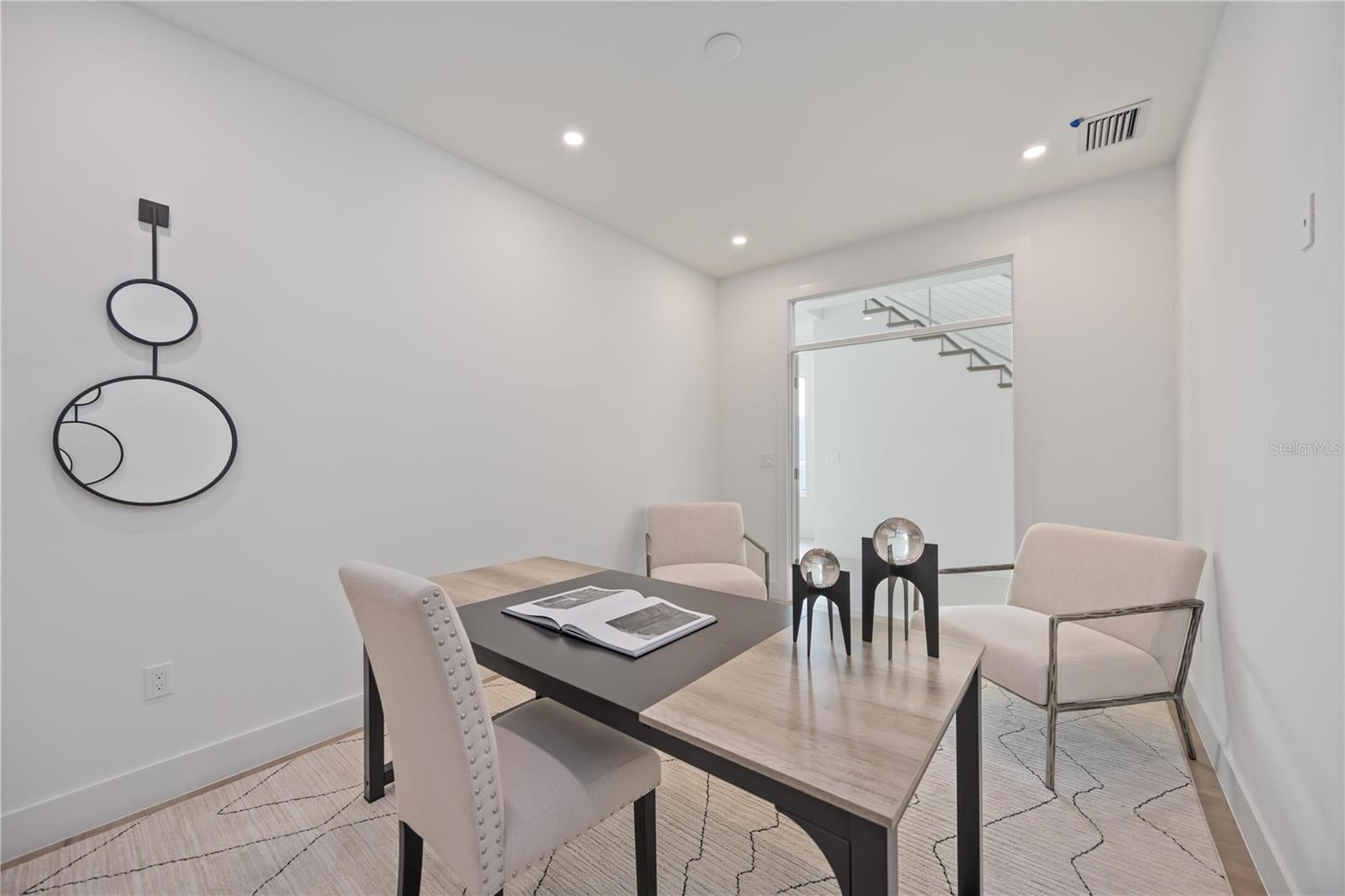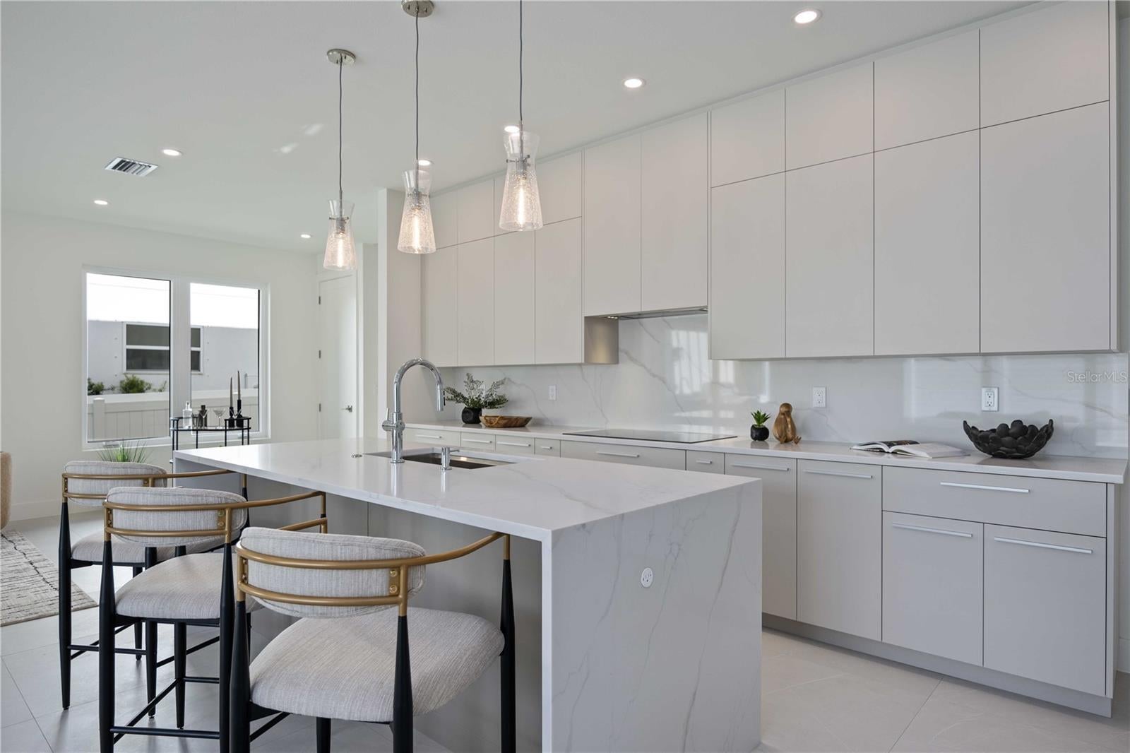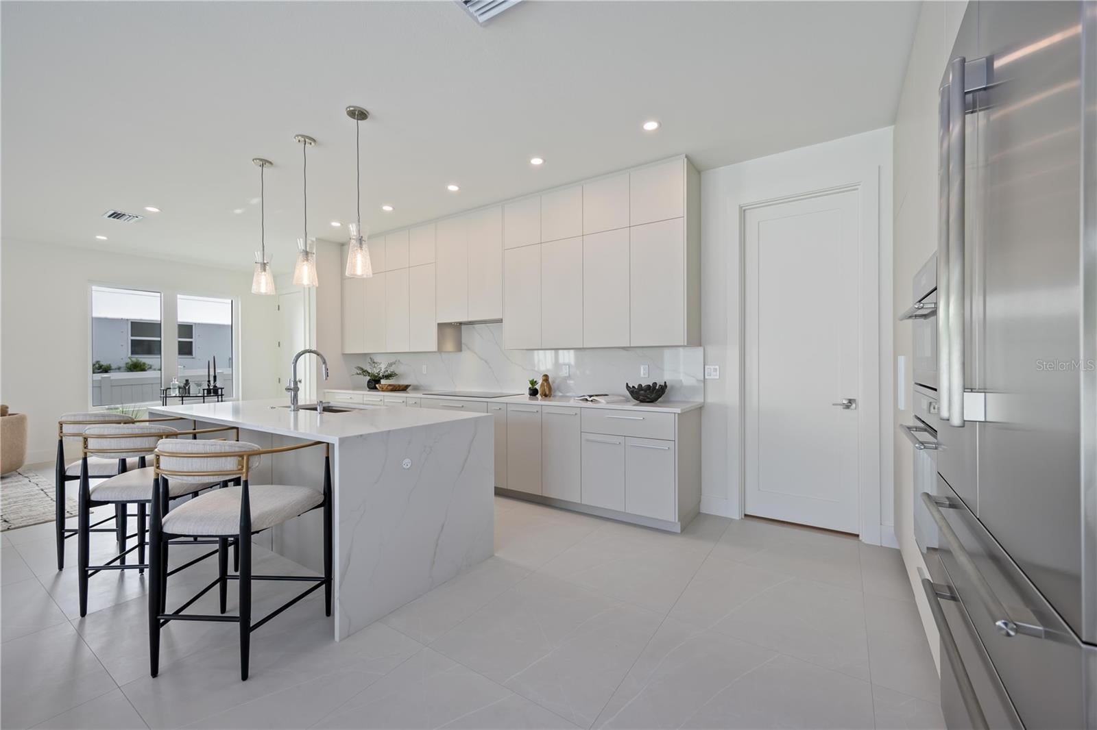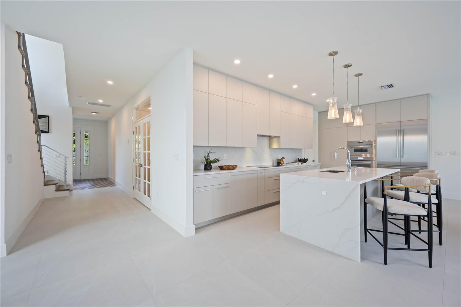 Brand-new luxury home in Arlington Park, located in the highly desirable Rustic Lodge enclave. This 3 bedroom plus den, 3.5 bath residence offers exceptional design, high-end finishes, and a private outdoor oasis. Step into your private backyard retreat featuring a heated saltwater pool and a fully equipped outdoor kitchen with Blaze burner grill, granite countertops, and a Zephyr beverage center. Elegant pavers surround the entertaining area, while a grassy yard provides space for pets or gardening, perfect for indoor-outdoor Florida living. Inside, the foyer showcases porcelain tile flooring, flowing seamlessly throughout the home for a clean, modern look. A private office/den is conveniently located just off the entry. The open-concept living area centers around a show-stopping kitchen with custom Studio Luxe cabinetry extending to the ceiling, quartz countertops, a full-slab quartz backsplash, and a dramatic waterfall island. Thermador appliances include an induction cooktop, 42" built-in French door refrigerator, and combination wall oven. Upstairs, all bedrooms feature en-suite bathrooms and walk-in closets with custom shelving. And a luxurious primary suite with a spa-inspired bath. One-year builder warranty. Located just minutes from Downtown Sarasota, Siesta Key Beach, St. Armands Circle, Sarasota Memorial Hospital, the Legacy Trail, and top-rated schools. With no HOA and weekly rental eligibility within city limits, this home also presents an excellent vacation rental or investment opportunity.