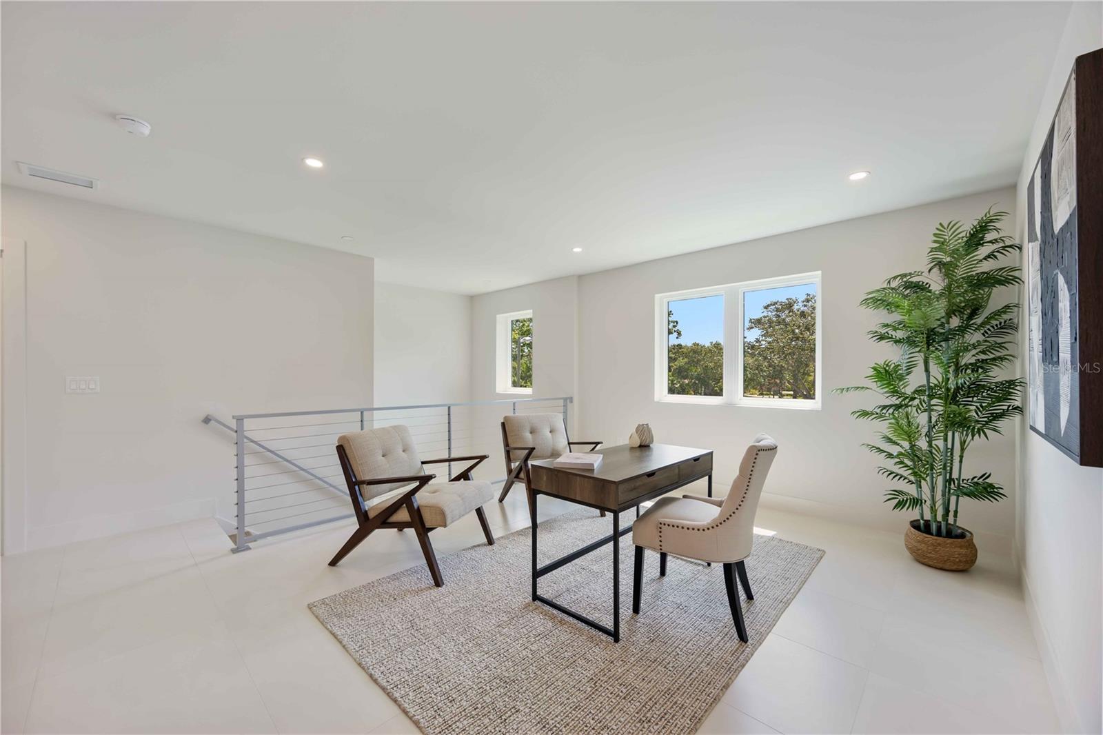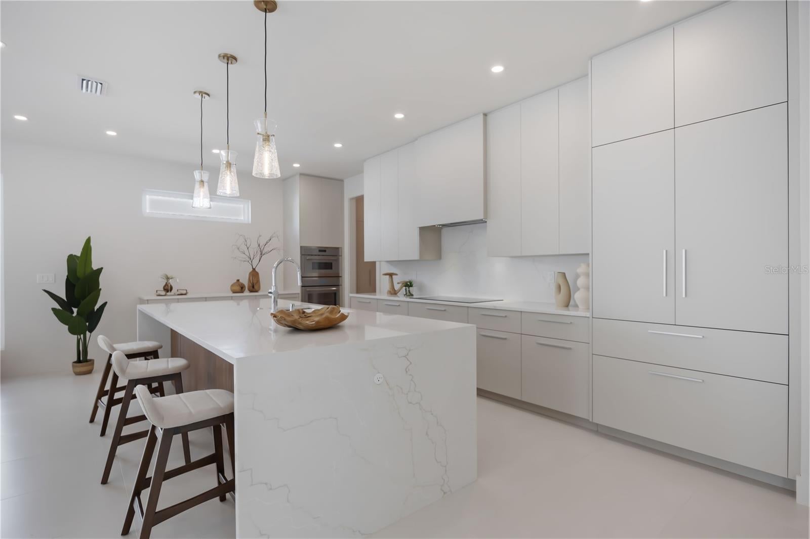 One or more photo(s) has been virtually staged. One or more photo(s) has been virtually staged. Welcome to a Modern Masterpiece in the Heart of Sarasota. This contemporary home was completed in 2025 and offers 4,000 square feet of thoughtfully designed living space in the coveted Rustic Lodge section of Arlington Park. This light-filled, open-concept floor plan blends indoor and outdoor living seamlessly for enhanced living and entertaining. The centerpiece of the home is the chef's kitchen with floor to ceiling custom cabinetry by Studio Luxe, quartz countertops, a full-slab backsplash, and a dramatic waterfall island. Premium Thermador appliances include a 42-inch French door refrigerator, induction cooktop, wall-oven combination, and range hood. Additional bonus cabinetry just off the kitchen and an oversized pantry provides ample storage. Large porcelain tile flooring throughout enhances the clean, modern aesthetic. The primary suite is located on the main level, featuring a spa-inspired bathroom with dual vanities, an oversized zero entry shower, and a freestanding soaking tub. Upstairs, you'll find a bonus room that could be used as a den, reading room or fitness area and generous loft perfect for movie or game nights as well as a large laundry room. There are three well positioned and private bedrooms with en-suite bathrooms and custom closet systems; each with access to a balcony. Outside, you will find a large paver patio with outdoor kitchen equipped with a Blaze grill, granite countertops, and Zephyr beverage center. The heated saltwater pool and spa and fenced yard extend the tranquility this home offers. Additional features include Kohler plumbing fixtures, Daltile porcelain tile, Franklin lighting, titanium pavers, premium PGT windows, PVC vinyl fencing and a 5V crimp metal roof. A 21-foot driveway, two-car garage, irrigation system, exterior lighting, decorative shutters and a two-car garage add to the thoughtful design and effortless living this home offers. This home is located just minutes from downtown Sarasota, Siesta Key Beach, St. Armands Circle, Sarasota memorial Hospital, SRQ airport, Legacy Trail, Arlington Park and in a top-rated school district offering convenience and lifestyle.