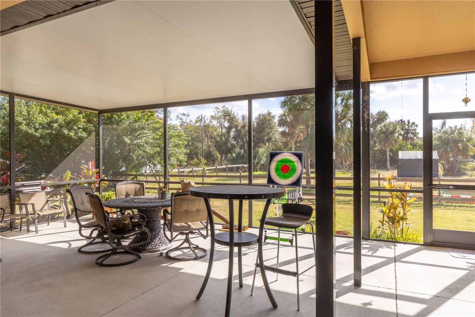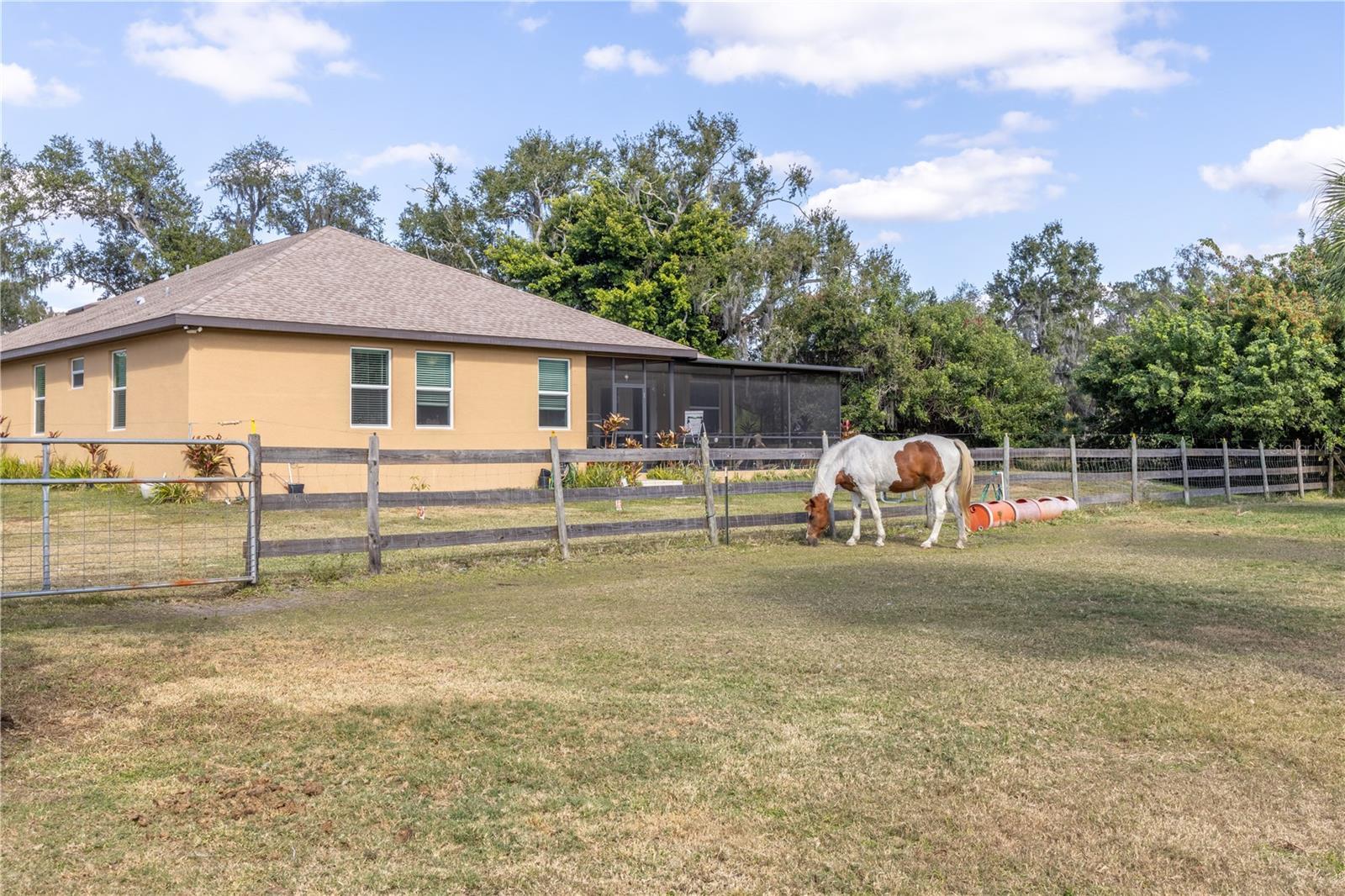 Rare opportunity to own a custom-built 2022 home on a fully fenced and cross-fenced one-acre horse property in town. Homes in this area rarely come on the market. This spacious 3-bedroom, 2-bath residence offers 2,314 sq ft under heat and air and 3,229 sq ft total. This must see home is thoughtfully designed with 10-foot ceilings, modern finishes, DETAILS, and an open & functional layout. The home features a huge gourmet kitchen, separate dining room, two living areas, and spacious bedrooms. This Fantasic Home is ideal for both entertaining and everyday living. This home is clean, bright and natural light is abundant. Additional highlights include indoor laundry, and a 2-car garage. Step outside to a massive lanai overlooking the beautifully maintained acre with large mature trees, providing privacy and endless possibilities. The property includes a gated entry and offers plenty of room to build a pool or create your own outdoor oasis. Enjoy the rare combination of acreage and convenience—just a short drive or Uber ride to nightlife, entertainment, shopping, restaurants, beaches, Mote Marine, UTC, and more. Would be a dreamy place to start a large garden. Peacocks roam the property. PRIVATE!!! ULTRA PEACEFUL No HOA. Bring you boat, RV, or horse trailer. Plenty of room to build a barn or Giant Garage behind the home. Home is on county water. Has easy to install hurricane shutters. A truly one-of-a-kind in-town horse property blending modern construction, space, and lifestyle.