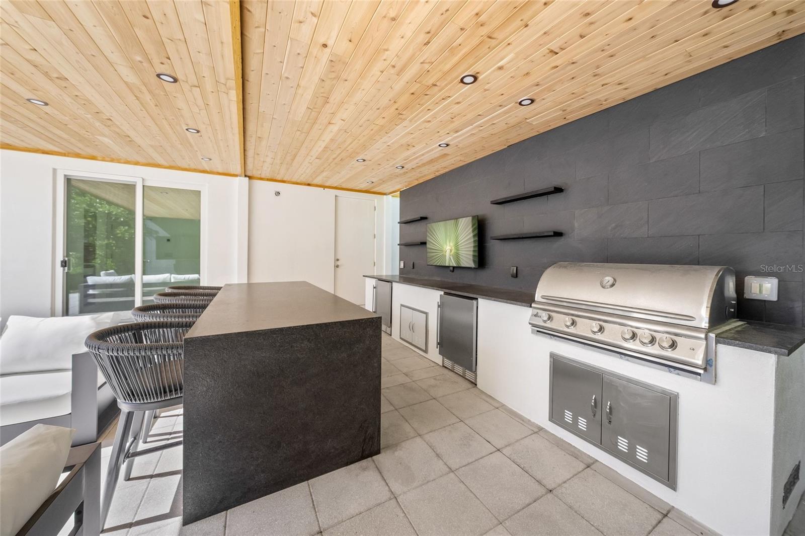 A bold expression of modern coastal luxury, 3500 Bay Shore Road is a show stopping FURNISHED Sarasota residence that has been completely renovated, where cutting-edge design, resort-caliber finishes, and an unrivaled location converge into one unforgettable home. Built in 2019, this meticulously renovated masterpiece is set within one of Sarasota’s most desirable neighborhoods, delivering a rare combination of architectural sophistication and effortless livability. From the moment you arrive, the home’s clean lines and elevated presence signal a residence crafted for the most discerning buyer. Inside, expansive windows, soaring 12 foot ceilings, and an extraordinary 12-foot statement fireplace wall define the sun-drenched living space, creating a dramatic yet inviting atmosphere ideal for both grand entertaining and intimate gatherings. The gourmet custom kitchen is a work of art, featuring brand-new white oak cabinetry imported from Europe, stunning Taj Mahal quartzite countertops, and a layout designed to inspire culinary creativity while remaining seamlessly connected to the main living areas. The primary suite is a private sanctuary, offering direct access to the pool terrace and custom-designed closets that rival luxury boutiques. The spa-inspired primary bath evokes a five-star resort, showcasing sleek modern fixtures, refined materials, and a tranquil ambiance designed for daily indulgence. Every detail throughout the home reflects uncompromising quality—from the generously scaled tile flooring and hurricane-impact windows, natural gas connected to the home, to the central vacuum system and Tesla charging station in the garage. The outdoor living experience is equally impressive, anchored by a pristine lap pool, lush tropical landscaping, and a stylish cabana that features a full outdoor kitchen/bar that transforms the backyard into a private retreat for entertaining or peaceful relaxation. Notably, the property is not located in a flood zone, adding peace of mind to its long list of advantages. Perfectly positioned just minutes from Sarasota’s vibrant downtown, residents enjoy effortless access to iconic destinations including Lido Key, Siesta Key, world-class shopping and dining at St. Armands Circle, and cultural landmarks such as The Ringling Museum and the Sarasota Opera House. Surrounded by upscale dining, yacht clubs, and scenic parks, 3500 Bay Shore Road offers a lifestyle defined by elegance, convenience, and refined coastal living—an extraordinary opportunity to own a truly turnkey luxury home in the heart of Sarasota.