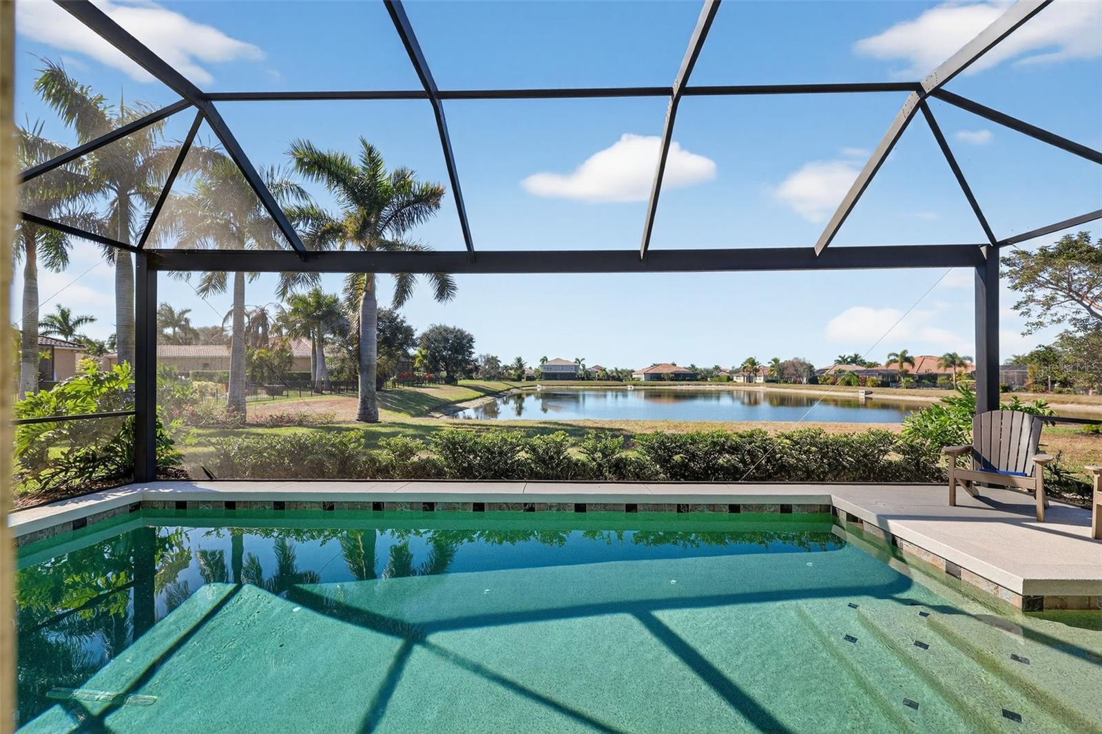 Spacious living for all in this stunning over 3,800 sq. ft., tile roof Osprey C model. Glorious bamboo and tile floors throughout the four-bedroom, four-bathroom, office and bonus room in Rye Wilderness Neighborhood. Sought after for its' half acre lots, No CDD, Low HOA and top schools, listing just some of the reasons Rye is sought after in NE Bradenton, but this model offers so much more, making it the dream forever home. Curb appeal is spectacular as you enter the longer paver driveway to the three-car side load garage. Entering the home through the ornamental glass entry door into a complete home impact hurricane resistant coverage, lovely ten-foot ceilings with tray ceilings 11-foot and eight-foot doorways, raised base molding, expansive dining room and great living room area with fantastic views of the largest covered lanai, pool and pond. The master suite has an office forward, larger master bedroom with sliders to the lanai, walk-in closet, barn door second closet and double sink bathroom with walk-in shower and garden tub for relaxing. The updated kitchen with THREE ovens, microwave, large counter breakfast bar/island with sink, upgraded gourmet kitchen cabinets, tiled backsplash and walk-in pantry with strong storing space. Kitchen looks into a second living room with larger slider viewing out to lanai, pool and pond. From the living room, two bedrooms and a share/guest bathroom. The fourth bedroom is an ensuite with full bathroom inside and under the stairs walk-in closet for great additional storage. The upstairs bonus room offers many options like, a possible fifth bedroom, gaming room, living room with second HVAC, two closets and a full bathroom containing a walk-in shower. This room has several windows with abundant natural light and views out to a nature preserve across the street. This home has one of the largest under-cover lanais in Rye Wilderness, offering grand space to gather, to create an outdoor kitchen area. Hurricane impact resistant remote screens close the cover to protect home and outdoor items tucked inside the space. Swim in the salt water, solar heated pool looking out across a large pond and artist dream sunsets through the full picture screen. Rye Wilderness is perfectly located just north of Lakewood Ranch, Sarasota to the south, Anna Maria Island to the direct west and St. Pete to the north. An hour to the Tampa airport and the city events. Local restaurants abound, shopping and the UTC mall, simple needs and grocery stores just minutes away. The federal park of Rye Wilderness next and north from the neighborhood for hiking, canoeing and kayaking and the Fort Hamer Bridge just ten minutes to drop a boat and into the big bays within minutes and the Manatee State Park just east. Balance your Florida life with the luxury estate living in this amazing home. Come and see this for yourself and make your dream a reality.