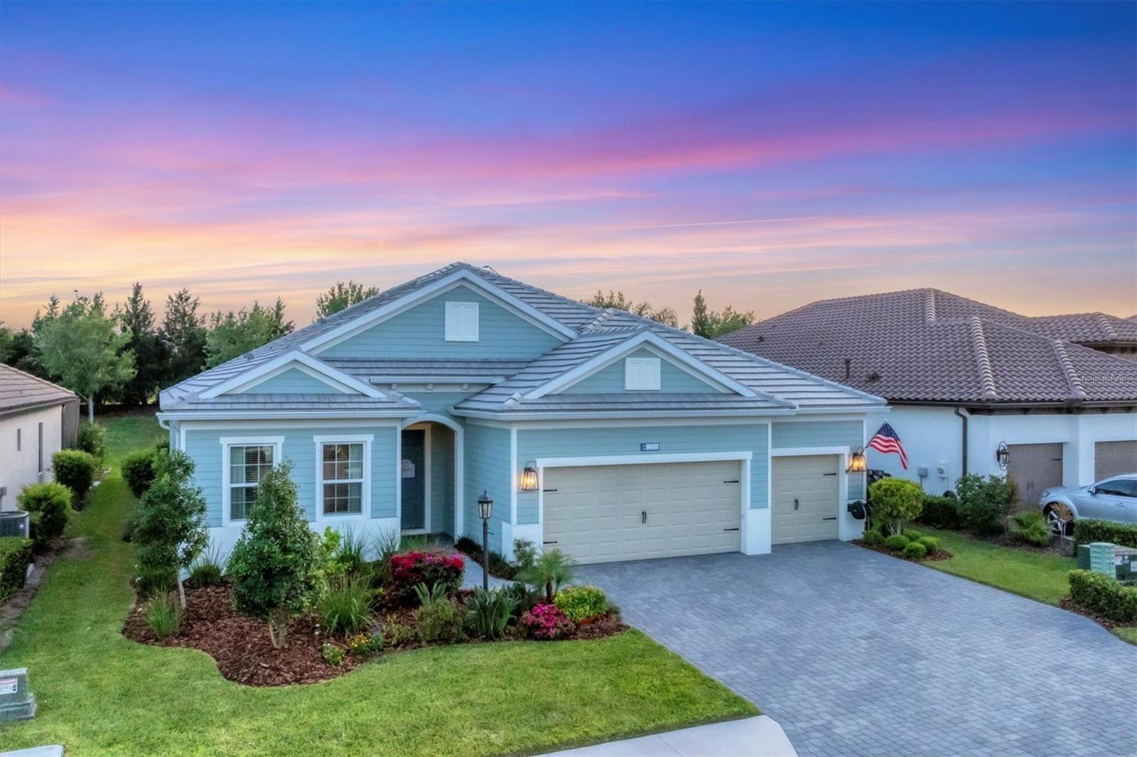 **Property offers a transferable conventional mortgage, subject to lender approval and buyer qualification** Searching for a private, sun-filled home in Lakewood Ranch? This beautifully appointed 4-bedroom, 3-bath residence with an extended 3-car garage is located in the gated Indigo at Lakewood Ranch community, known for its resort-style amenities and maintenance-free lifestyle. Built in 2022 by Neal Communities, this Silver Sky II floor plan is positioned on a premium southern-facing lot, creating a bright, private backyard setting ideal for everyday living and entertaining. Inside, the home features 10-foot tray ceilings, hurricane-impact windows, and pocketing sliding glass doors that enhance the open, airy layout. The chef’s kitchen is a standout, offering quartz countertops, a porcelain tile backsplash, under-cabinet LED lighting, a walk-in pantry, and GE stainless steel appliances, including a gas cooktop, convection wall oven, and oversized vent hood. The primary suite provides a true retreat with dual walk-in closets and a spa-inspired en-suite bath featuring dual vanities, stone countertops, a private water closet, and a large walk-in shower with transom window for natural light. Additional highlights include a dedicated den/study with 8-foot French doors, new carpet in all bedrooms, an oversized laundry room with Maytag washer and dryer, and an epoxy-finished garage with built-in storage and a vent fan. The covered lanai is pre-plumbed for a gas grill or outdoor kitchen, offering seamless indoor-outdoor living. Residents of Indigo enjoy a heated resort-style pool, five cabanas, clubhouse, 24-hour fitness center, pickleball and bocce courts, and a full-time activities director hosting year-round events. The HOA includes lawn care, irrigation, and landscaping, ensuring a low-maintenance lifestyle. Ideally located just minutes from Waterside Place, Lakewood Ranch Main Street, UTC, top-rated schools, and world-class Gulf Coast beaches, this home offers the perfect balance of luxury, convenience, and effortless Florida living.