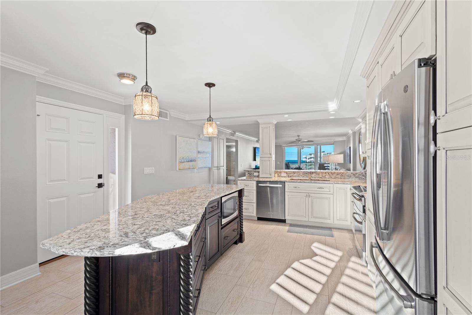 An unusual price for an unusual seaside residence. Completely renovated with stunning views from every window. Enjoy your morning coffee on the lanai and relish the downtown skyline as well as the Gulf of Mexico and Siesta Beach. Renovations include completely repainted, impact resistance windows, new interior doors, closet organizers and new front door. Casarina amenities include heated pool/spa, pickle ball/tennis courts, exercise room, gas grills, etc. This is worth a visit to see everything you can bring into your life.