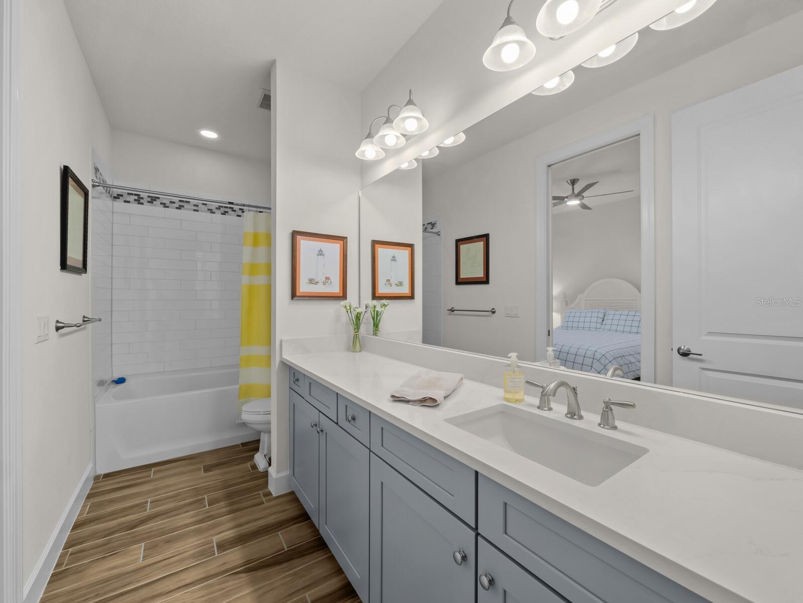 Cheers to the resort lifestyle you’ve been dreaming of in the highly desirable, gated Esplanade on Palmer Ranch! This stunning maintenance-free waterfront villa with a private pool offers luxury, comfort, and thoughtful upgrades, all within a vibrant, amenity-rich community with no CDD fees. This Nantucket inspired, light-filled 3-bedroom, 2-bath Arezzo model features a thoughtfully designed open floor plan with soaring ceilings, wood-look plank tile flooring, 8-foot doors, tray ceilings with crown molding and shiplap inlay, and elegant neutral tones throughout. The spacious living and dining areas flow seamlessly, creating the perfect space for entertaining or everyday living. A private office/den with pocket slider doors with glass inserts provides flexibility for working from home or pursuing hobbies. The delightful Chef's kitchen makes cooking a breeze with its Quartz countertops, stainless steel appliances, gas cooktop, farmhouse sink, soft-close cabinetry, and stylish backsplash—all overlooking serene lake and pool views. The split-bedroom layout ensures privacy, with the primary suite serving as a true retreat featuring breathtaking water views, a generous walk-in closet, and a spa-inspired ensuite bath with dual vanities, glass-enclosed walk-in shower, and designer finishes. Guest bedrooms are spacious, filled with natural light, and offer ample closet space, with one bath doubling as an ensuite. Step outside to your screened lanai, where a heated pool and a peaceful lakefront setting create the ultimate indoor-outdoor living experience. Additional builder upgrades include whole house impact windows and doors, extended 4' garage, garage attic stairs, 8' solid core doors, multiple pocket doors, and radiant barrier insulation. Recent owner updates include lighting fixtures, ceiling fans, plantation shutters, laundry room cabinets, laundry entry door with glass insert to maximize natural light, newer refrigerator, range, and carpet in bedrooms. Esplanade on Palmer Ranch offers a true resort-style lifestyle, complete with a Lifestyle Director, elegant amenity center, Bahama Bar and restaurant, catering kitchen, fitness center, wellness services, yoga and aerobics studios, resort pool and spa, fire pit, tennis, pickleball, bocce ball, dog parks, walking trails, playground, splash pad, food trucks, community events—and a private entrance to the Legacy Bike Trail. Golf carts are welcome, adding to the fun and social atmosphere. This lot was selected by the homeowner due to its amazing water view and its close proximity to both the amenity center and Legacy Trail. Ideally located near Siesta Key and Nokomis beaches, top-rated schools, shopping, dining, entertainment, Costco, and all that Sarasota and Venice have to offer—this home truly has it all. Don’t miss the opportunity to own this exceptional waterfront home where luxury, convenience, and resort living come together beautifully.