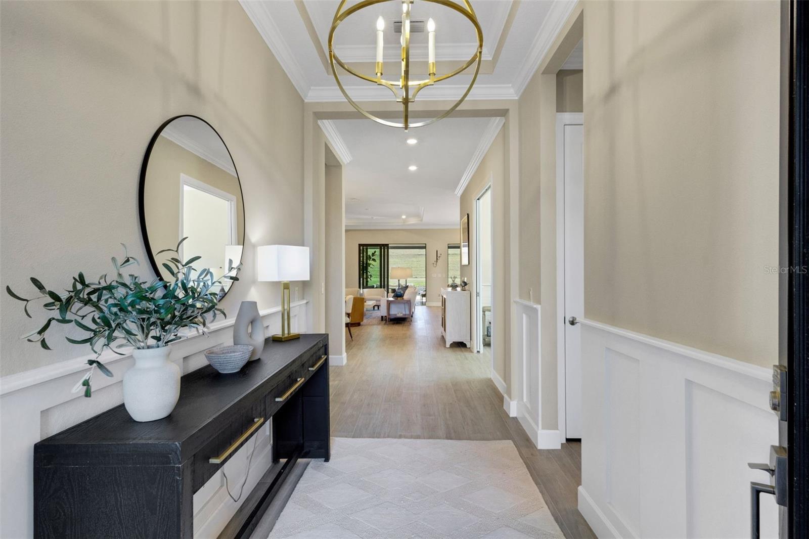 WHAT A GRAND VIEW IT IS!!! Welcome to 6186 Grandview Hill Ct. Stop scrolling...this is the ONE! Life is too short so it's time you "go for it" and indulge in that upscale, resort style, maintenance free living that you have always dreamed of and deserve. This show stopper offers you just that. Perfectly situated on one of the best lots in Esplanade with breathtaking views of Mt. Tumalo and coupled with peaceful, private, sparkling lake views. This quality built, highly sought after Lazio floor plan by Taylor Morrison Homes has 3Br, 3Ba, a Den and a 3 car tandem garage. The outdoor living space is truly spectacular featuring an oversized lanai with fully equipped outdoor kitchen and a gorgeous heated saltwater pool--ideal for entertaining or relaxing while soaking up those Florida rays. The original owners spared no expense with all the dreamy finishes and upgrades. It is absolutely pristine and will not dissapoint the most discriminating buyer. This fabulously light, bright and open floorplan showcases ceramic tile throughout the entire home. Beautiful crown molding, tray ceilings, wainscoting and decorative mirrors and wood trim wall accents add class and character. The owners replaced all the builder grade quartz counters in the kitchen and all baths with absolutely stunning, all natural quartzite. The heart of this home is the glorious kitchen with its oversized extended quartzite center island, 42" wood cabintes with crown molding, stainless steel appliances, gourmet natural gas range with hood, double oven, decorator glass backsplash and wine fridge. The spacious Primary suite enjoys fabulous views from your bay window, a heavenly sized walk-in closet, double vanities with lighted mirrors and additional cabinetry. Other upgraded features that grace the home include: plantation shutters, custom wood shelving in all the closets, additional cabinets in laundry room, designer light fixtures and ceiling fans, remote control shades on the lanai, gutters, spray foam insulation and upgraded landscaping. Esplanade offers top of the line amenities and vibrant social activities which include an on-site Lifestyle Manager, an elegant clubhouse, resort-style heated pool with cabanas, fitness center, tennis, pickelball, fire pits, bocce ball, a Bark Park, full service spa and concierge service! Residents enjoy picturesque views and access to Mt. Tumalo with its walking trails and workout stations. This gated, maintenance-free community is ideally located just minutes from UTC Mall, dining, Sarasota-Bradenton International Airport, I-75, Benderson Park, Lakewood Ranch, Waterside Place, downtown Sarasota, and St. Armands Circle and more— and only a short drive to the world-famous white sand beaches of Florida’s Gulf Coast. You simply can’t beat this location — or this relaxed luxury lifestyle.
