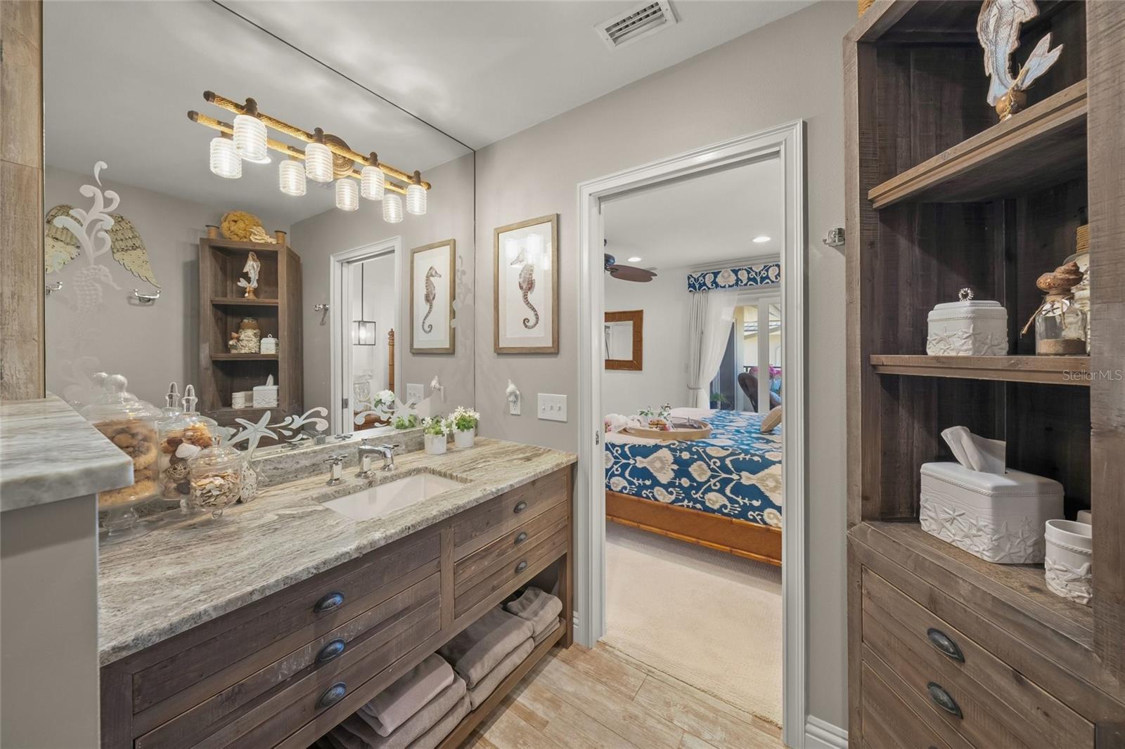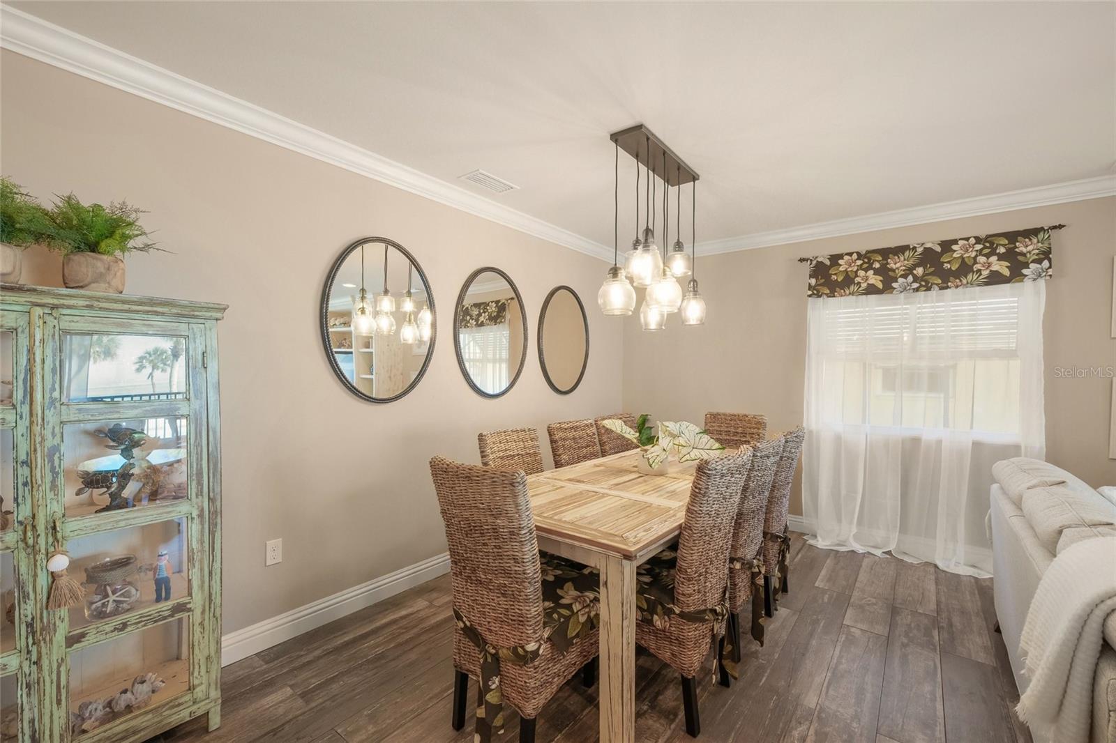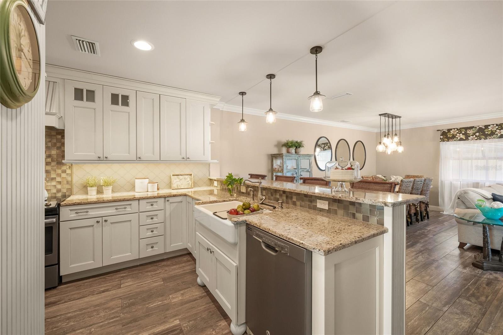 - Built-in Features, Ceiling Fans(s), Crown Molding, Living Room/Dining Room Combo, Open Floorplan, Solid Wood Cabinets, Split Bedroom, Stone Counters, Window Treatments