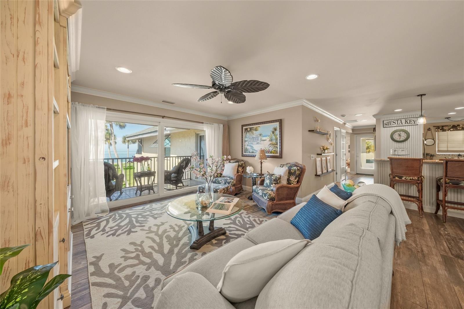 STUNNING FULL GULF VIEWS!..... STUNNING UPDATES THROUGHOUT!..... STUNNING SUNSETS!----You will be WOWED by this FURNISHED Siesta Key residence....just moments to the "baby powder" quartz white sands of TOP RATED Siesta Key Beach. This WELL-APPOINTED Spacious & PET FRIENDLY Two Bedroom/2 Bath condo has many desired UPDATES & FEATURES: Impact Windows/Sliders; Elevated Coastal Furnishings; Indulgent Primary Suite with Sumptuous Ensuite "Spa-Like" Bathroom; Custom Closets & BUILT-INS THROUGHOUT; Continuity of Materials & Finishes; In Unit Washer/Dryer; and a Large Kitchen with solid wood cabinetry; stainless appliances, glass tile backsplash & Generous amounts of Counter Space & Storage! You will ENJOY your morning coffee Dolphin Watching and your evening cocktails soaking in the Amazing Colors of Sunset over the Gulf.....Sea Village, conveniently located to dining/shopping/nightlife of the Main Village, features (2) gulfside Pools; fishing pier; Bike Storage & additional Storage Lockers. Perfect as Investment; Vacation or Year-Round Residence.