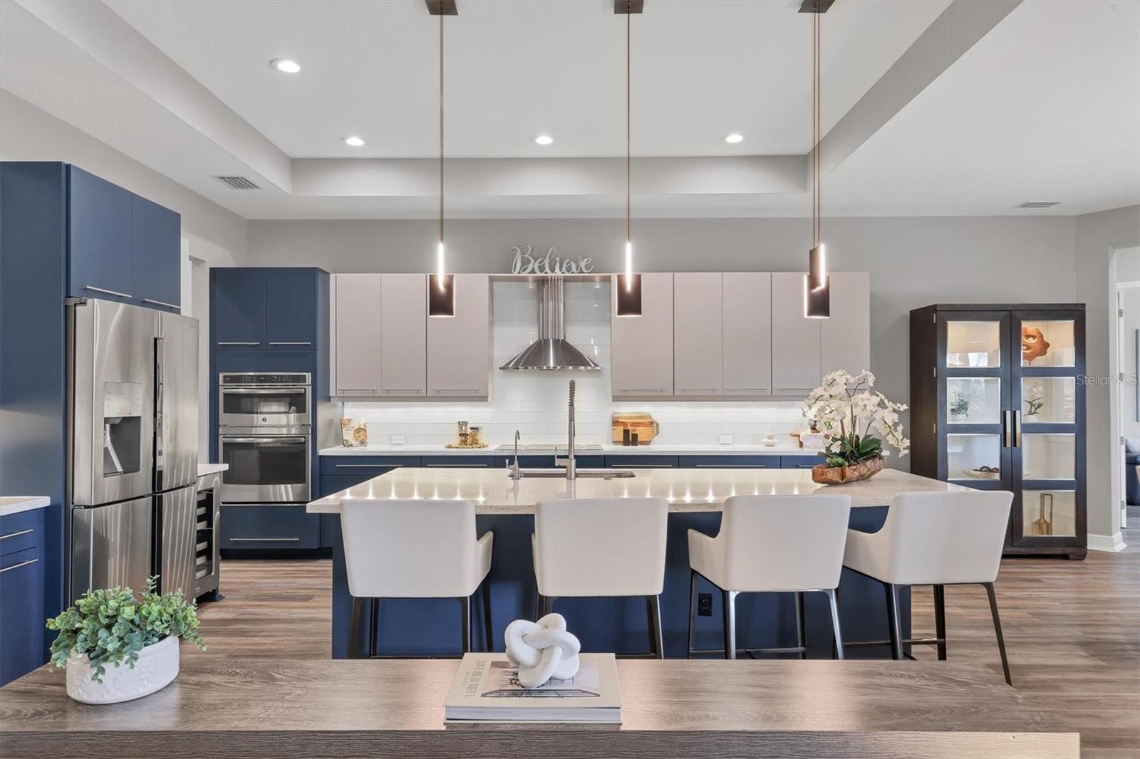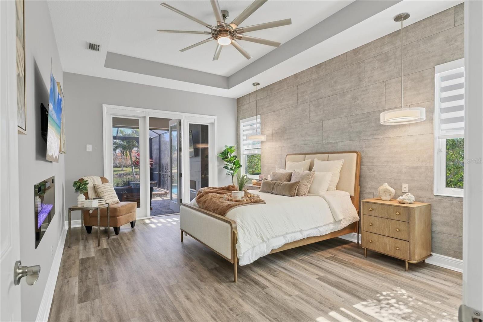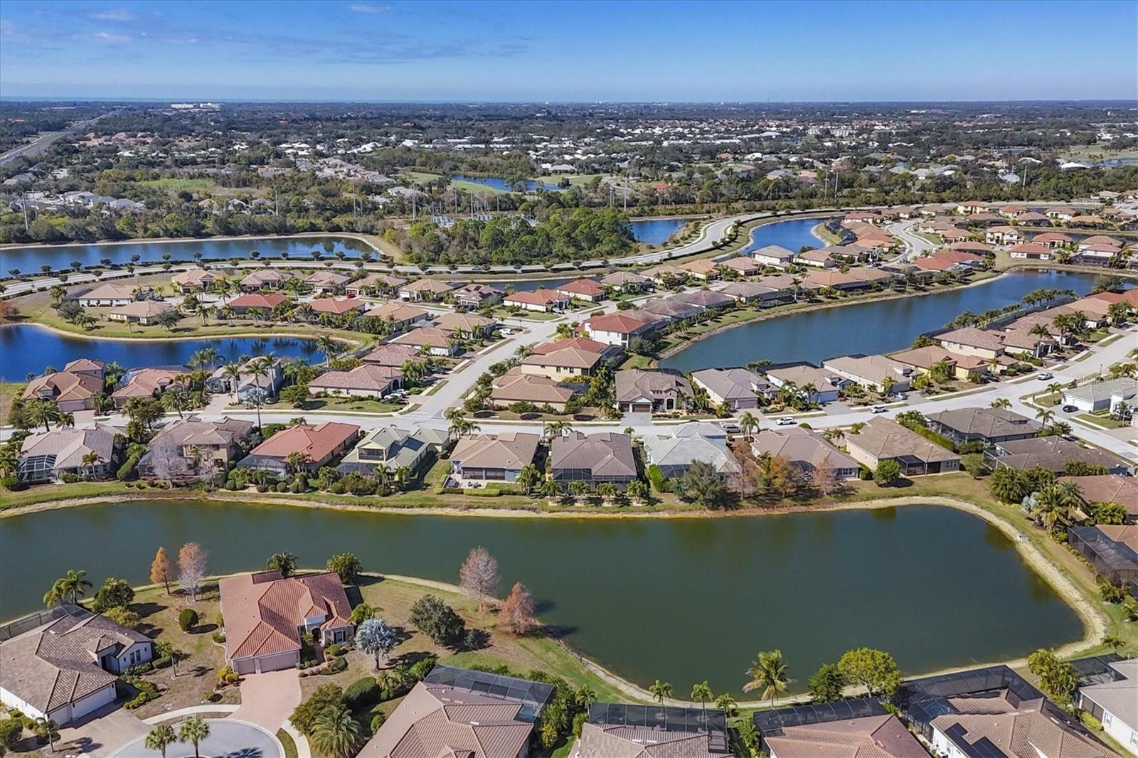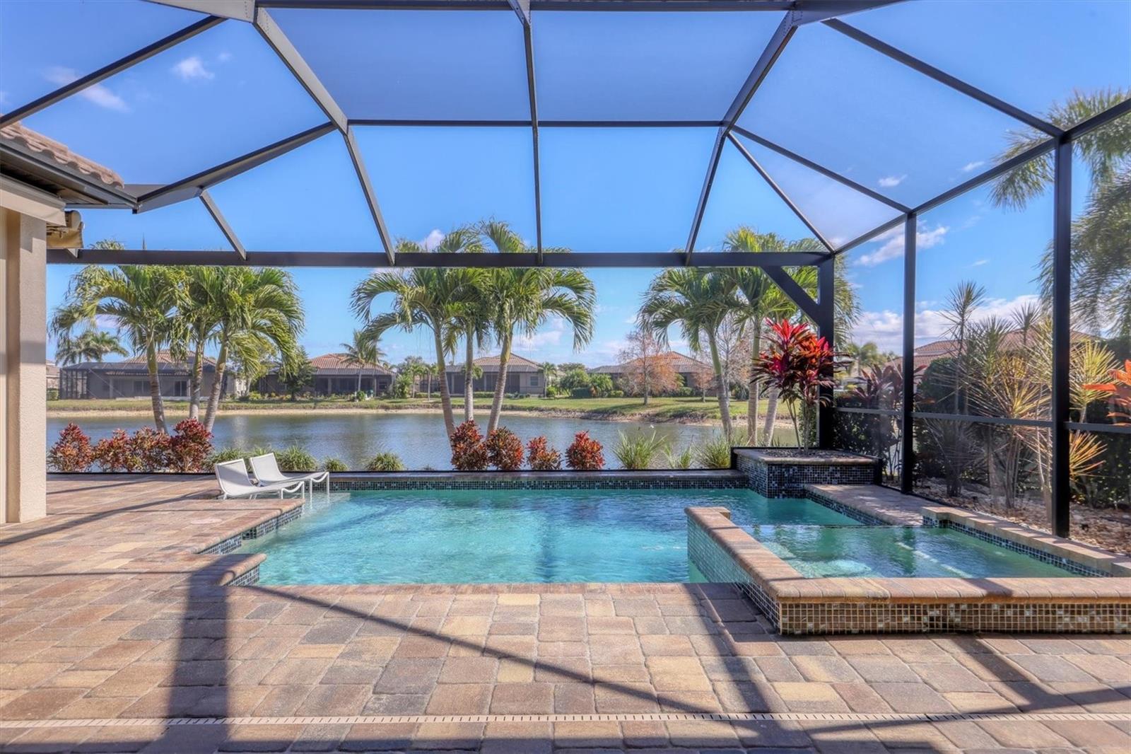 One of the few impeccably enhanced with thoughtful upgrades homes in Gran Paradiso built by Sam Rodgers Homes. The Napoli floorplan offers three bedrooms, three full baths, a flexible den or office with open concept living with a large lanai showcasing the essence of elevated Florida living with serene lake views. Since 2022, the owner has invested extensively in elevating the sophisticated design and function of the home. The kitchen has been beautifully upgraded with custom cabinetry featuring under-cabinet lighting, a GE Profile induction cooktop with designer hood, built-in ovens and a reverse osmosis (R/O) water system. Refined finishes flow seamlessly into the main living areas, complemented by new flooring throughout, updated lighting fixtures, remote-controlled window treatments and custom tray ceilings. The living room is highlighted by triple pocket sliding glass doors, creating a seamless indoor-outdoor connection while framing peaceful lake views. The expansive screened lanai is designed for year-round enjoyment, featuring a panoramic screen enclosure, awnings, and wireless roll-down hurricane shades. The heated pool and spa are powered by propane gas and are conveniently controlled via a Pentair wireless app installed in 2022, offering effortless management at your fingertips. A new (2022) gas pool heater and filter enhance efficiency and performance. New salt chlorinator in November 2025. The updated outdoor fireplace serves as a focal point for outdoor entertaining, while the 250-gallon propane tank also supports the Generac full-house generator, providing comfort and peace of mind. The primary suite is a serene retreat, enhanced by an electric fireplace and a spa-like bath with a luxurious soaking tub, updated glass-enclosed shower and an exceptionally large walk-in closet ideal for showcasing an extensive wardrobe. All baths throughout the home have been upgraded with glass shower doors and updated cabinetry. Additional improvements include new ductwork, dampers, insulation, a whole-house water softener system and modernized remote-controlled window treatments throughout. The garage is equally impressive, offering impact resistant doors, extensive wall-mounted storage cabinetry, shiplap walls for organized tool storage, overhead Hyloft storage, epoxy flooring and attic access with paneled flooring for additional storage. Ask for a complete list of features and upgrades. Residents of Gran Paradiso enjoy an amenity-rich lifestyle with access to a resort-style pool, elegant clubhouse, fitness center, tennis courts, pickleball courts, sauna and more. Ideally just minutes from downtown Wellen Park and its vibrant dining and shopping destinations, with easy access to Venice Beach, Manasota Beach and downtown Venice, this exceptional home offers a refined Florida lifestyle defined by luxury, comfort and location.