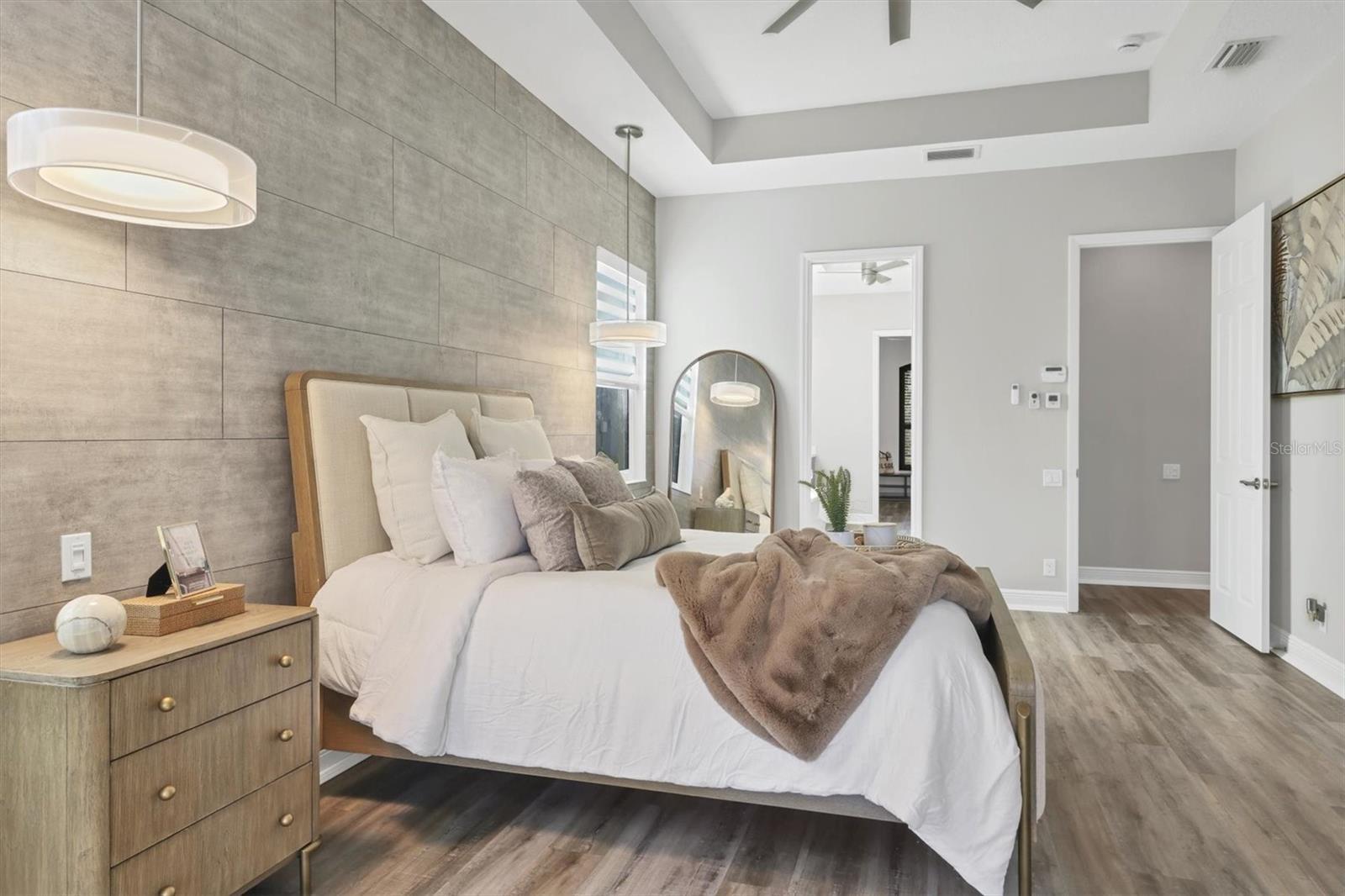 - Ceiling Fans(s), High Ceilings, Kitchen/Family Room Combo, Open Floorplan, Split Bedroom, Tray Ceiling(s), Walk-In Closet(s), Window Treatments
