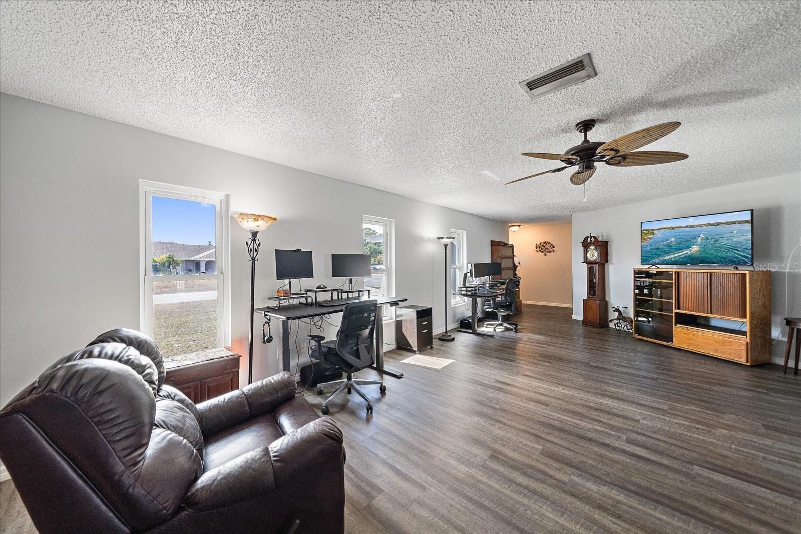 Welcome to this spacious and energy-efficient five-bedroom, two-bath home, ideally located near Red Bug Slough Preserve, a beautiful, dog-friendly, Gulf Coast nature oasis. Enjoy peace of mind and potential insurance savings with hurricane impact windows installed throughout, and take advantage of solar power with an average electric bill of approximately $30/month. This home offers a rare combination of storm protection, low monthly utility costs, and an unbeatable location—just minutes from nature trails, shopping, dining, Siesta Key’s world-famous beaches, and everyday conveniences. This well-maintained property features hurricane impact windows installed in 2021, along with a hurricane-impact front door, providing added safety and durability. The roof was replaced in 2014, and the AC system was installed in 2017 and regularly maintained, ensuring year-round comfort. Inside, enjoy LVP flooring installed in 2021, a modern and durable choice ideal for busy households. The interior and exterior were freshly painted in 2025, creating a clean, move-in-ready feel. All interior ceiling fans have 30-year warranties, while exterior fans carry a 50-year warranty, offering long-term reliability. Energy efficiency truly sets this home apart. A solar panel system installed in March 2023 keeps electric costs impressively low, rarely exceeding $50 even during peak summer months. A water system that has water purification and softener adds comfort and long-term value. The backyard is designed for both relaxation and functionality, featuring a Kevlar hurricane panels for the lanai rated up to 190 MPH winds. One side of the property has shell installed for RV, camper, or boat parking, providing exceptional flexibility. Two storage sheds ample space for tools, equipment, or seasonal storage. The 8x25 garage has been converted into a workshop and storage space. This Sarasota home delivers the perfect blend of space, efficiency, durability, and Florida lifestyle living—a truly rare find. No HOA, no deed restrictions and no CDD.