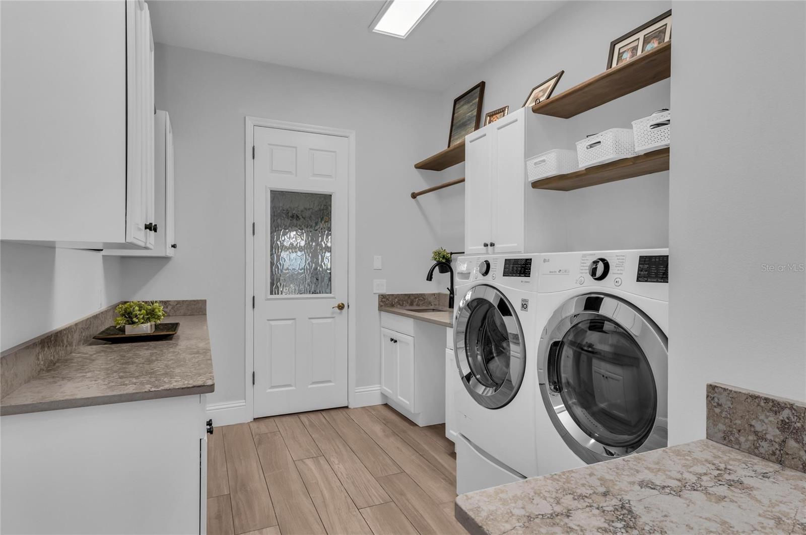 Thoughtfully & extensively renovated, this pristine home features a desirable split floor plan with 3 beds, 2.5 baths a dedicated office, & a versatile bonus room-all perfectly oriented to capture unparalleled lakefront views & breathtaking sunsets. Step inside to an inviting great room – with a stunning linear stacked stone fireplace, effortlessly warming the expansive living area with the touch of a button. Seamlessly flowing from here is the elegant dining room, highlighted by custom built-in cabinets, sophisticated walnut feature wall that adds warmth & texture. The chef's kitchen is a masterpiece of custom design - stunning cabinetry handcrafted & installed by IB Furniture of Sarasota - soft-close doors with rich walnut interiors & brushed brass hardware. A dramatic quartz waterfall center island anchors the space, complemented by premium appliances & elegantly paneled in custom wood. Adjacent, a coffee/wine bar glows with integrated lighting & includes a built-in Perlick refrigerator for ultimate convenience. Retreat to the serene primary suite, complete with his-and-hers walk-in closets - custom built-in storage & shelving for effortless organization. The spa-like primary bath elevates everyday indulgence with walnut cabinetry, brushed nickel hardware, Corian, a fully tiled walk-in shower, & a striking freestanding tub. The full guest bath impresses with double floating vanities, quartz counters, Kohler Purist fixtures, & a spacious fully tiled walk-in shower. Pool half-bath features a unique live-edge vanity & a custom tiled feature wall, blending rustic charm with modern elegance. A dedicated office/study (in front) provides a quiet, productive haven, while the bonus room (in back) - offers endless possibilities as a media room/gym, or guest retreat. Fully pocketing sliders lead from the great room to the lanai. This home truly shines outdoors, where an exceptional resort-inspired paradise awaits on an oversized lot with lush landscaping for complete privacy. Breathtaking 2021 lagoon-style pool by Anchor, featuring a soothing tropical spa & cascading waterfall. 40+ ft travertine lanai extends the living space, complete with gas tiki torches, a custom gas fire table & a fully equipped outdoor kitchen. Marvelous lighted plant-wall too. Clear-view screening frames tranquil lake vistas & spectacular sunsets, while extensive landscape lighting transforms evenings into magical, sparkling entertainments - ideal for lavish gatherings or peaceful relaxation. Fresh modernizations, featuring a 2025 dual-zone HVAC & newly installed paver driveway - and thoughtful details throughout that reflect meticulous care. This Peregrine masterpiece showcases the signature enduring craftsmanship synonymous with the builder, wrapped in the serenity of one of Southwest Florida’s most sought-after golf communities. This home delivers the perfect blend of distinction, comfort, & resort-style living…perfect home for entertaining. LWR CC offers optional memberships with access to 4 championship golf courses, 3 elegant clubhouses, 20 lighted tennis courts, pickleball courts, a state-of-the-art athletic center, an Olympic-sized pool with lap lanes, volleyball & basketball courts, a playground, & more - creating an unparalleled lifestyle. Enjoy new restaurants & shopping options nearby, proximity to LWR Hospital, easy I-75 access, and world-class beaches. Come experience the Florida dream you've always envisioned—where every day feels like a vacation.
