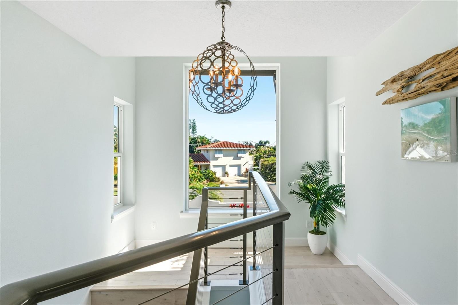 Experience refined waterfront living in this thoughtfully updated, move-in-ready residence sold furnished, ideally located West of the Trail, just minutes from shopping, dining, and the world-renowned Siesta Key Beach. Positioned at the end of a quiet cul-de-sac and only two lots from open bay, this property offers sweeping water views and sunset backdrops. The interior is filled with natural light, with impact-rated windows and sliding glass doors throughout the residence. Neutral coastal finishes including whitewashed oak flooring, porcelain tile, custom cabinetry, and a striking steel-and-cable stair railing creates a modern yet timeless aesthetic throughout the home. The kitchen serves as the heart of the home, featuring quartz countertops, gas range, an oversized island, and a custom stainless steel and glass hood perfectly suited for everyday living and entertaining. Adjacent living and dining spaces are anchored by a stacked-stone gas fireplace and open directly to a waterfront terrace. The main living area includes a primary suite along with two additional bedrooms and baths, all conveniently accessible by both a staircase and two-stop elevator. A third-floor loft offers flexible living or guest accommodations, complete with a wet bar and an expansive deck. The ground level provides a generous bonus space, dual two-car garages, and the perfect outdoor retreat featuring a summer kitchen, pool, and fire pit. Recent upgrades include new pool equipment, refreshed landscaping and fencing and a renovated dock equipped with a 20,000-lb boat lift. An exceptional waterfront setting and desirable location makes this residence a rare opportunity to enjoy the best of coastal living in Sarasota.