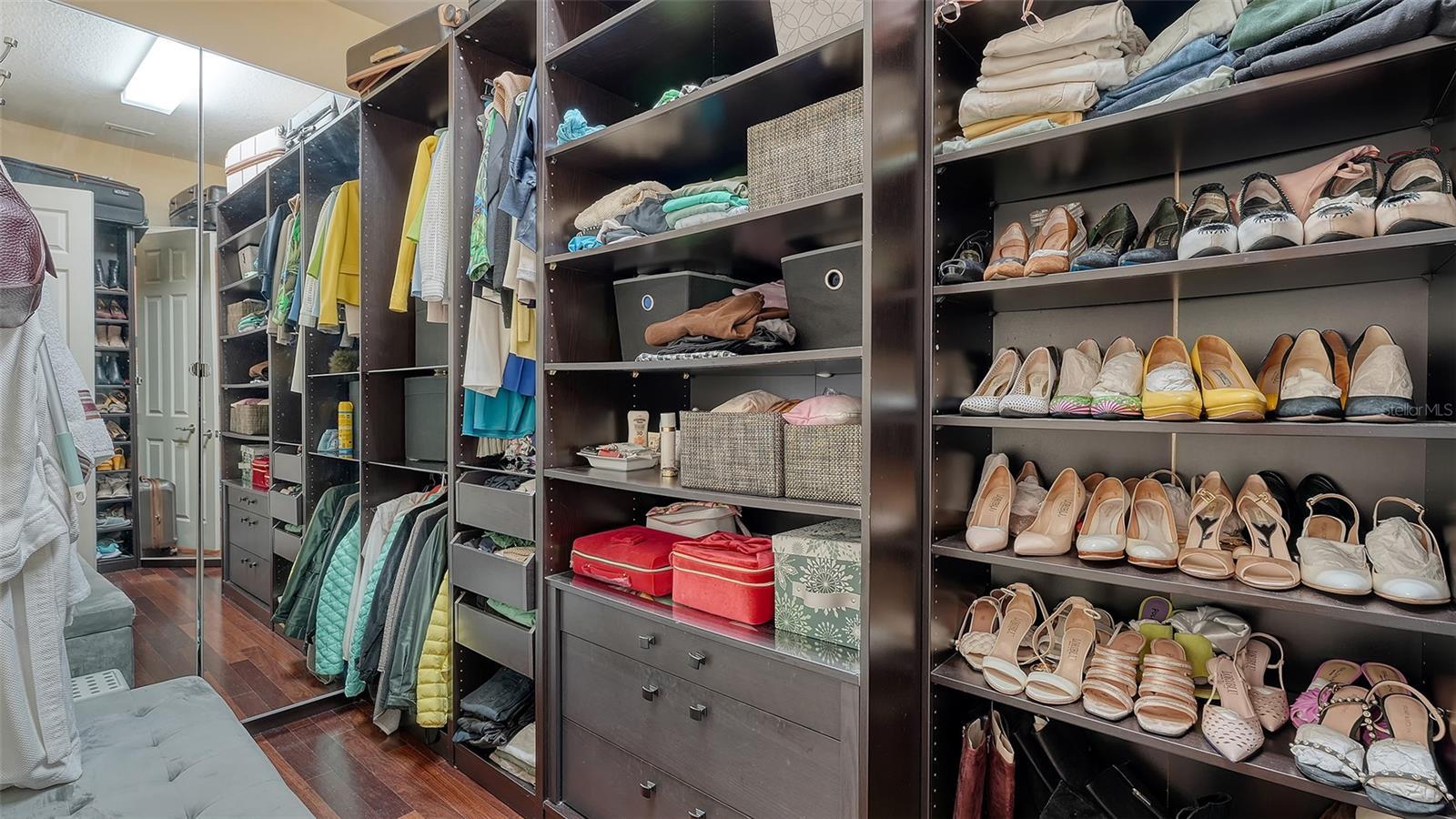 - Crown Molding, Eat-in Kitchen, High Ceilings, Kitchen/Family Room Combo, Primary Bedroom Main Floor, Solid Wood Cabinets, Stone Counters, Thermostat, Tray Ceiling(s), Walk-In Closet(s), Window Treatments
