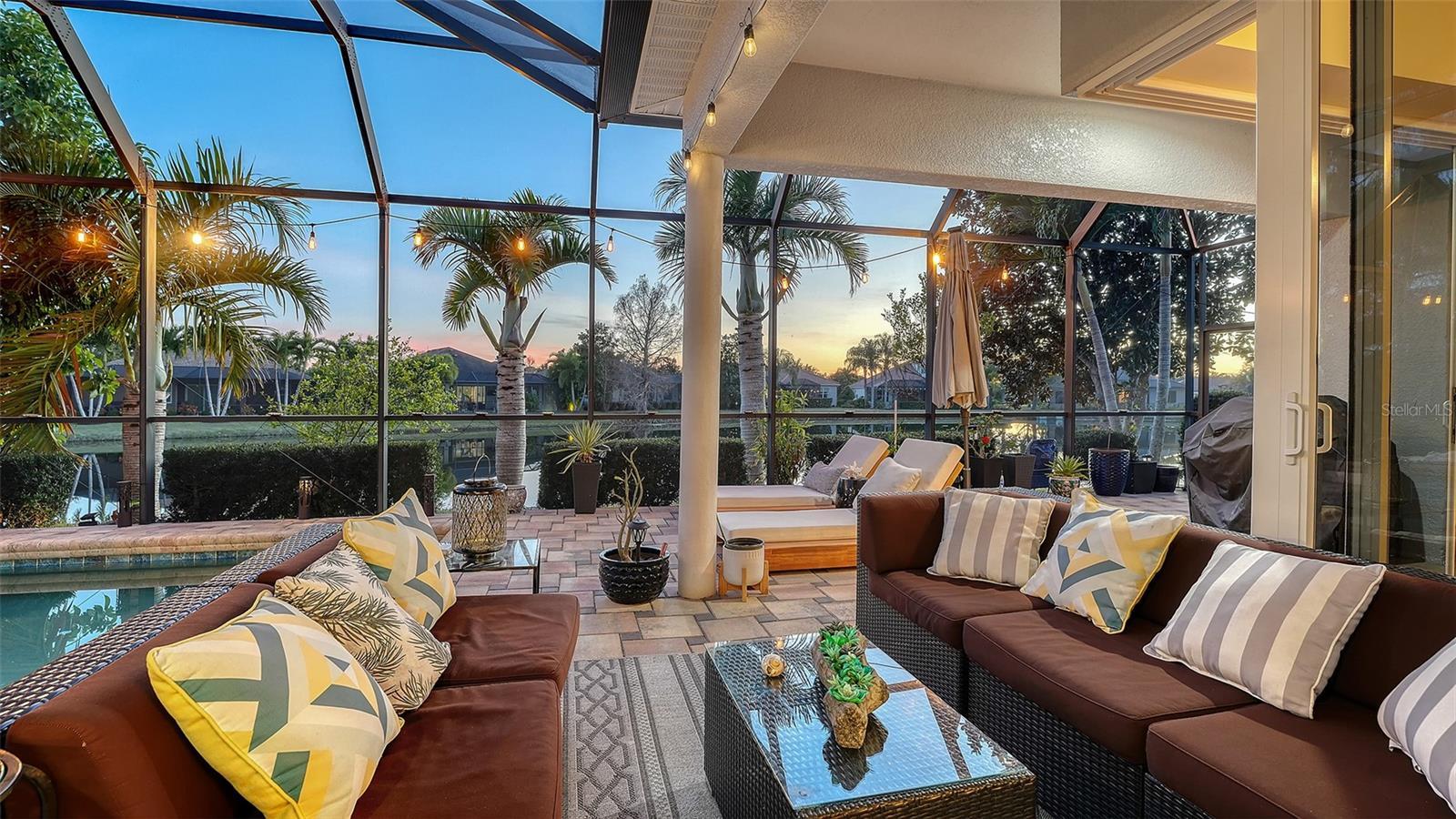 CUSTOM LEE WETHERINGTON WATERFRONT ESTATE IN GREENBROOK. New Roof, New Gutters and New Exterior Paint 2 years ago! Discover the difference of CUSTOM Build Quality in this stunning Lee Wetherington Masterpiece in the centrally located Lakewood Ranch village of Greenbrook. Perfectly positioned on a Premium WATERFRONT lot, this home Impresses Immediately with Mature Landscaping and Exceptional Curb Appeal. Inside, the Attention to Detail is undeniable. The Spacious Floor Plan features 4 bedrooms and 3 full baths, highlighted by intricate custom lighted tray ceilings in both the Great Room and the Primary Suite, creating an ambiance of sophisticated elegance. Designed for the Florida lifestyle, multiple sets of sliding glass doors vanish to reveal an expansive outdoor oasis. The OVERSIZED LANAI and sparkling pool offer sweeping views of the water, providing the Perfect Backdrop for Entertaining or Relaxing in Total Privacy. Complete with a rare 3-car garage for all your storage and toy needs, this home offers the perfect blend of luxury and functionality.