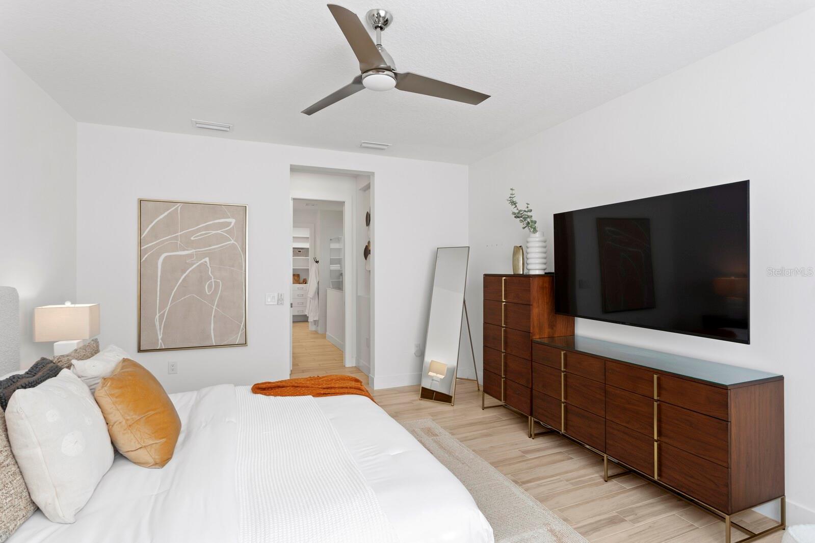 - Ceiling Fans(s), High Ceilings, In Wall Pest System, Kitchen/Family Room Combo, Solid Surface Counters, Solid Wood Cabinets, Split Bedroom, Stone Counters, Vaulted Ceiling(s), Walk-In Closet(s)