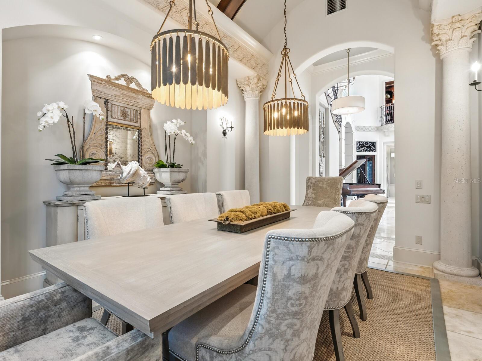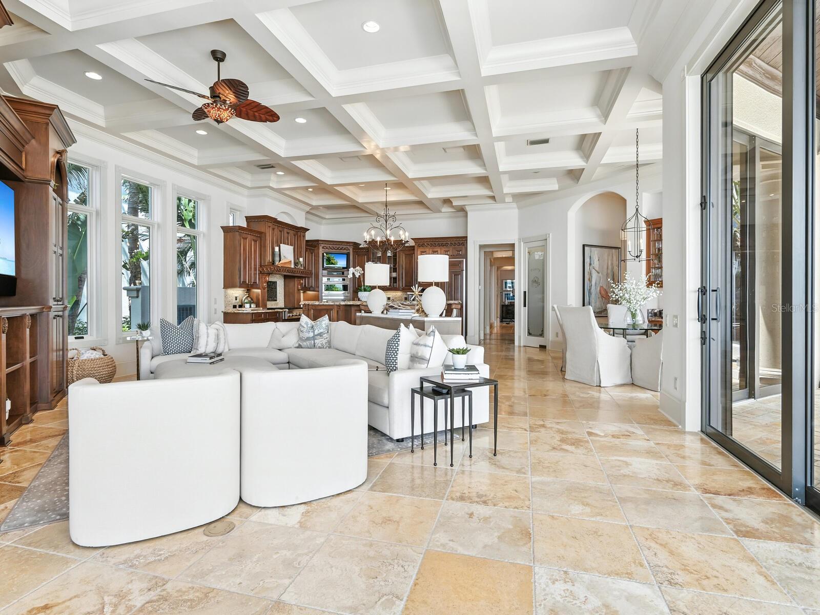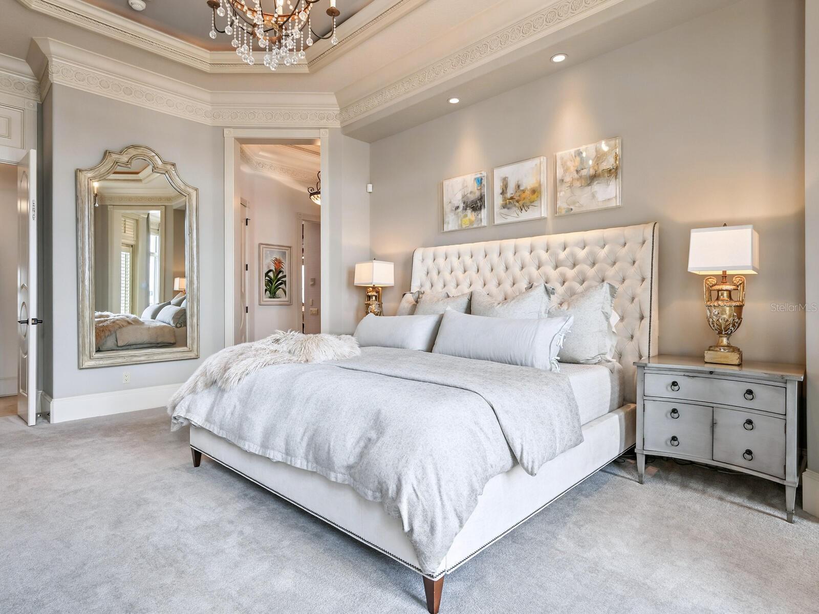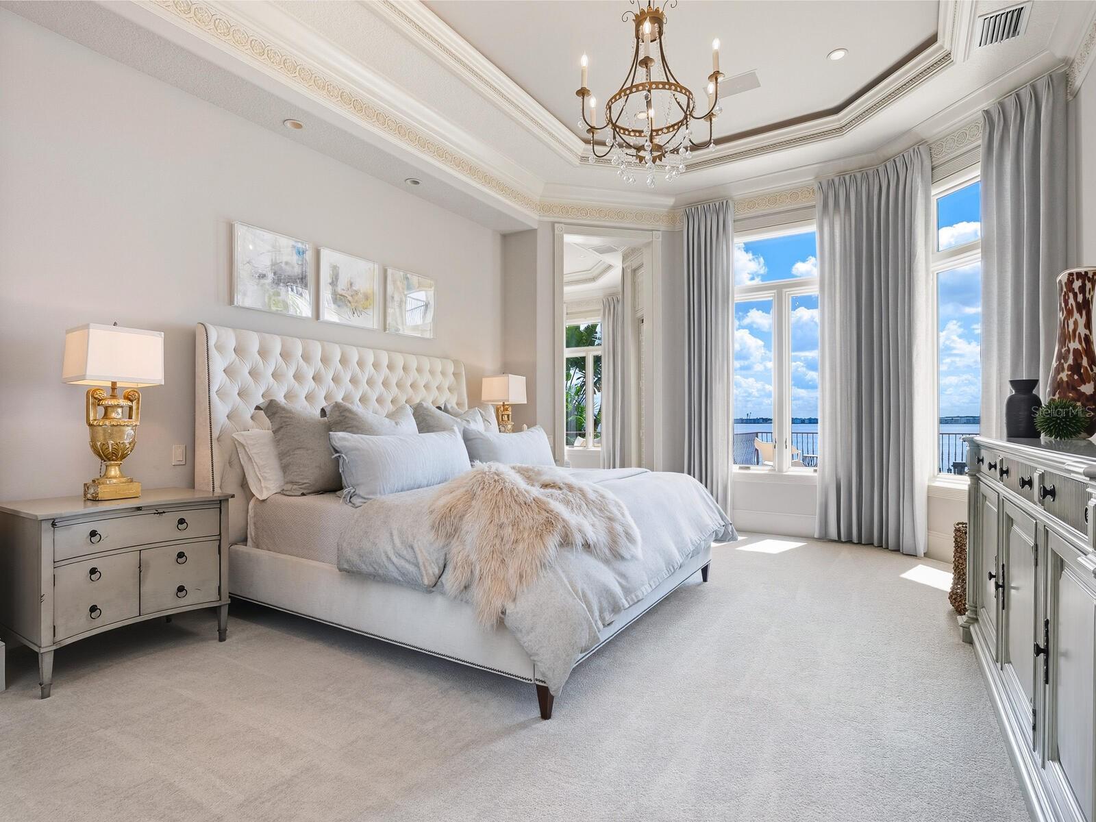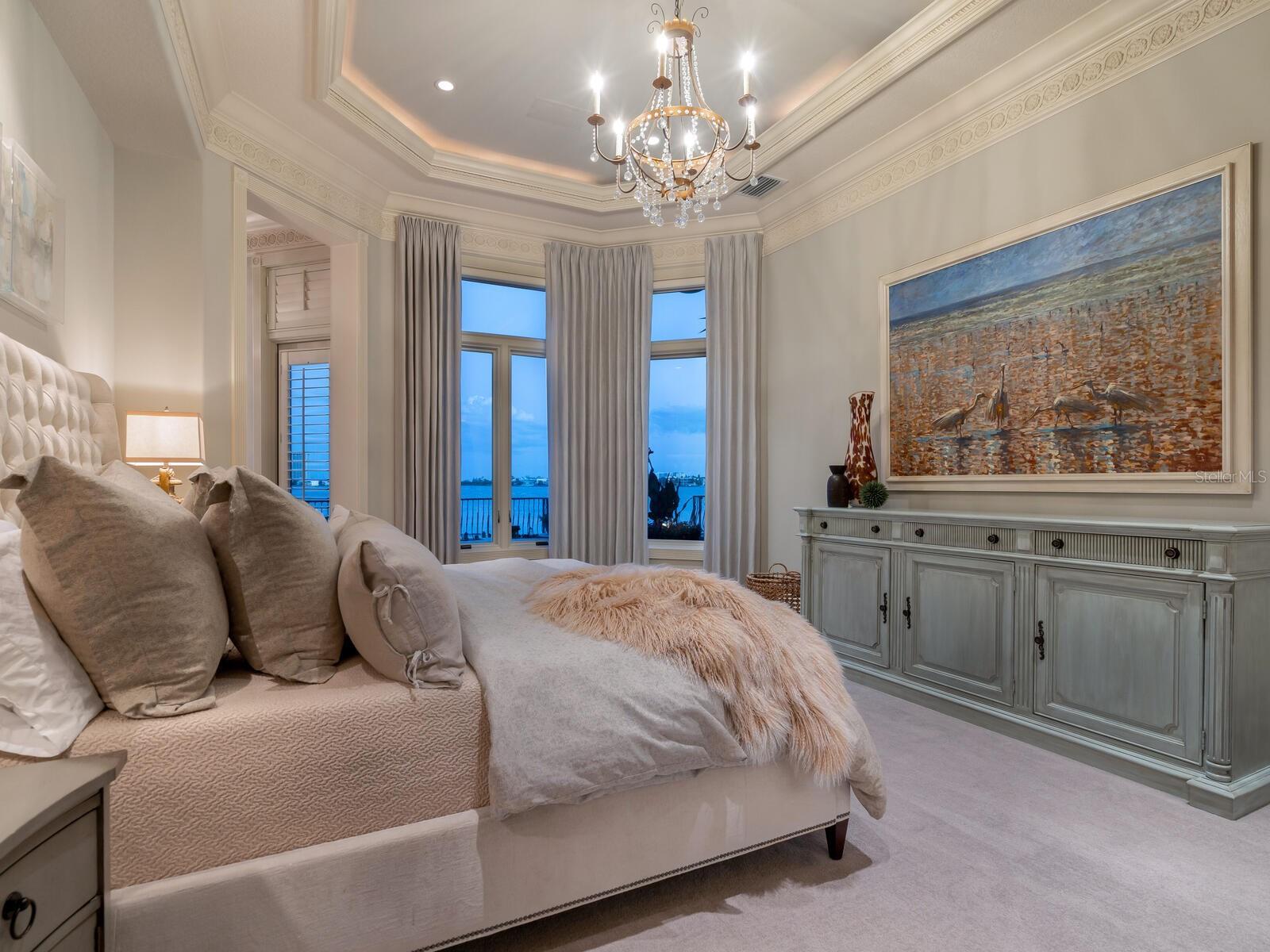 Live your luxury at Casa Lido, a spectacular waterfront estate in the coveted enclave of Lido Shores, offering sweeping, unobstructed views across Sarasota Bay to downtown Sarasota and the iconic Ringling Bridge, while having private beach access. This is a rare opportunity to own a residence of extraordinary scale, presence, and craftsmanship—where every detail has been custom designed and executed at the highest level. A private, gated drive leads to a dramatic custom arched wooden double door entry opening to a two-story grand foyer, setting the tone for the home’s impressive proportions and architectural sophistication. Soaring ceilings, refined millwork, curated chandeliers, and walls of glass frame the open bay views, while electric screens allow you to enjoy uninterrupted vistas throughout the day without sacrificing comfort or privacy. Spanning an exceptional amount of square footage, the residence offers five bedrooms, five full baths, four half baths, and a thoughtfully designed layout that balances grandeur with livability. Two dedicated office spaces include a stunning wood-paneled office with a spiral staircase leading to a second-story library, complete with custom bookcases and a charming tucked-away nook—perfect as a child’s hideaway or creative retreat. The first-floor primary suite is a true sanctuary, featuring oversized dual walk-in closets and a spa-inspired bath designed for effortless daily living. Wake each morning to tranquil water views and the gentle rhythm of the bay. An additional private office adjoining the suite offers an inspiring workspace with panoramic scenery. Designed for entertaining at every scale, the chef’s kitchen is anchored by premium appliances, an expansive island, a Butler’s pantry, dual dishwashers, and seamless flow into the family room. Pocketing sliders open to the outdoor living areas, blurring the line between indoors and out. Wellness and leisure are elevated throughout the home, including a private gym with sauna, a temperature-controlled wine room and storage, and a fully equipped entertainment room with theater seating, wet and dry bars, and game space. Upstairs, spacious guest suites enjoy refined finishes and access to wraparound balconies with a gas fireplace—ideal for sunset views over the water. Guests will appreciate the separate guesthouse, featuring a private entrance, living area, kitchenette, dedicated laundry, ensuite bath, and serene water views—perfect for extended stays or multigenerational living. Outdoors, the estate continues to impress with upper and lower resort-style pools, a fire pit, outdoor kitchen, and multiple spaces for dining and relaxation. Boating enthusiasts will enjoy direct bay access from the private dock, complete with lifts and accommodations for watercraft and paddleboards. Every space in Casa Lido is oversized, intentional, and undeniably grand—a home that must be experienced in person to fully appreciate its scale, finishes, and commanding presence. Just minutes from St. Armand's Circle, world-class beaches, and downtown Sarasota, this is waterfront living without compromise.