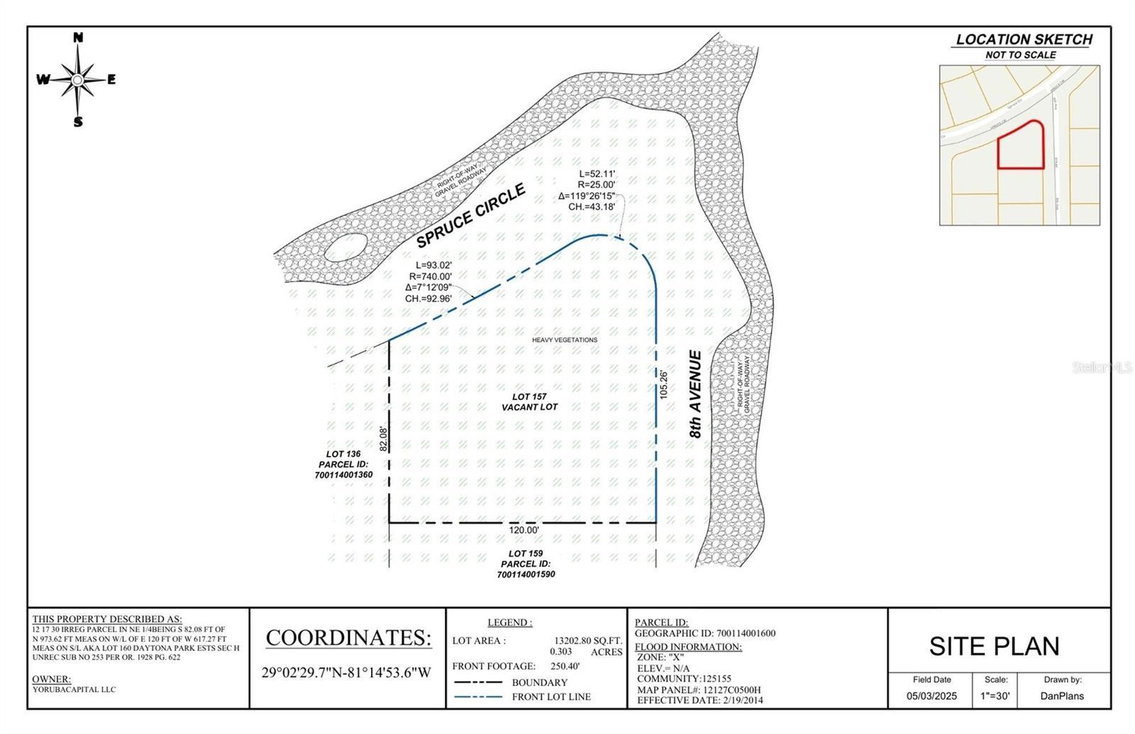 Lot in Daytona Park Estates Spacious .303-acre lot (Lot 160, Sec H) in Daytona Park Estates, Volusia County. Measuring approximately 120' x 82', this parcel offers a prime opportunity for residential development or investment. Located in an unrecorded subdivision, buyers are advised to verify zoning, utilities, and buildability with the county. Conveniently located near downtown DeLand and a short drive to the coast.