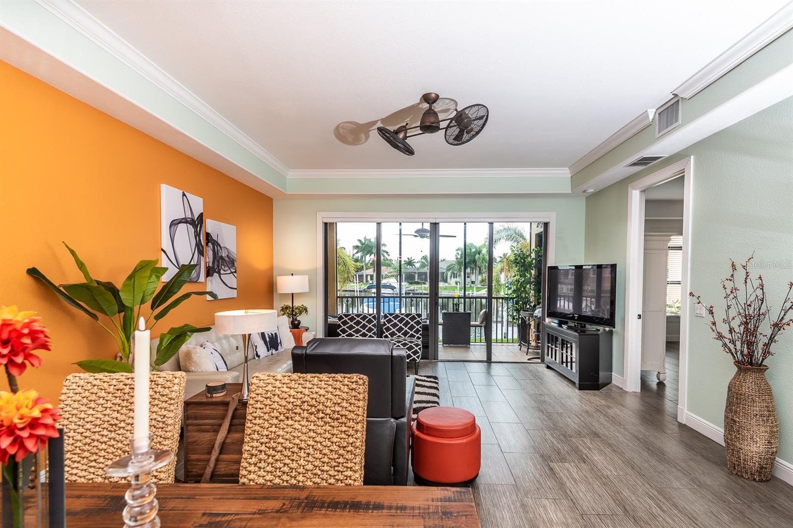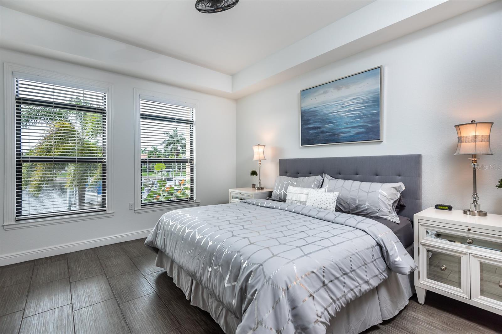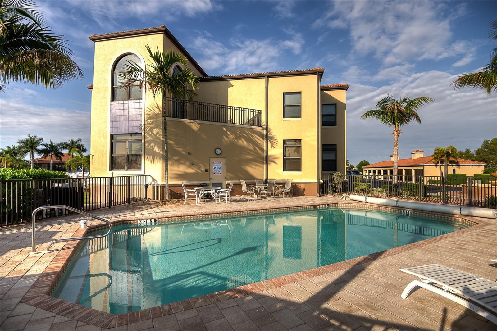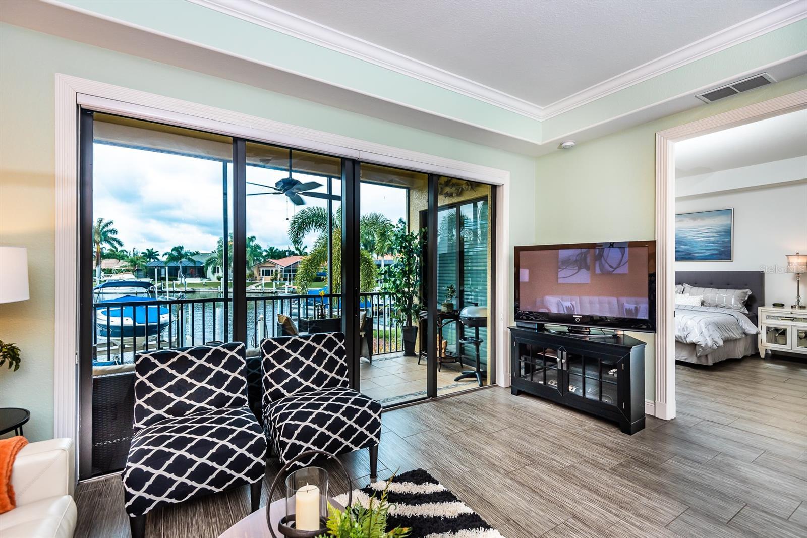 OFF-SEASON / SHORT TERM RENTAL". Seasonal Rate is $4,500 per month plus tax. Enjoy your Florida stay in this luxurious, totally updated ground floor condo in Grand Bay of Punta Gorda Isles with a fantastic view of Sailboat Turning Basin. High ceilings, Granite counters, Wood cabinets, covered parking with storage space. Deeded dock #1 for larger boat and Sailboat access to Charlotte Harbor. Elegantly furnished. Expanded kitchen with breakfast nook and snack bar. Separate laundry room. Screened tiled lanai with a panoramic view and a heated pool also overlooks the water. The Lanai has a desirable Eastern exposure which gives morning sun and afternoon shade for your Maximum comfort. 12% taxes apply for all rentals of 6 months or less.