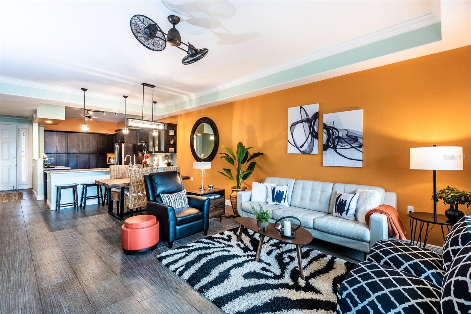 - Ceiling Fans(s), High Ceilings, Living Room/Dining Room Combo, Open Floorplan, Solid Wood Cabinets, Stone Counters, Thermostat, Walk-In Closet(s), Window Treatments