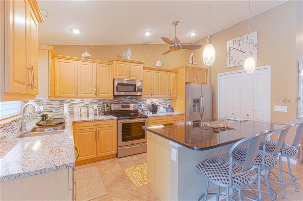 This stunning home provides the perfect backdrop for your next vacation to beautiful Englewood, FL. Follow the sunshine & salty air & arrive at a destination that is meticulously maintained both inside & out. Modern facade & front sitting area welcome you to your home away from home. Natural light flows through the glass plated door & enhances this well appointed floor plan. An entertainer's delight. Whether you are cooking for one or ten, the chef in the group is certain to appreciate this fully upgraded, open concept kitchen stocked with all the needed conveniences. Start the day brewing coffee in the Keurig & end the day sharing a bottle of chilled Pinot from your wine fridge. Kitchen is the hub of the home as your guests gather around the dining room table with seating for ten or casually chatting at the breakfast bar. Open the sliders & the party extends outdoors. Gorgeous, paved lanai with space for those who love to soak up the rays & those who prefer the shade. Heated,salt water pool. After a hard day of play, settle into the master suite for a peaceful slumber in the king sized bed. Master split from guest bedrooms for privacy & seclusion. First guest bedroom features queen sized accommodations and bedroom three offers two, single beds. Grab the cooler & chairs from the garage & it is just a 7 mile drive to beautiful white sand beaches of the Gulf. Unique shopping & dining experiences about. A place where memories are made. Contact for available rental dates.