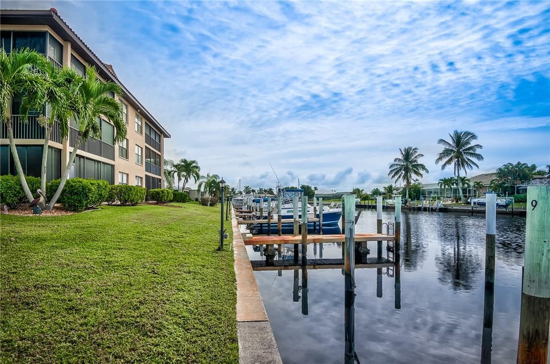 OFF-SEASON / SHORT TERM RENTAL. SEASONAL RATE $4,000. Prime sailboat location with 10 min access to the harbor. This much sought-after ground floor 2-bedroom, 2-bath Dolphin Club condominium comes with an assigned parking space, outside storage closet and an assigned boat dock. This turnkey furnished unit has been updated with plank tile flooring throughout, granite countertops and wood cabinetry. Elegantly furnished unit with TV in both bedrooms and living room. Screened lanai has views of the canal. Proximity to Ponce de Leon Park, the shops of Fisherman’s Village, Gilchrist Park and the charm of Punta Gorda’s historic downtown and its host of restaurants and harbor front walking / biking trails and parks. Call today for a tour. 12% tax apply for all rentals 6 months or less.