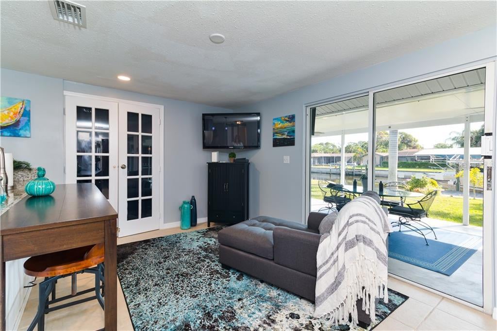 Calling all anglers, boaters and water enthusiasts alike, here is the perfect vacation home for you. Whether you are looking for an extended visit, long weekend or just a staycation; this modern space with coastal chic décor provides the perfect backdrop. Bring along the boat or jet ski and tie up in your own backyard. Imagine the convenience of waking up and heading right out on the water. The Ackerman Waterway is a deep, wide saltwater canal that is a scenic 20 minute cruise to the open waters of Charlotte Harbor. The Harbor is fertile with Snook, Redfish, Tarpon, Grouper and a host of other opportunities. Venture out for date night, dock and dine in historic downtown Punta Gorda. Many unique shopping, dining and entertainment opportunities right at hand. If you do not have a vessel to bring, a two person kayak and all the needed gear is provided for your adventures. Water and power at the dock and a couple of fishing poles to borrow. The interior has earned well deserved bragging rights. The space is tastefully upgraded and illuminates with natural light. The home is well stocked with all the comforts of home plus some awesome extras. The Owner has put together a coffee bar that even the most discerning barista would appreciate. The kitchen is open and serves as the hub of the space where you will gather and get catch up with one another while preparing dinner. Seating for 4 at both the inside and outside tables. Many evenings will be spent outdoors taking in the magnificent sunsets. Fire up the propane grill for easy clean up. Challenge your friends to a friendly game of cornhole. The home is WI-FI enabled with cable television in the living room, sitting room, bedrooms and lanai. The master suite offers Queen sized bedding and a comfortable mattress for a peaceful night’s slumber. Hit the coffee bar, throw open the French doors of the master and enjoy your breakfast on the enclosed lanai looking out to the water where Mother Nature puts on a show. Sightings of manatee, otters and variety of birds is common. In fact, you may just have a feathery friend come knocking on the sliders to say hello. Queen sized accommodations in the guest room that are equally as inviting. The convenience of large capacity washer and dryer. The beautiful beaches of Manasota Key are a mere 20 minute car ride away. This a place to kick off your shoes, let your hair down and relax for as long as the schedule allows. Here you will create many lasting memories and will be a home you will find yourself being drawn back to year after year.