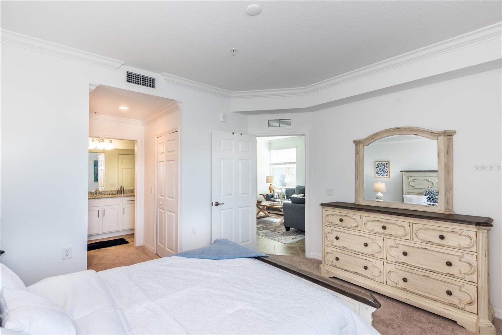 - Crown Molding, High Ceilings, Open Floorplan, Solid Wood Cabinets, Thermostat, Tray Ceiling(s), Walk-In Closet(s), Window Treatments