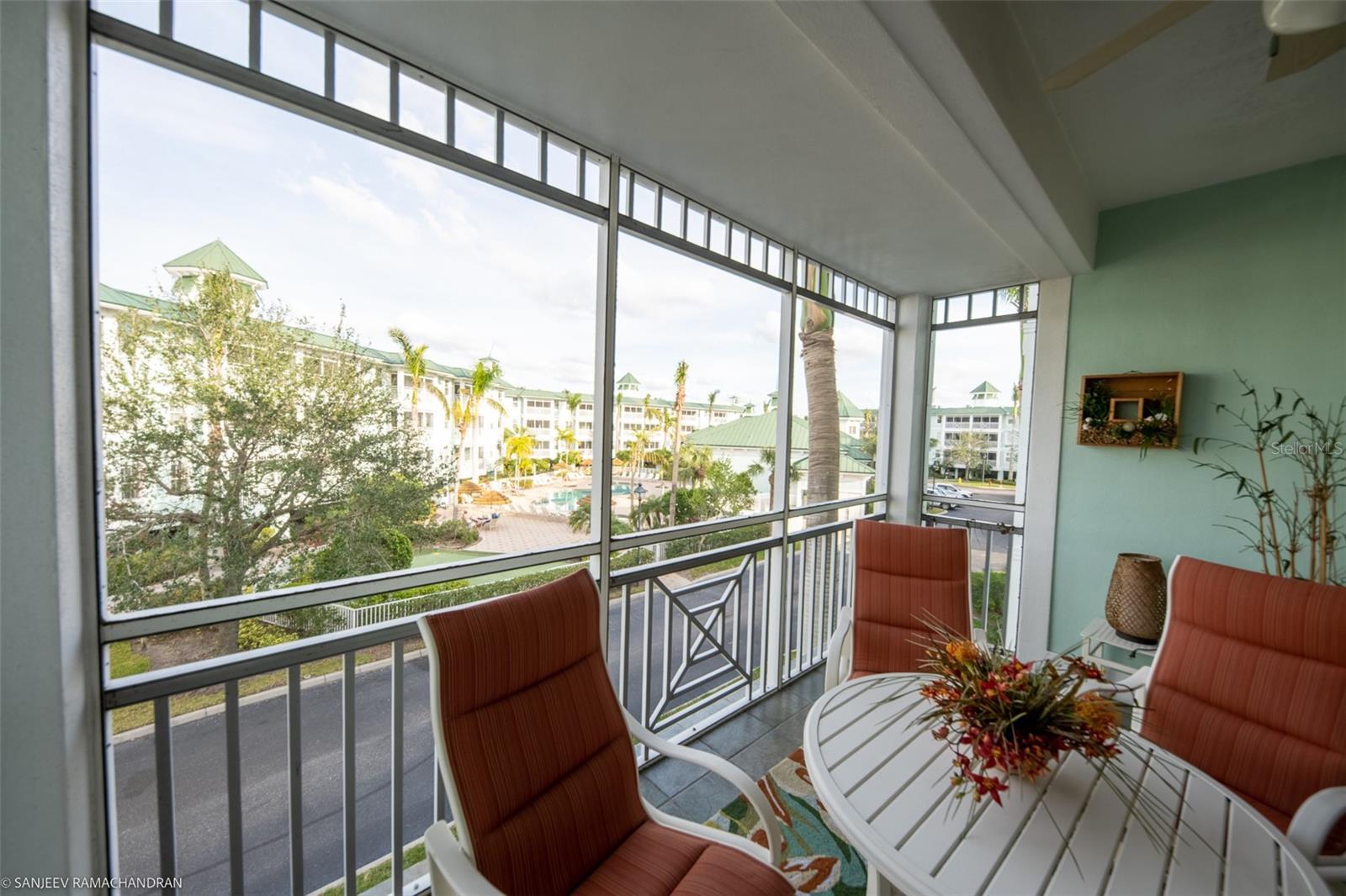 FURNISHED OFF SEASONAL / SHORT-TERM RENTAL. AVAILABLE APRIL 01, 26. TURNKEY FURNISHED 3rd floor end unit condo has just over 1800 square feet of air-conditioned living space which includes 3 large bedrooms, 2.5 baths and 2 screened lanais, one of which overlooks the resort pool area. One of the bedrooms is furnished as den. This very elegantly furnished unit has an open great room design. Kitchen is spacious and modern with solid surface counters and stainless appliances. Generous master suite offers tray ceiling, access to lanai, separate sitting area and private ensuite with walk-in closet, dual sinks, soaking tub and walk in shower. Amenities include clubhouse with fitness room, meeting room with bar, billiard table and library, heated swimming pool and spa and putting green. Community hosts many social activities to enjoy with your neighbors. Great location minutes from Charlotte Harbor, boating, fishing and historic downtown Punta Gorda.