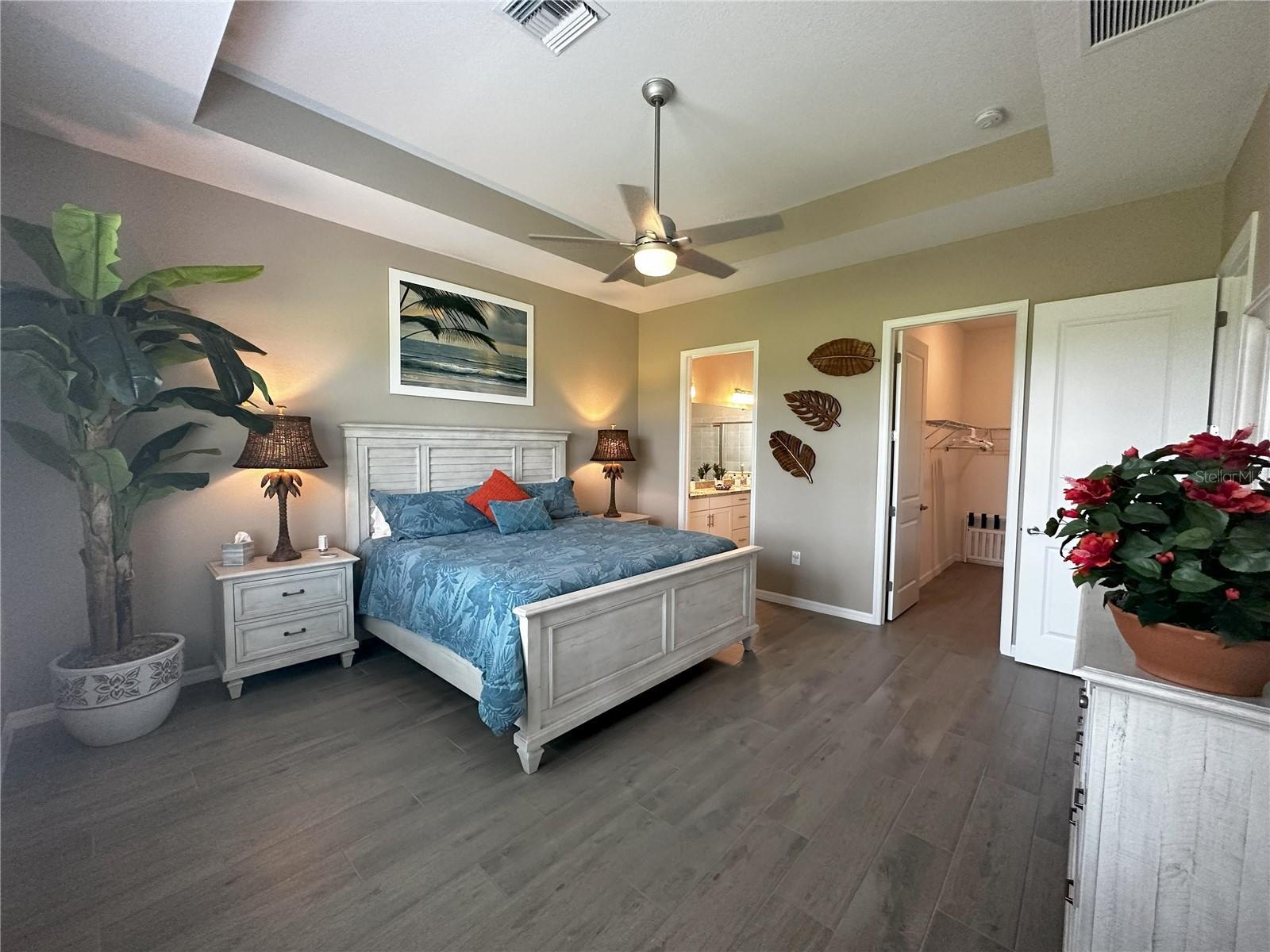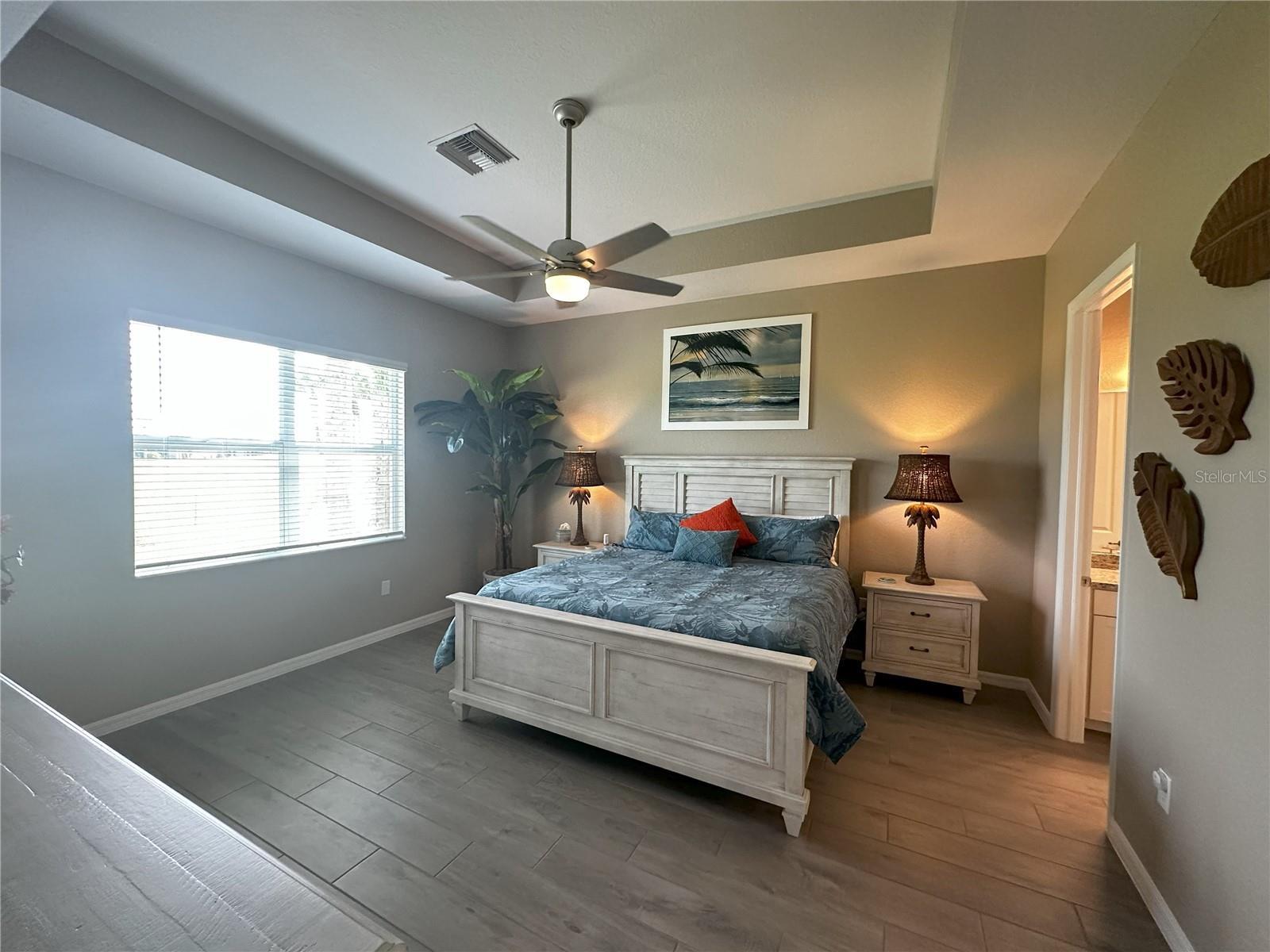 - Eat-in Kitchen, High Ceilings, Kitchen/Family Room Combo, Primary Bedroom Main Floor, Split Bedroom, Stone Counters, Tray Ceiling(s), Walk-In Closet(s)