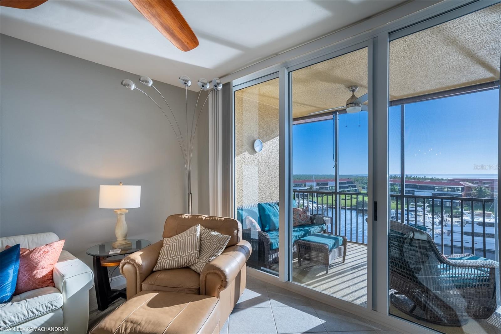 SEASONAL / OFF- SEASON RENTAL. Available at off-season rate of $4,000 per month till November 2024 . Rented for 2025 season. Escape to a waterfront paradise with our turnkey furnished seasonal rental at Prosperity Point in Burnt Store Marina. This exquisite 3-bedroom, 2-bathroom condo on the fourth floor offers unparalleled luxury and breathtaking views of Charlotte Harbor and Boca Grande Pass. The spacious interior features high tray ceilings, neutral tile floors, and a thoughtfully designed layout for privacy and comfort. 3rd bedroom converted as den. Step into a chef's dream with the well-appointed kitchen adorned with a beautiful ceramic backsplash, seamlessly flowing into the naturally lit living room. A built-in wet bar adds a touch of sophistication. The true allure lies in the expansive lanai and terrace deck, providing an ever-changing panorama of Burnt Store Marina's vibrant harbor activities. Residents enjoy access to lavish amenities at Grande Isles Towers, including a pool, spa, fitness center, sauna, steam room, clubhouse, and movie theater. Under-building parking ensures convenience and security. Burnt Store Marina offers additional amenities like a 27-hole golf course, tennis courts, fitness center, deli/market, and Yacht & Activity clubs. Discover the largest deep-water marina in Southwest Florida, with two on-site restaurants, Cass Cay and the Links Café. Boating enthusiasts can reach the renowned Boca Grande Pass in just a 10-mile boat ride. Live the dream waterfront lifestyle in Punta Gorda, where luxury, amenities, and a vibrant boating community converge. Your Southwest Florida sanctuary awaits. 12% tax apply for all rentals 6 months or less.