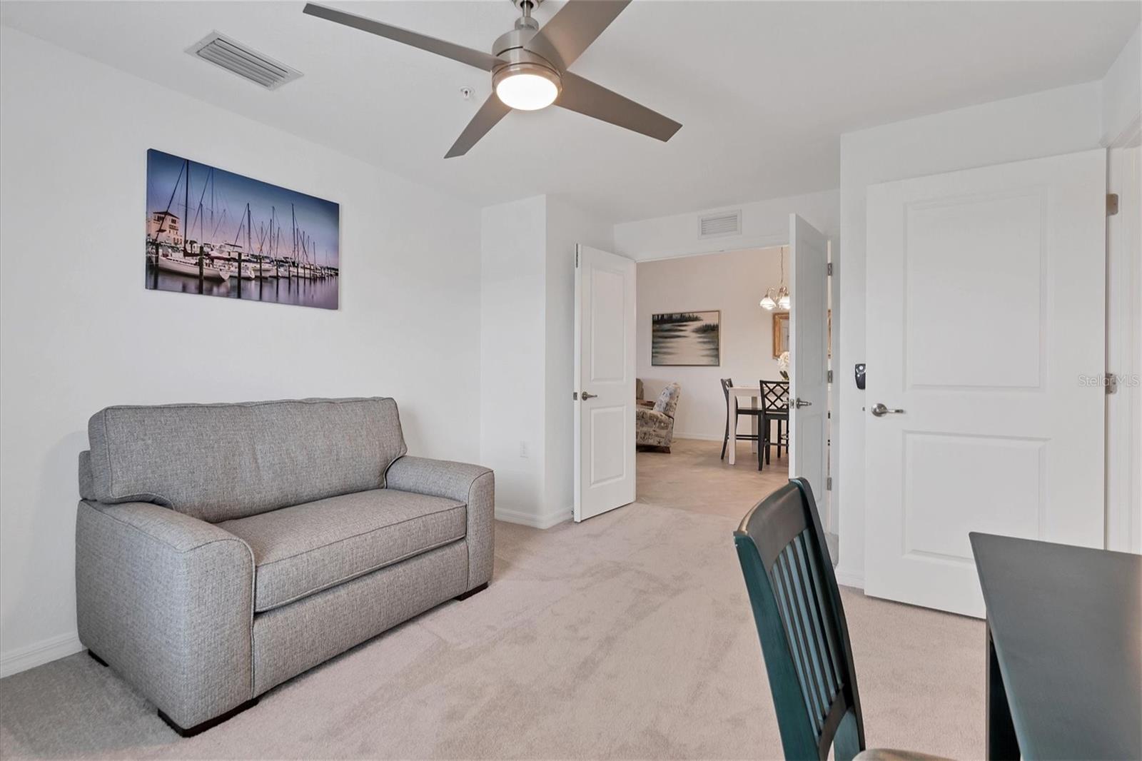 VACATION AT IT'S FINEST!!! TURNKEY FURNISHED!! GOLF MEMERBSHIP INCLUDED!! Luxury 2 Bedroom + Den, 2 Bath, 1 car garage veranda located at Heritage Landing Golf & Country Club!! Tons of great features including designer furnishings and lighting, stone counters, large tile on diagonal, a full-sized washer and dryer and a detached garage with driveway. This is the BEST floorplan to enjoy the Florida weather - Outdoor living is elevated with two screened-in lanais that provide serene lake views, ideal for relaxation or entertaining guests. Natural light pours in, accentuated by the additional windows exclusive to this end unit. This home is ideally located just steps from one of the 4 community satellite pools. Transfer of membership includes full use of resort style amenities such as guard-gated entry, Gordon Lewis Championship 18-Hole Golf Course, aqua driving range, chipping & putting green, resort style pool w dedicated lap lanes, Pool cafe offering full bar & menu, state of the art fitness center, separate aerobics room, full-service spa, men's and women's saunas, 6 har tru tennis courts, 6 pickleball courts, 2 bocce courts & more! Enjoy additional fine dining in the BRAND NEW clubhouse! This stunning community offers an amazing location just off Burnt Store Road, offering quick & easy access to Downtown Punta Gorda, Punta Gorda Airport, Fort Myers, Cape Coral & More! (Please note rental price varies depending on months and length of lease)