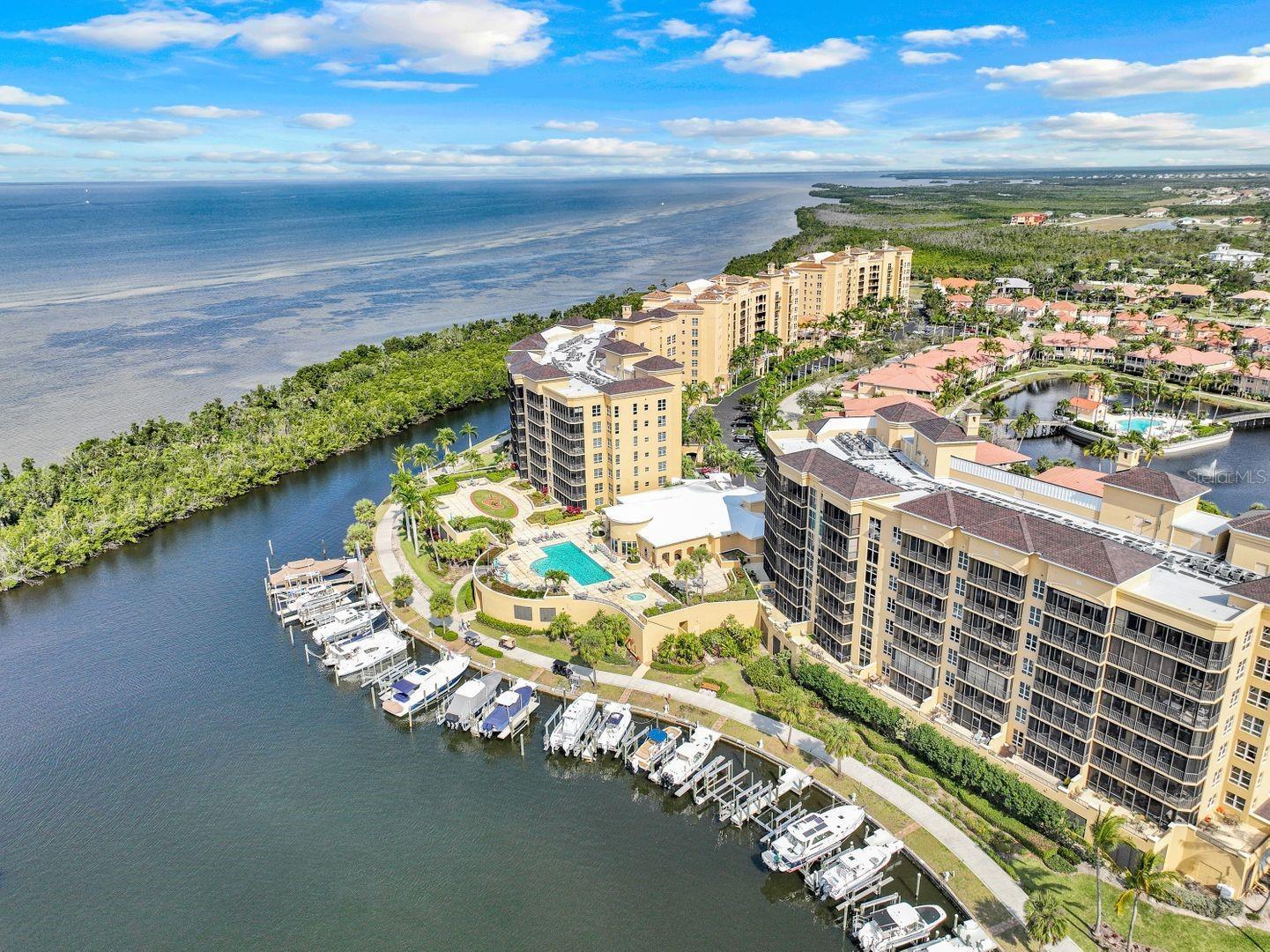 Rented JAN-MAR....2026 SEASONAL RENTAL (Small Dog Allowed) ....BURNT STORE MARINA - WATERFRONT VIEWS of BURNT STORE MARINA'S South Basin and CHARLOTTE HARBOR...You might find yourself mesmorized by the boats coming and going past your 4th Floor Lanai after their day of fishing or Island hopping for Lunch at Upper Captiva, Cayo Costa, Boca Grande, or Punta Gorda...You will be entertained by occasional Manatees passing in canal beneath you...Pelicans and Herons...and FANTASTIC SUNSETS over the Harbor...straight shot to GULF OF MEXICO only 10 nautical miles...COME INSIDE this luxurious 4th Floor Condo with TWO SPACIOUS BEDROOMS and DEN and you will be Treated to an OPEN FLOOR Plan with Plank Tile Flooring thru-out...Stainless Appliances...Tasteful Decor...Ensuite Primary features Double Sinks, Spacious Shower, and Garden Tub...Walk-In Closet and King Bed...Guest Bedroom offers King Bed and Walk-In Closet...GRAND ISLES has Resort-Style Amenities like Olympic Size Heated Pool and Hot Tub...Built in Grills.. Grand Meeting Room for Gatherings with Bar and Caterer's Kitchen, Billard Table, etc. and Fitness Center with Steam Rooma and Sauna...15 Seat Rentable Theatre ...One Covered Parking Space in Garage...BSM has a 27 Hole Public Golf Course & Country Club with Restaurant, Club House & Pro Shop, Live Entertainment, Food Trucks on Thursday Nite...FITNESS, RACQUET & POOL CLUB (Pickleball & Tennis) Memberships Available...Competitive Dragon Boat Teams...Yacht Club...TWO WATERFRONT RESTAURANTS on South Basin, Freedom Boat Club, Boat Rentals...COME RENT the Vacation Lifestyle at BURNT STORE MARINA!!!